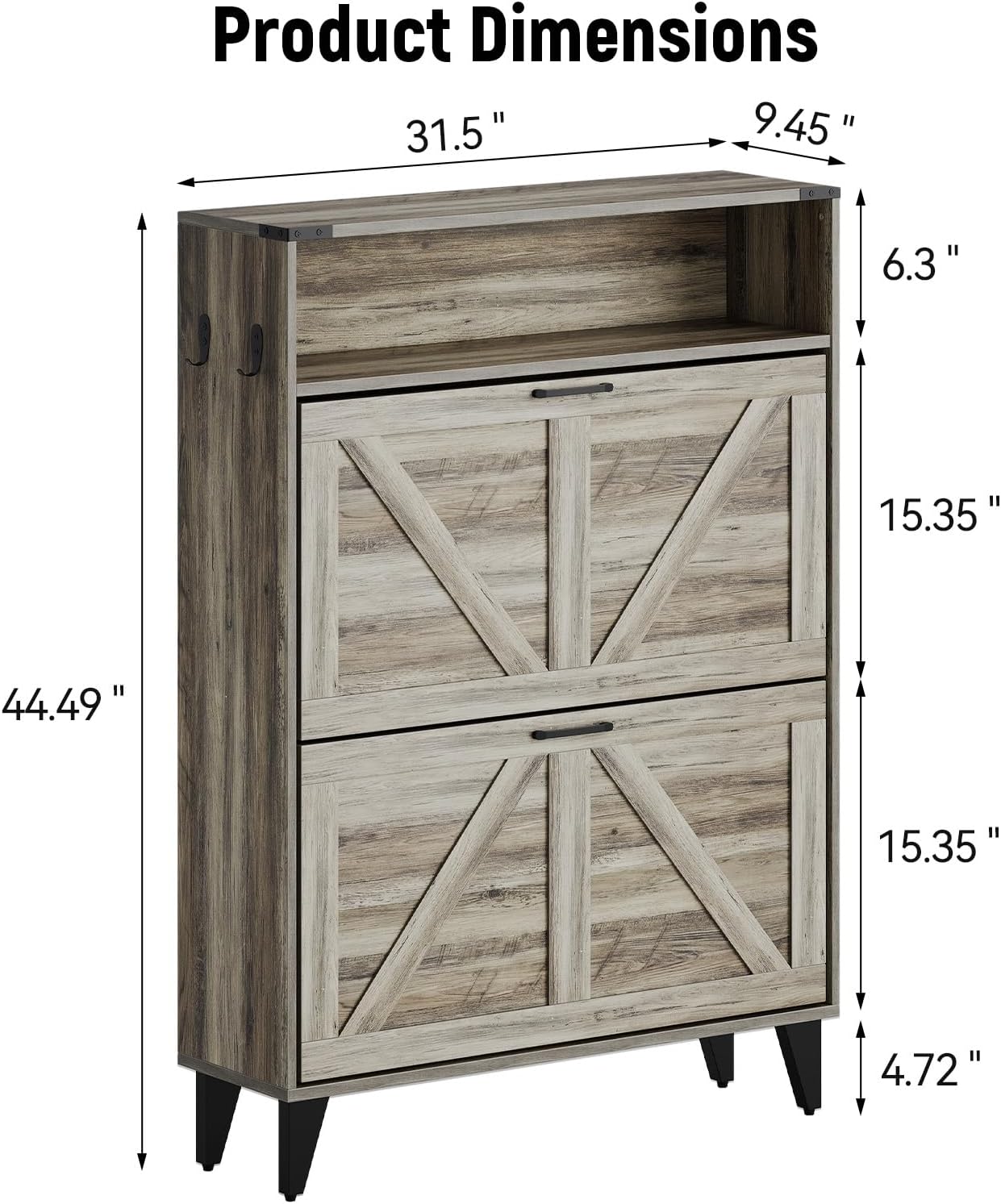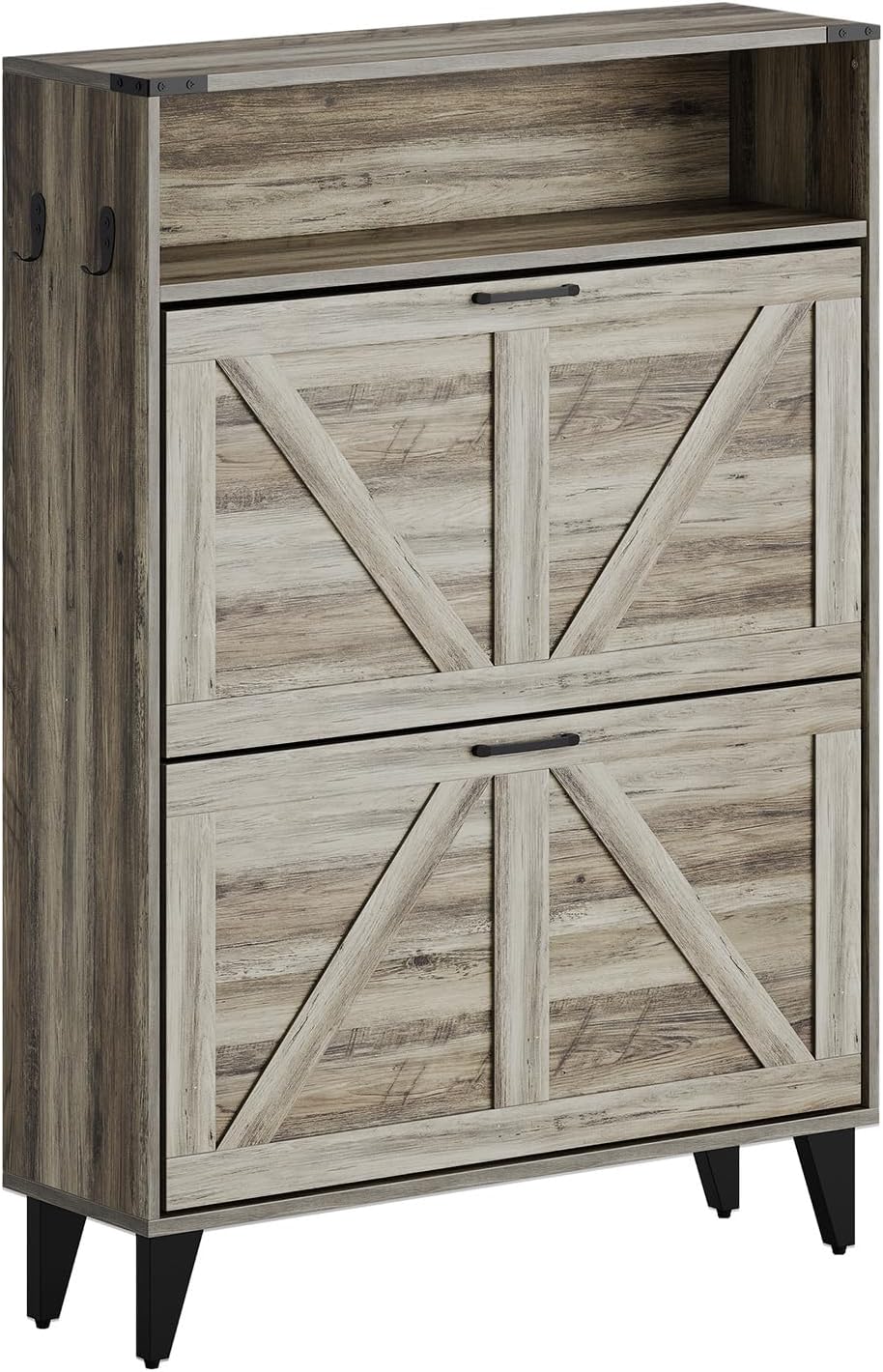GarveeHome Freestanding Shoe Cabinet, 2 Flip Drawers Front Door Shoe Rack with Adjustable Shelf & Metal Legs, Shoe Rack for Front Door Entrance, Entryway, 31.5 in D x 9.45 in W x 44.49 in H, Gray
