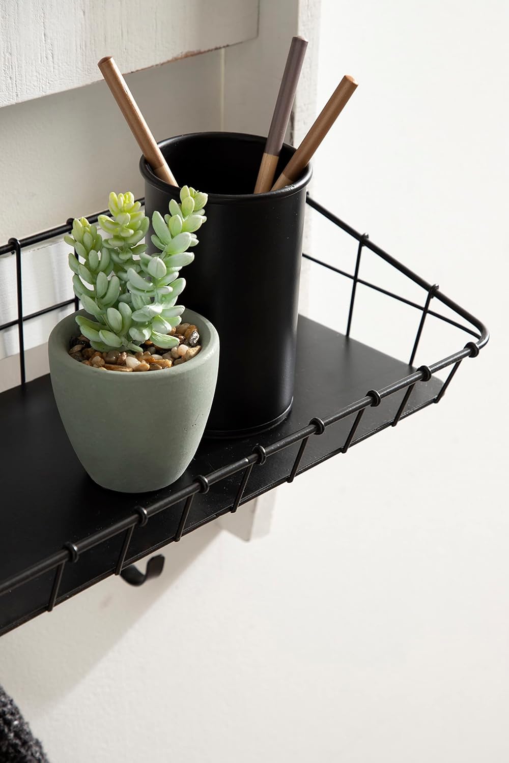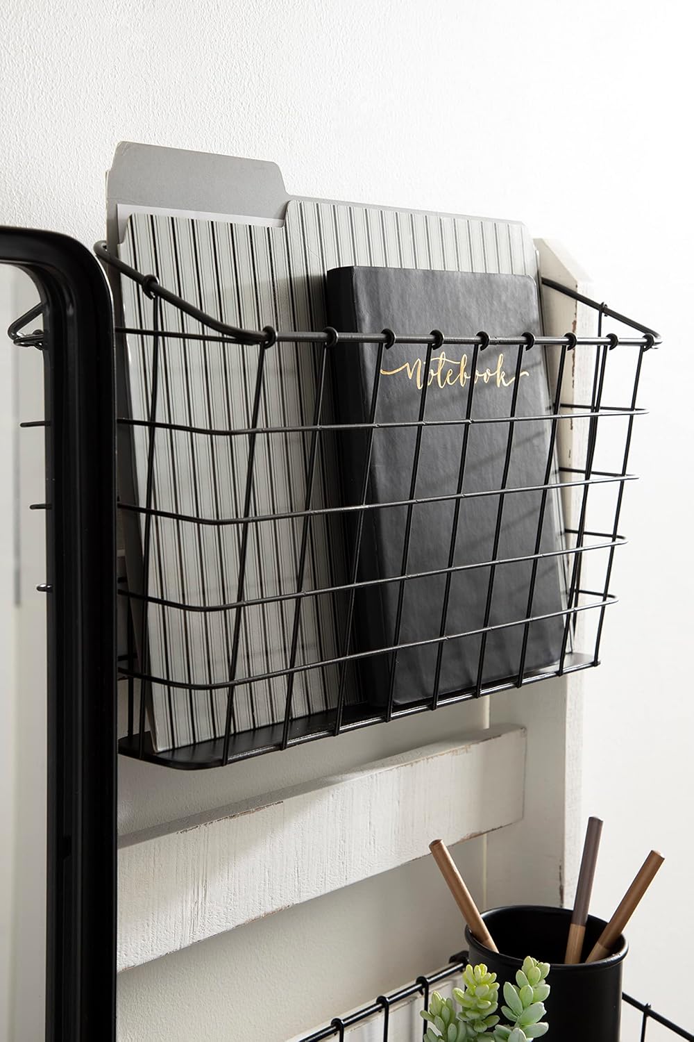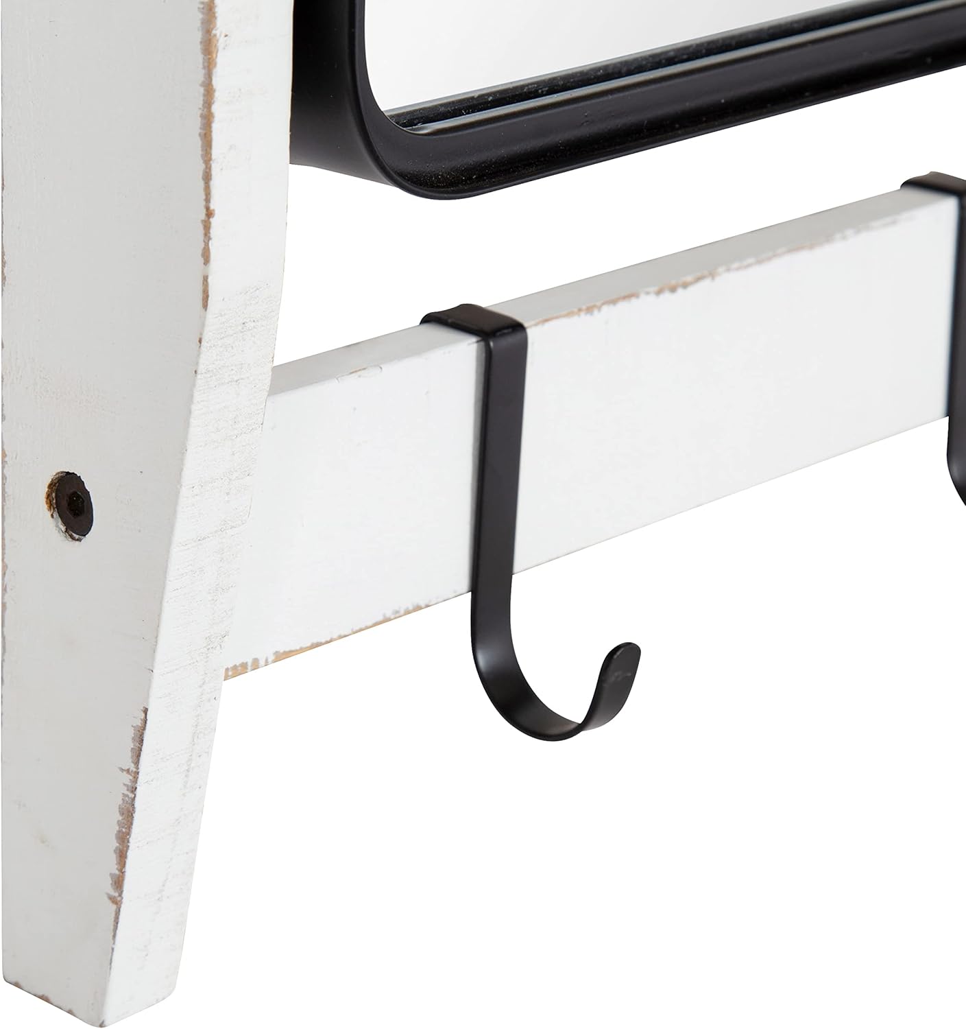 Kate and Laurel Tanner Wall Organizer with Mirror and Hooks, 28 x 8 x 24, White and Black, Farmhouse Wall Organization Home Office Station with Baskets for Modular Storage