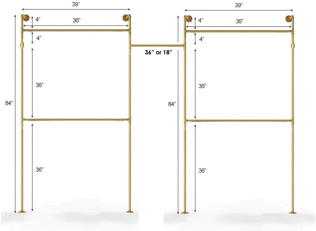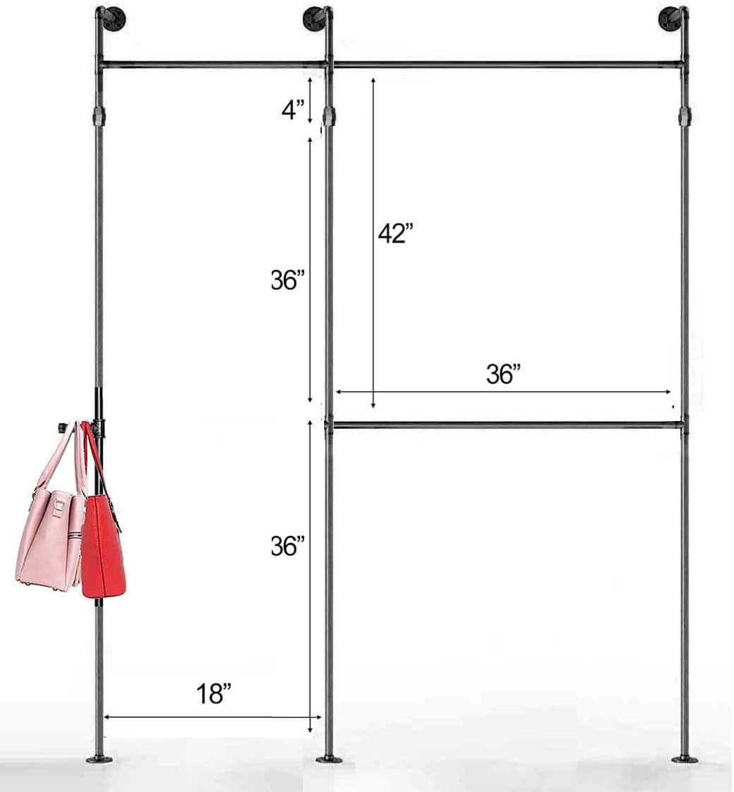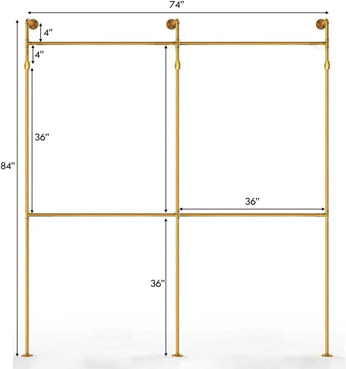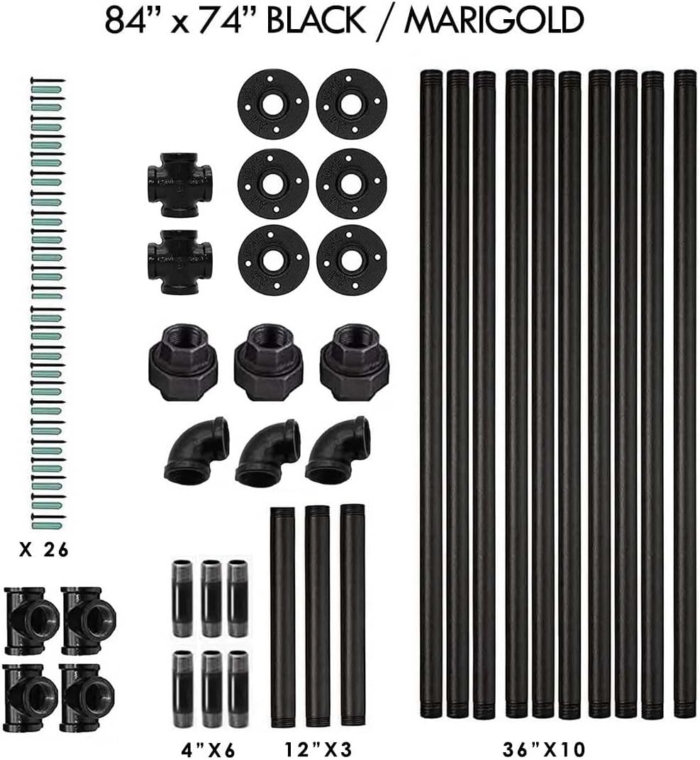 SERENITA Industrial Pipe Clothing Rack, Hanging Rod for Closet, Wall Mounted Multi Purpose (84" x 114", MariGold)