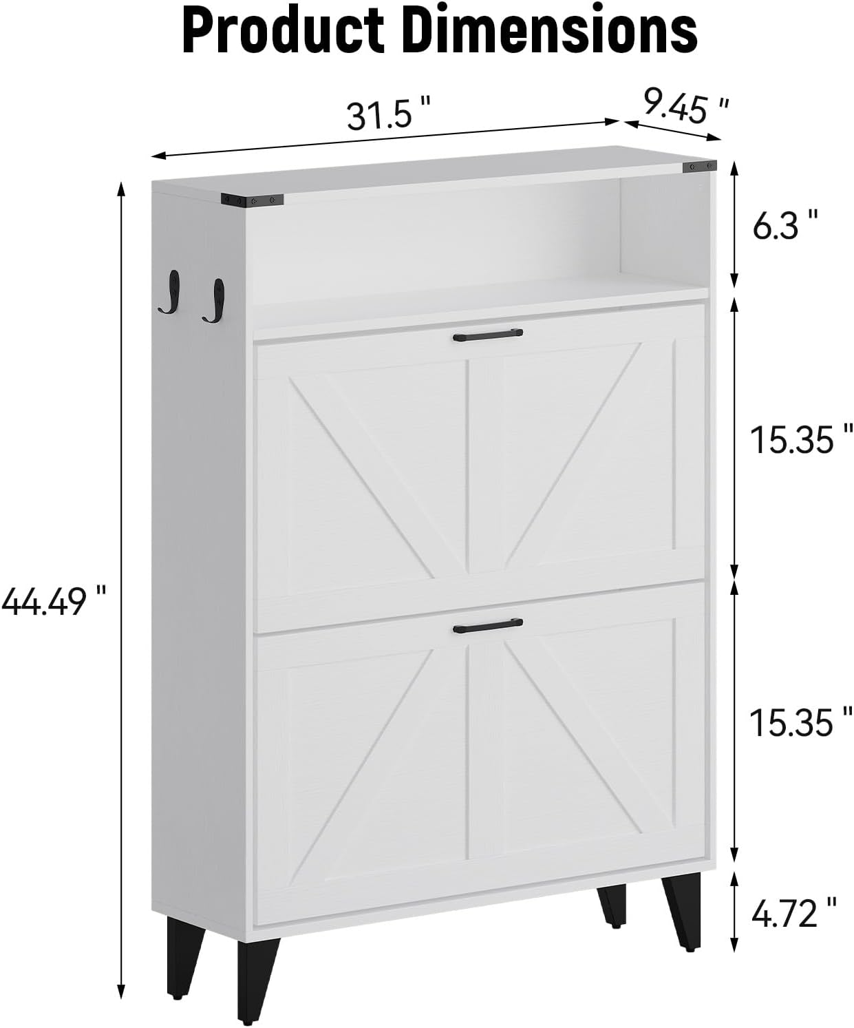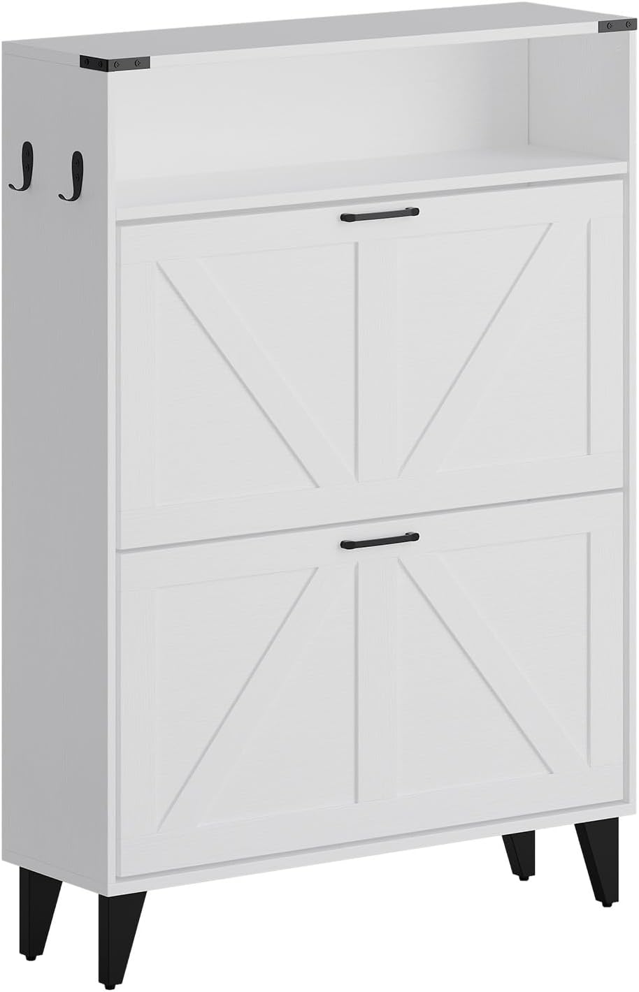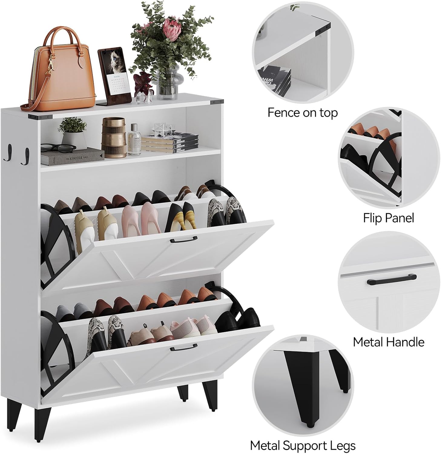 GarveeHome Freestanding Shoe Cabinet, 2 Flip Drawers Front Door Shoe Rack with Adjustable Shelf & Metal Legs, Shoe Rack for Front Door Entrance, Entryway, 31.5 in D x 9.45 in W x 44.49 in H, White