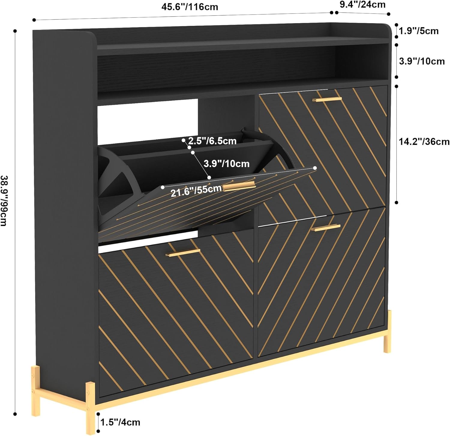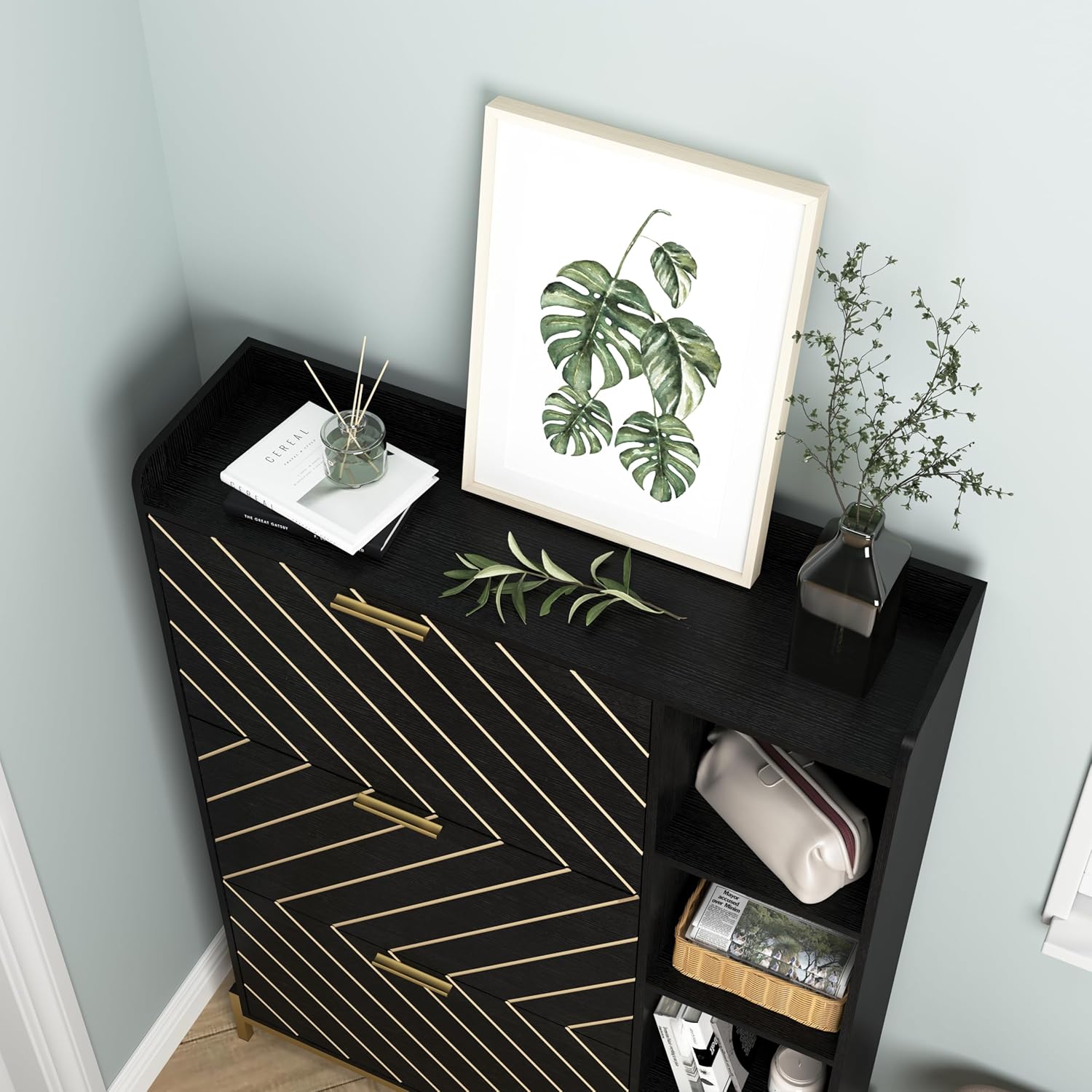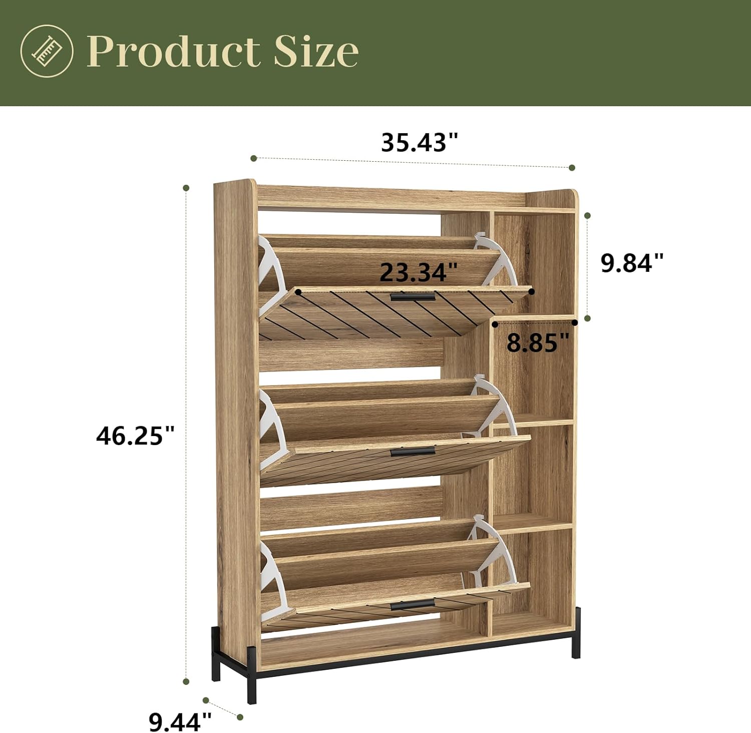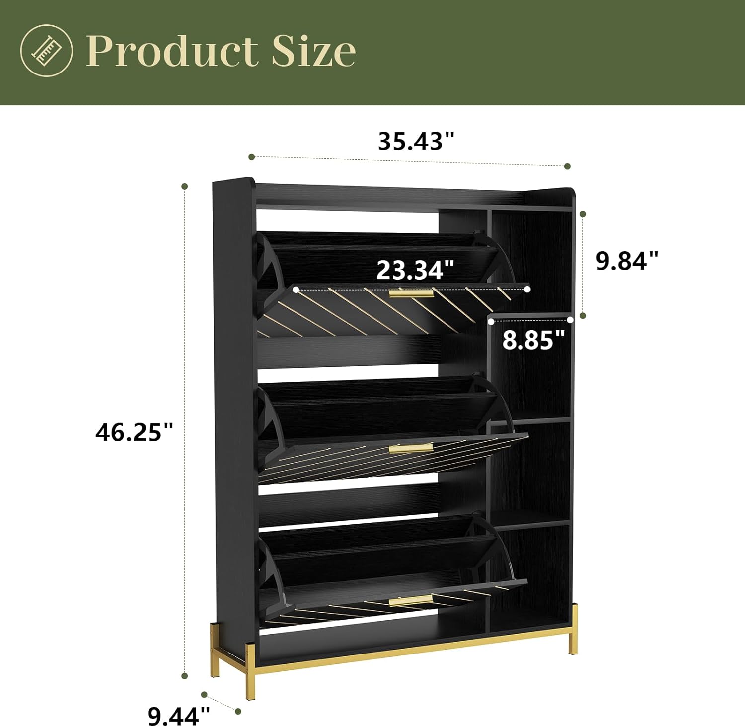 KEIKI Shoe Storage Cabinet with 3 Flip Drawers & Open Shelves, Narrow Shoe Cabinet for Entryway Slim, Farmhouse Shoe Cabinet Freestanding Entry Shoe Rack Cabinet, Wood Shoe Organizer, Black