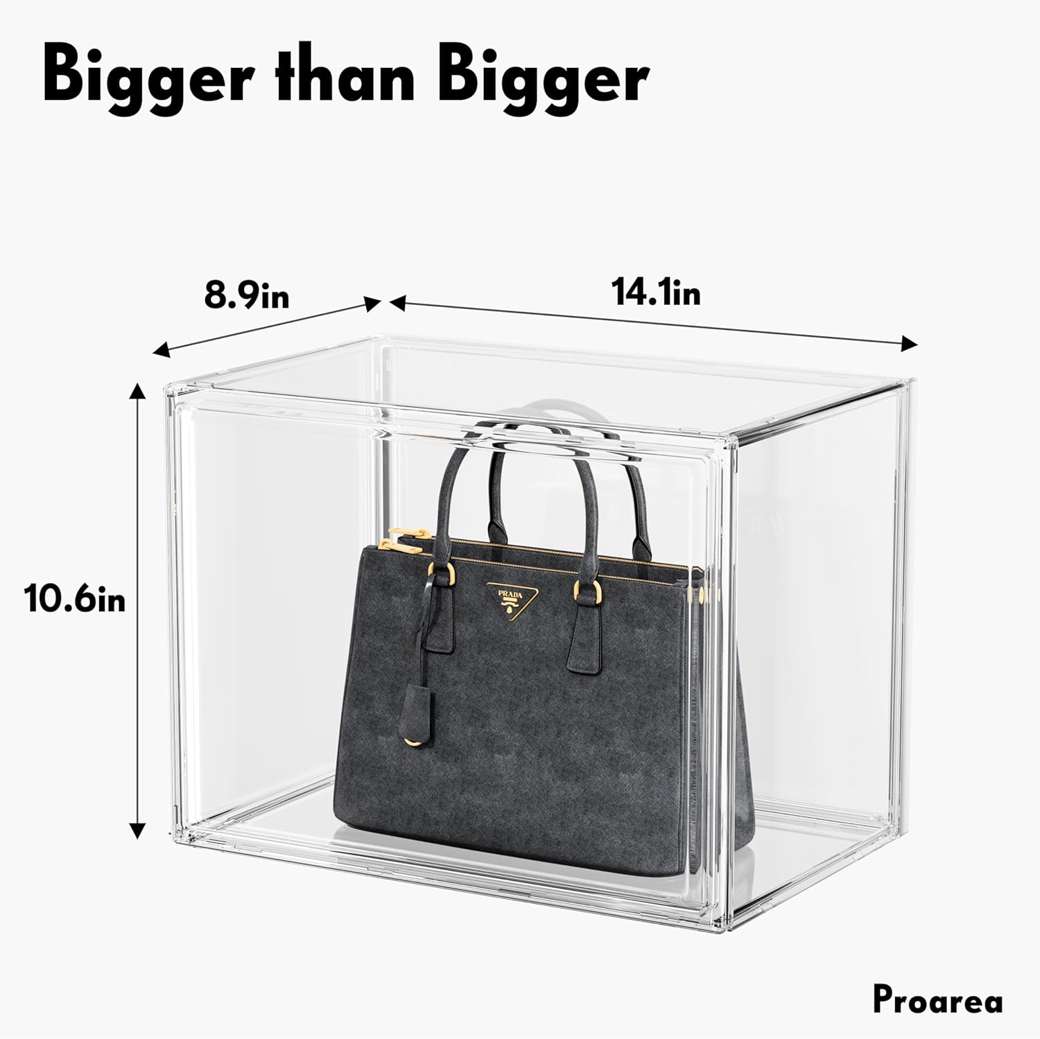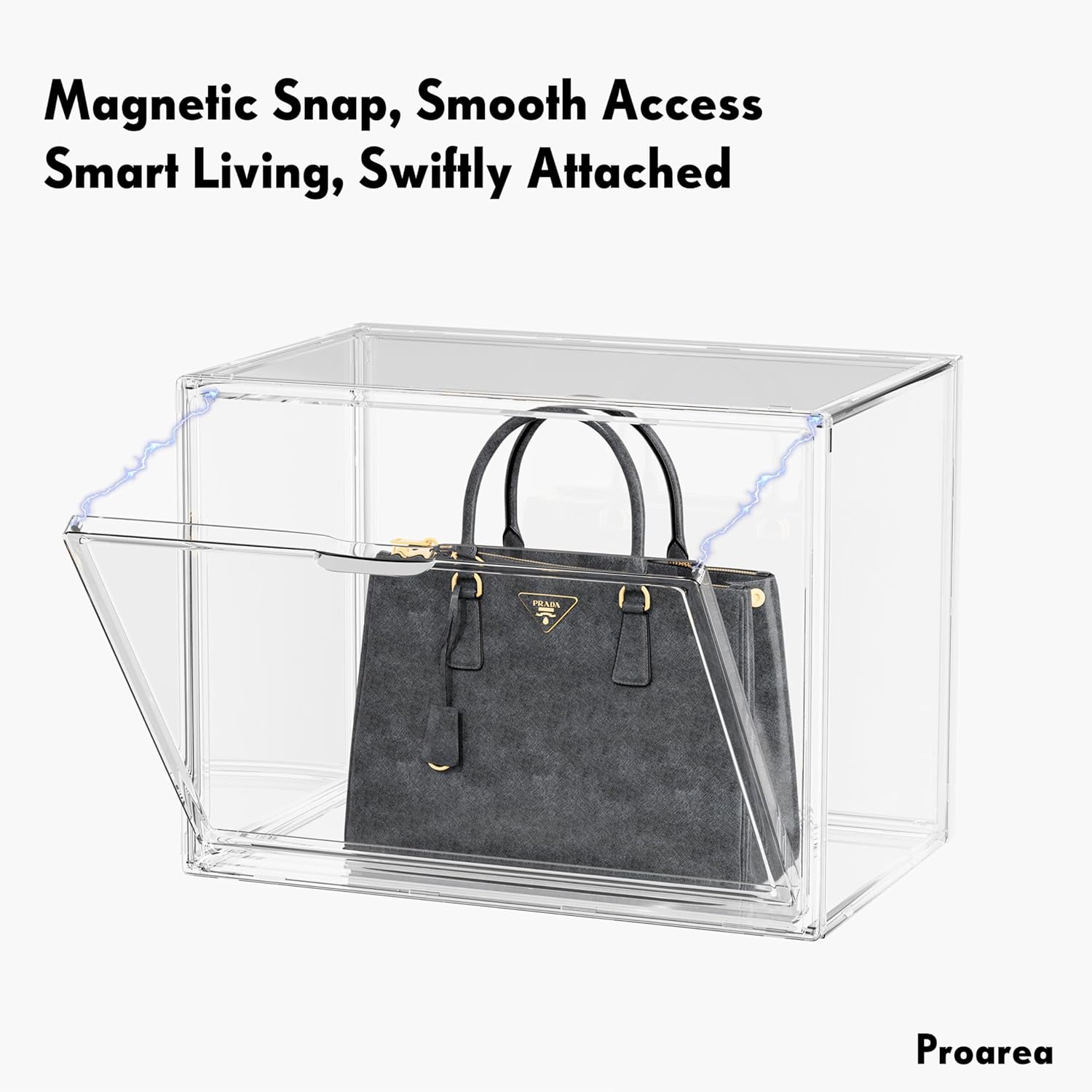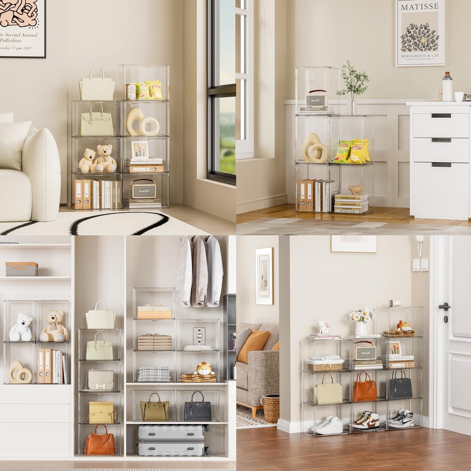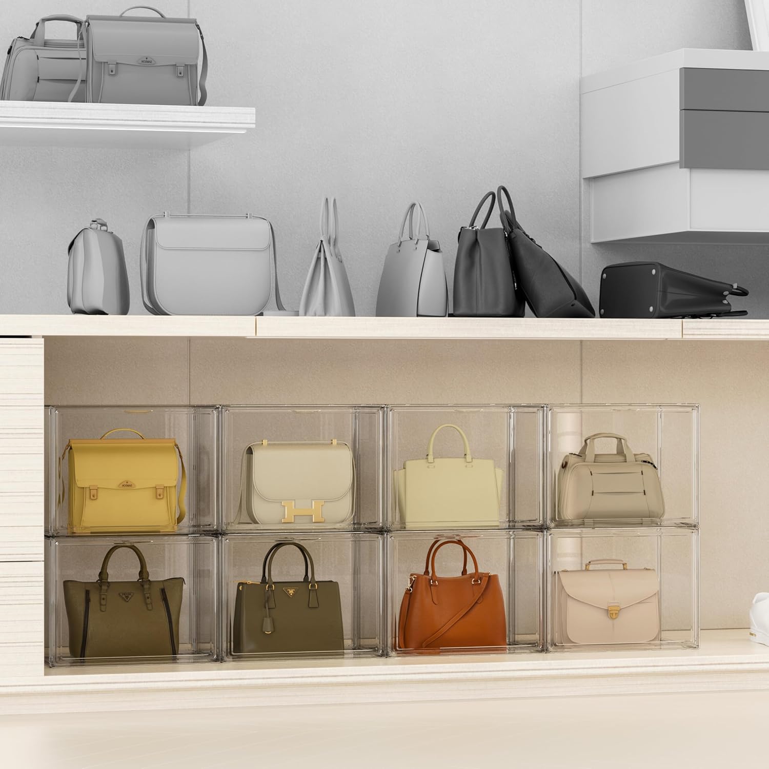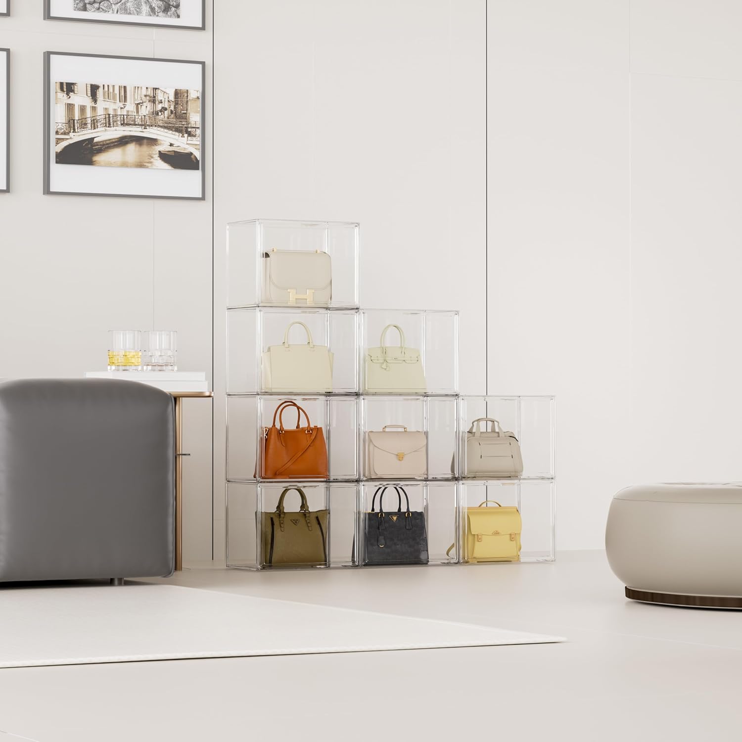 Purse Organizer for Closet, Clear Acrylic Display Case for Handbag Organizer, Stackable Purse Storage Box with Magnetic Door, Plastic Holder Containers for Book, Collectibles, Cosmetic 9 Pack