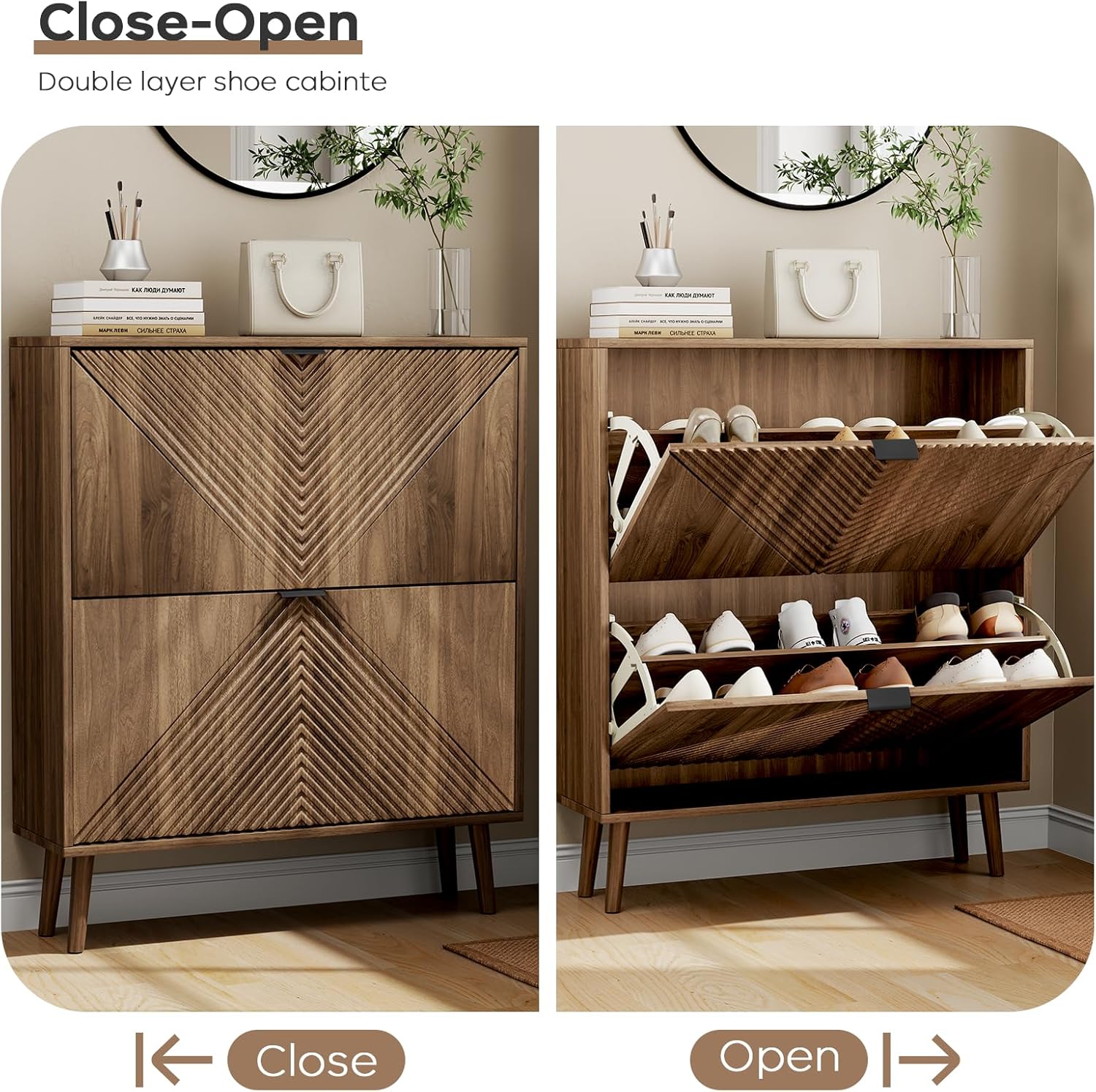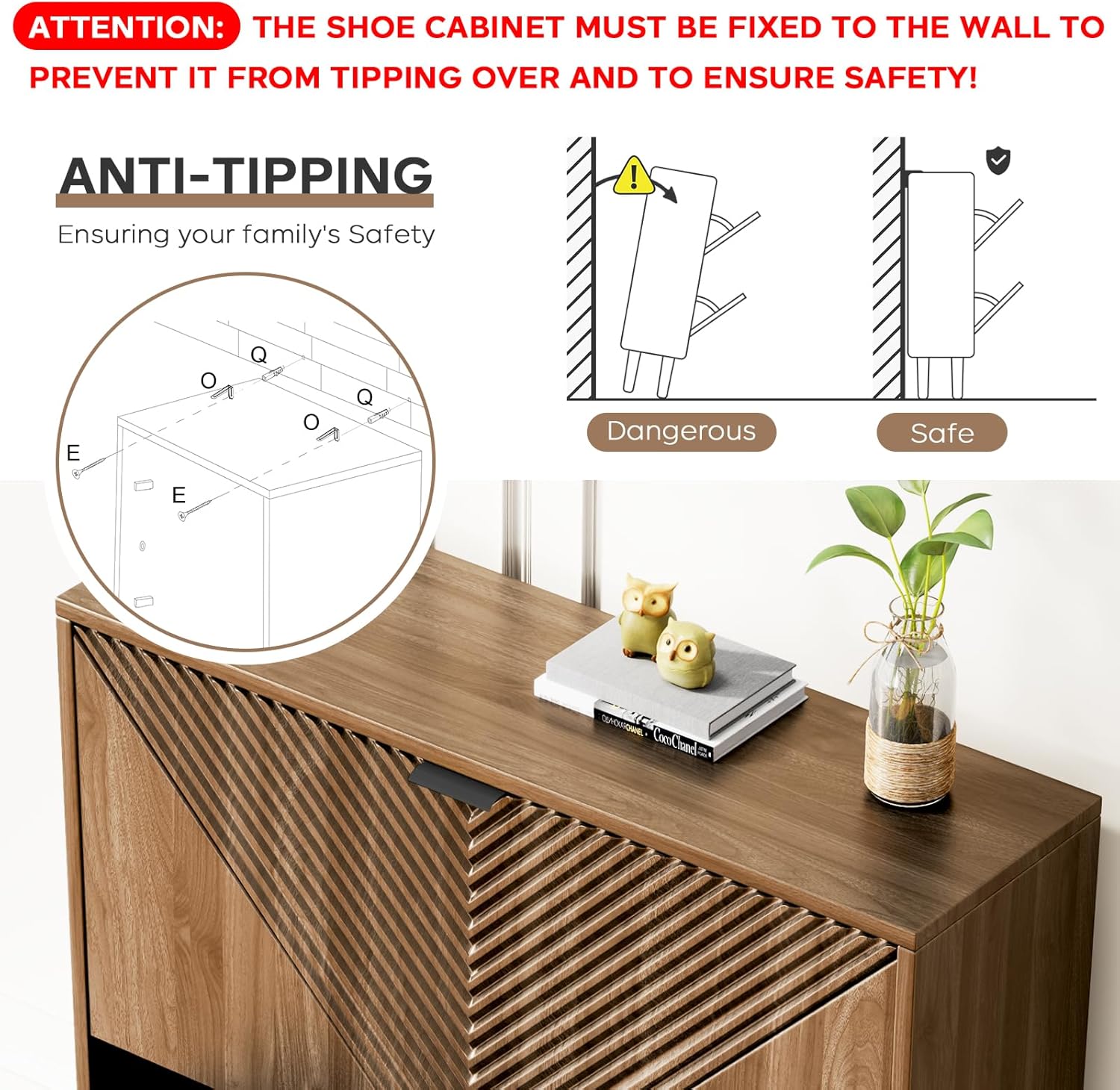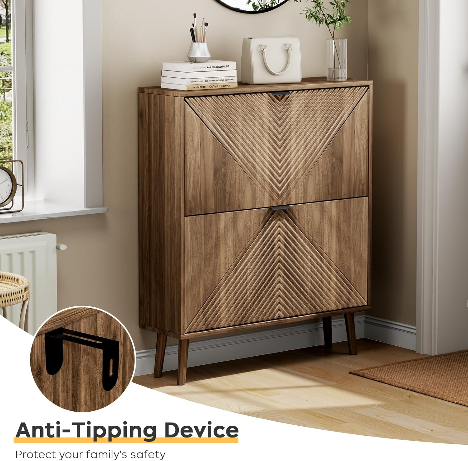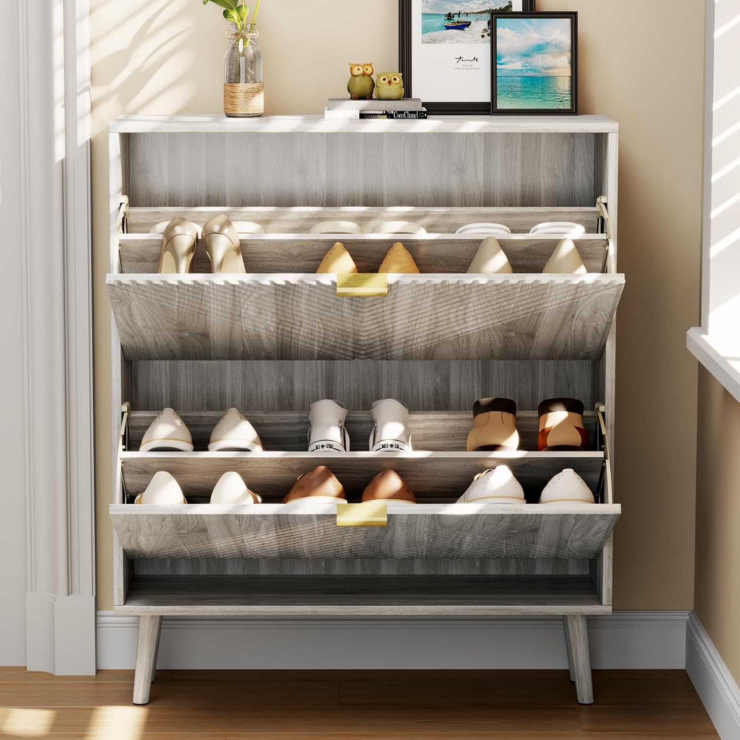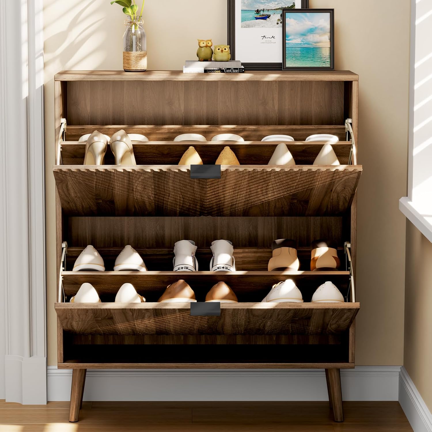 YITAHOME Shoe Cabinet with 4 Flip Drawers, Freestanding Shoe Rack, Shoe Organizer, for Entry Way Hallway Living Room, Dark Rustic Brown