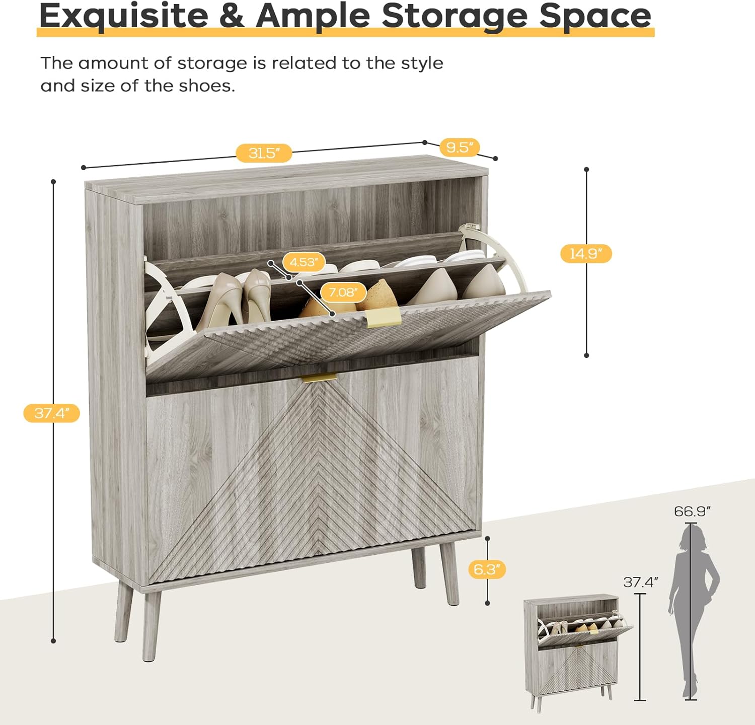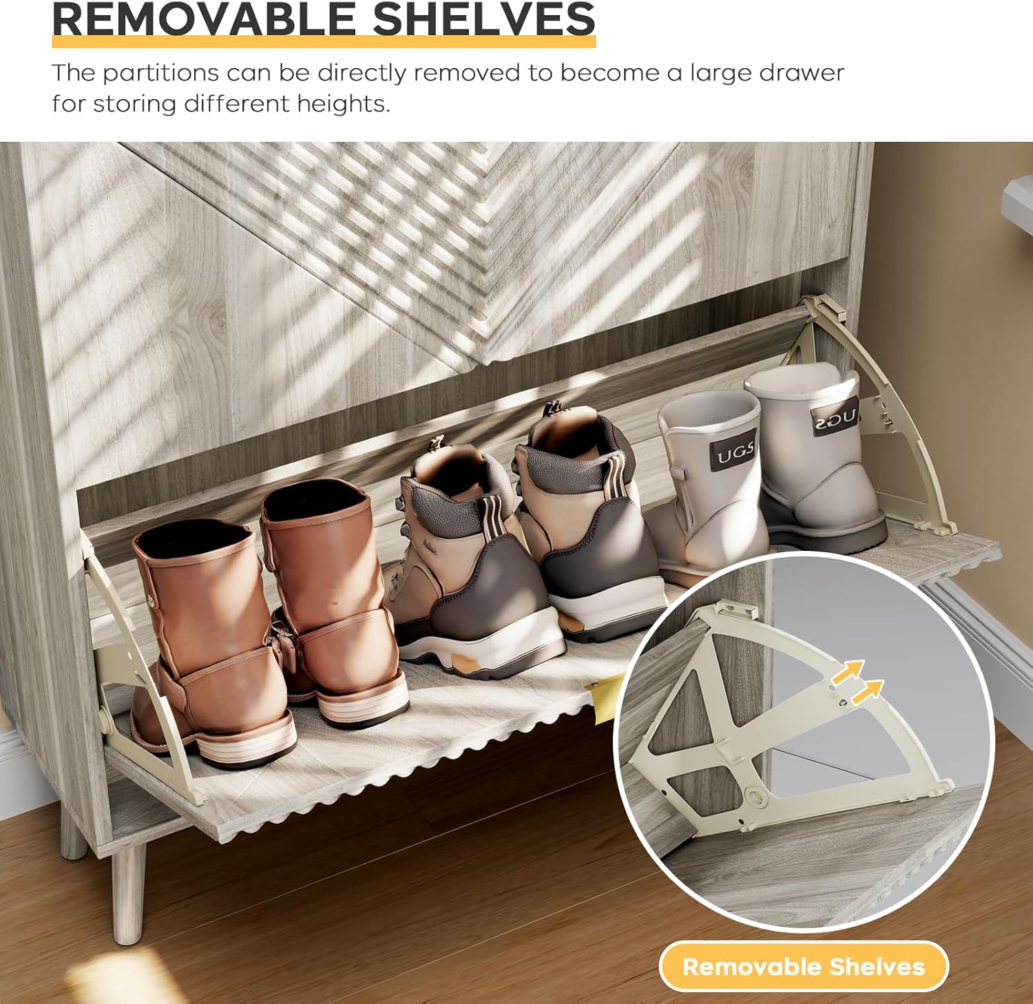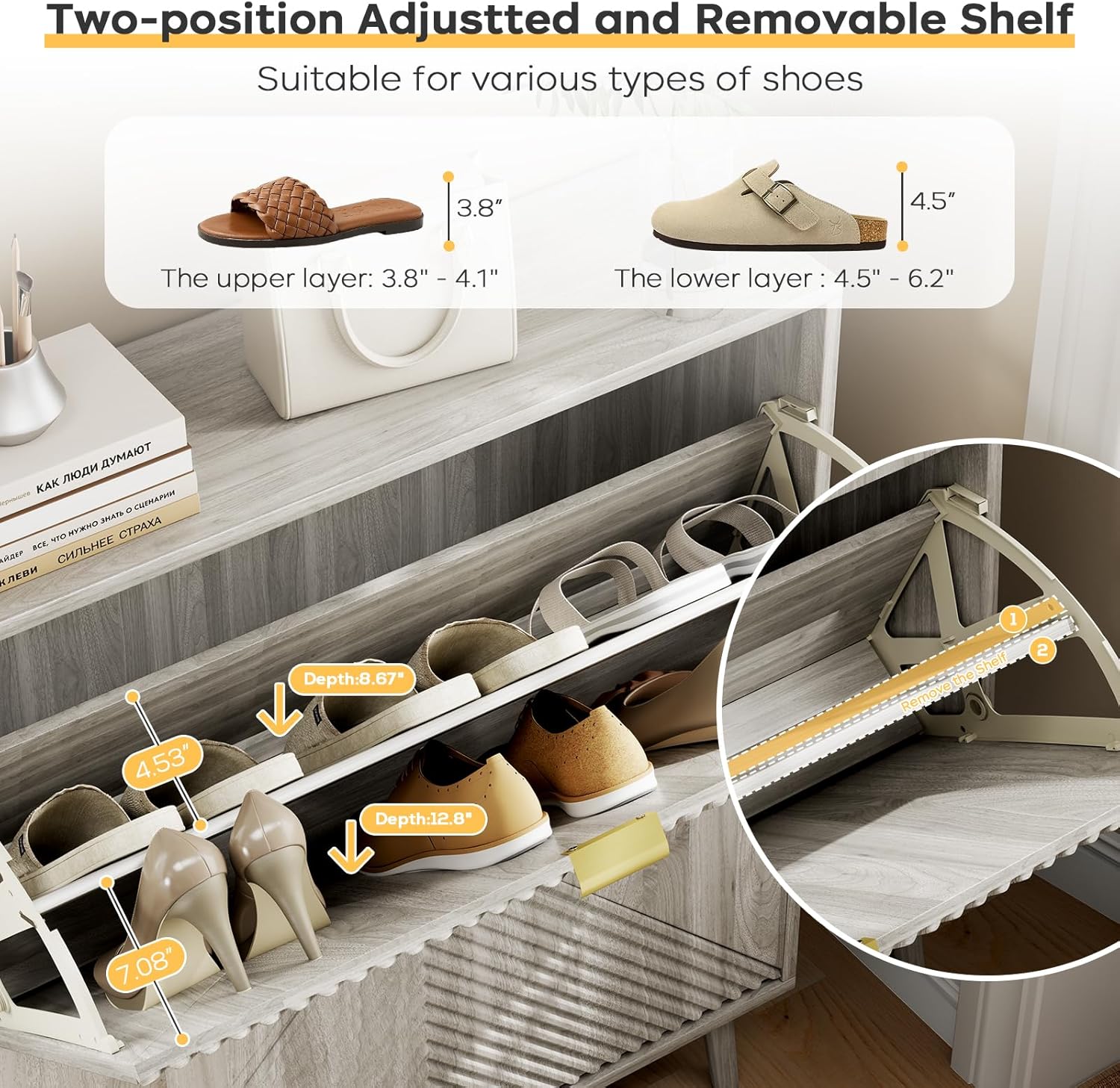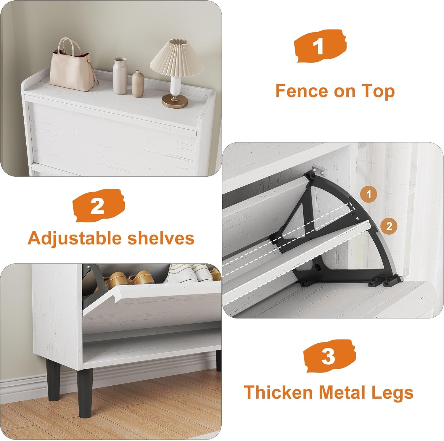 GAOMON Shoe Cabinet with 2 Flip Drawers, Wooden Hidden Shoe Cabinet with Adjustable Shelf, Freestanding Shoe Organizer Storage for Entryway Hallway, Living Room, White