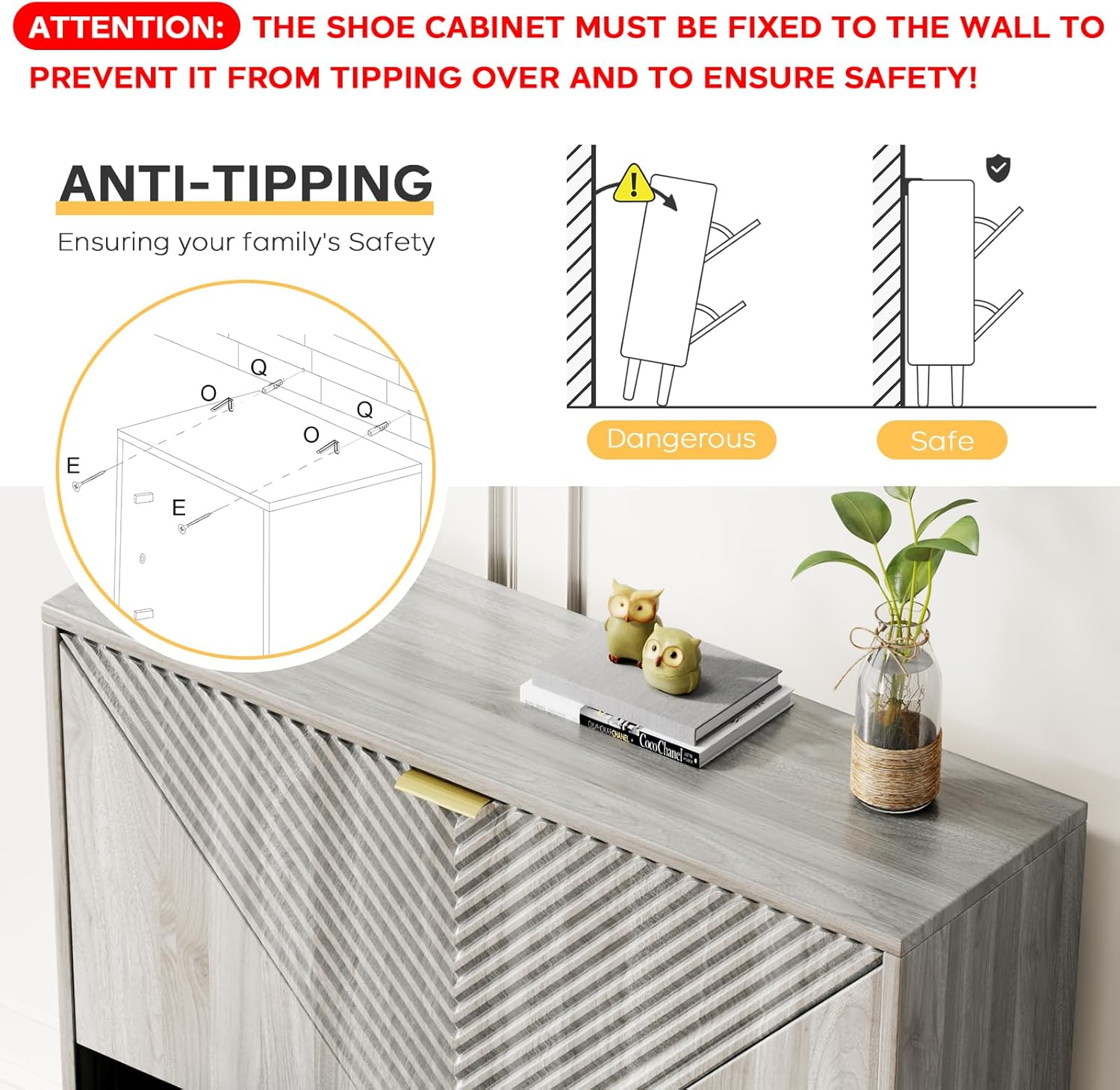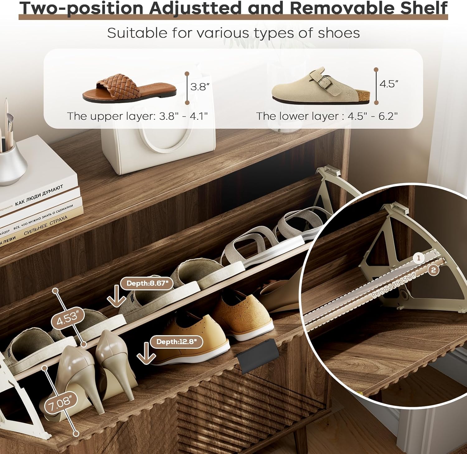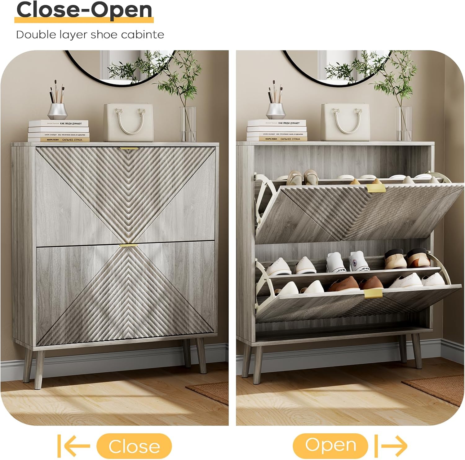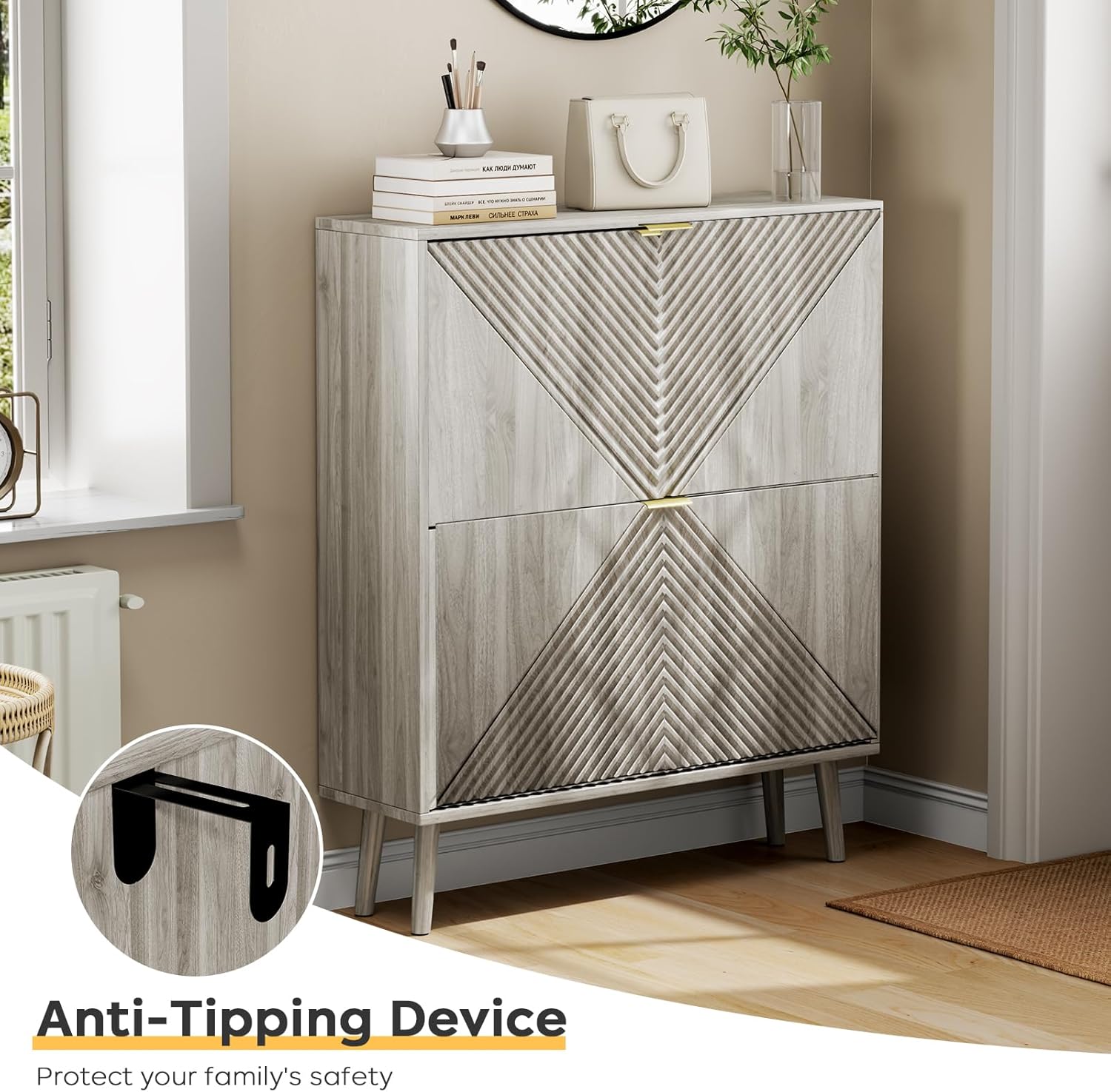 GAOMON Shoe Cabinet with 2 Flip Drawers, Wooden Hidden Shoe Cabinet with Adjustable Shelf, Freestanding Shoe Organizer Storage for Entryway Hallway, Living Room, White
