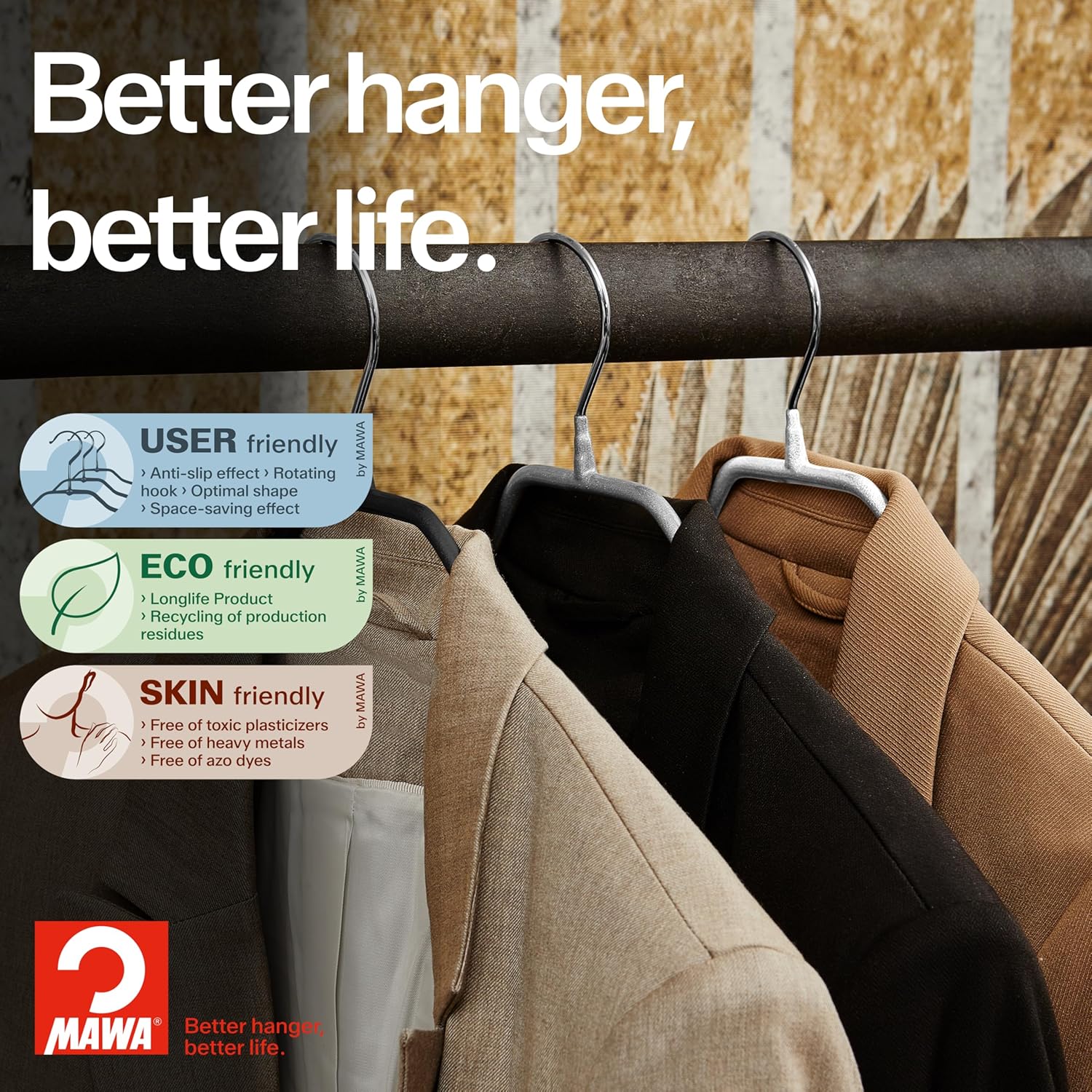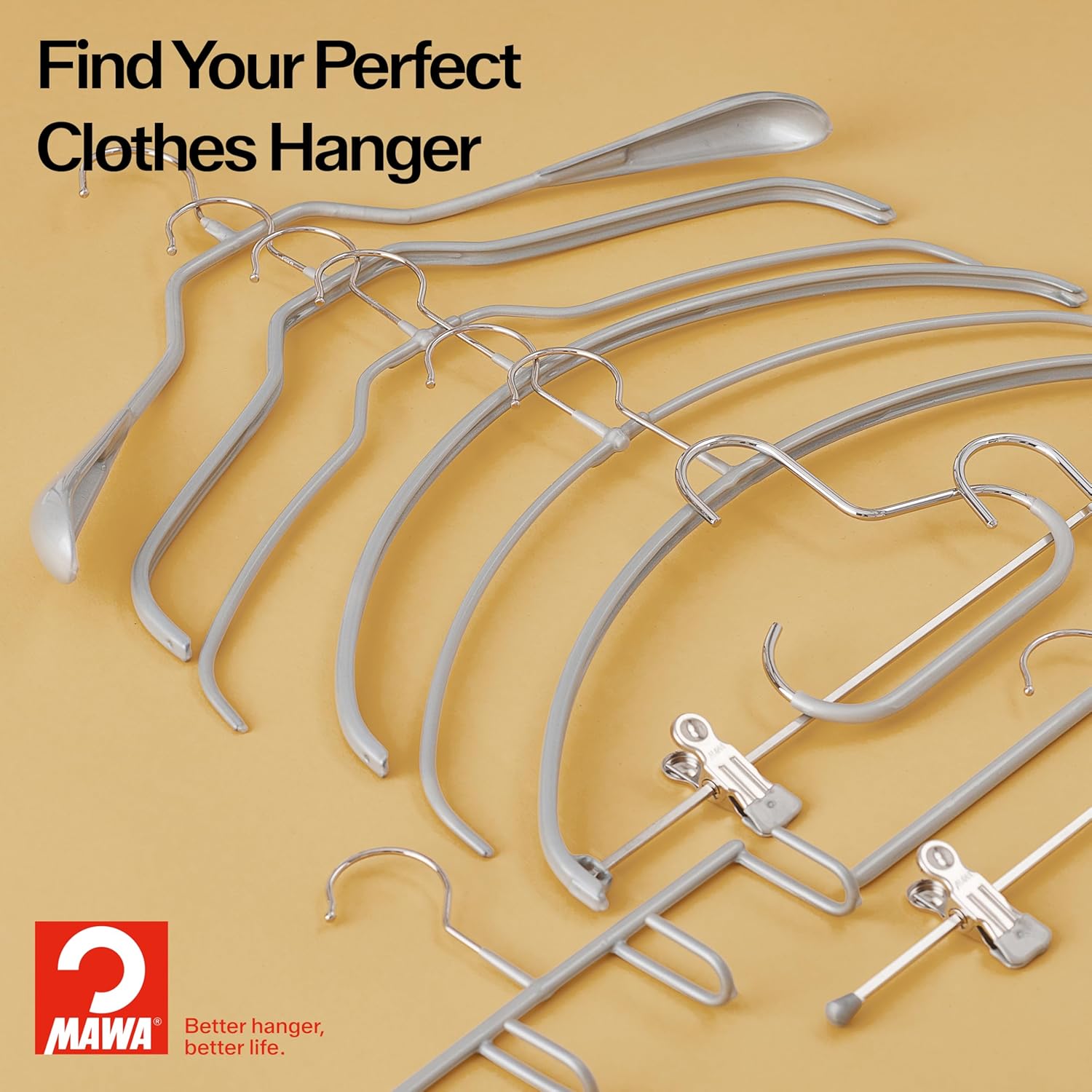 Mawa Narrow Petite Clothing Hangers, Steel Hanger with Non-Slip Coating, for Shirts, Dresses, Suits, Pants, Skirts, Camisoles, Jackets, 360-degree Rotatable Hook, Set of 50, Silver