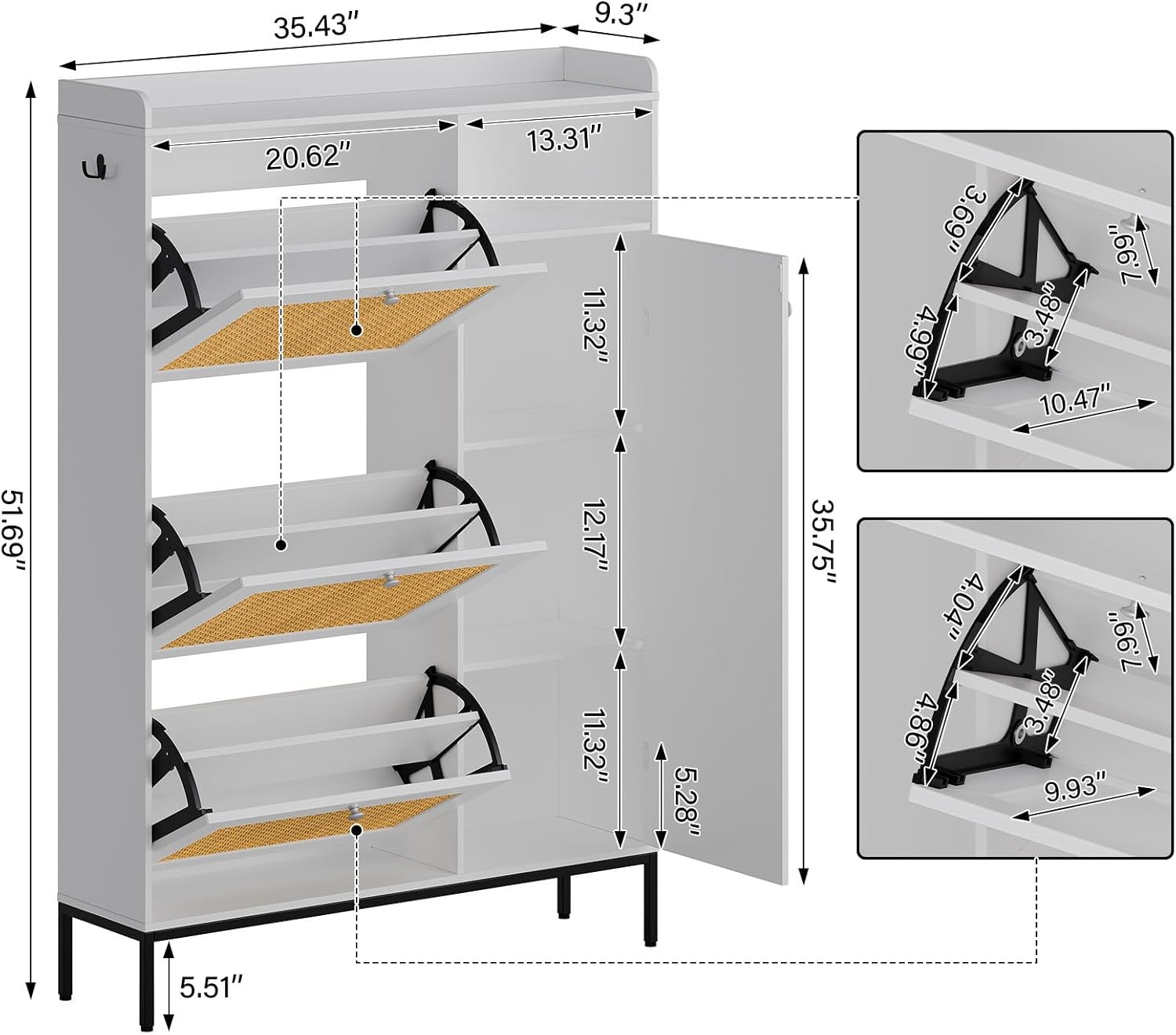 GAOMON Shoe Storage Cabinet with 3 Flip Drawers, Rattan Hidden Freestanding Organizer with Adjustable Shelves and Metal Knob for Entryway, Hallway, Narrow Shoe Rack Cabinet, Easy Assembly (Black)