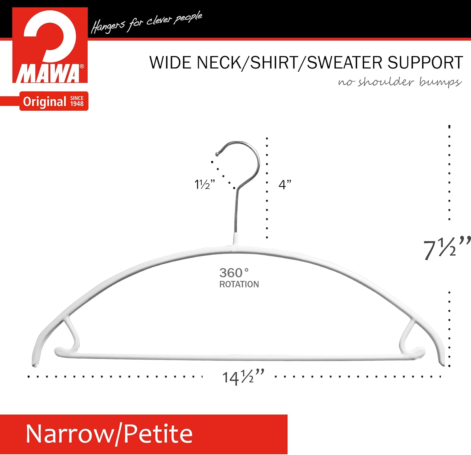 Mawa Narrow Petite Clothing Hangers, Steel Hanger with Non-Slip Coating, for Shirts, Dresses, Suits, Pants, Skirts, Camisoles, Jackets, 360-degree Rotatable Hook, White, Set of 40