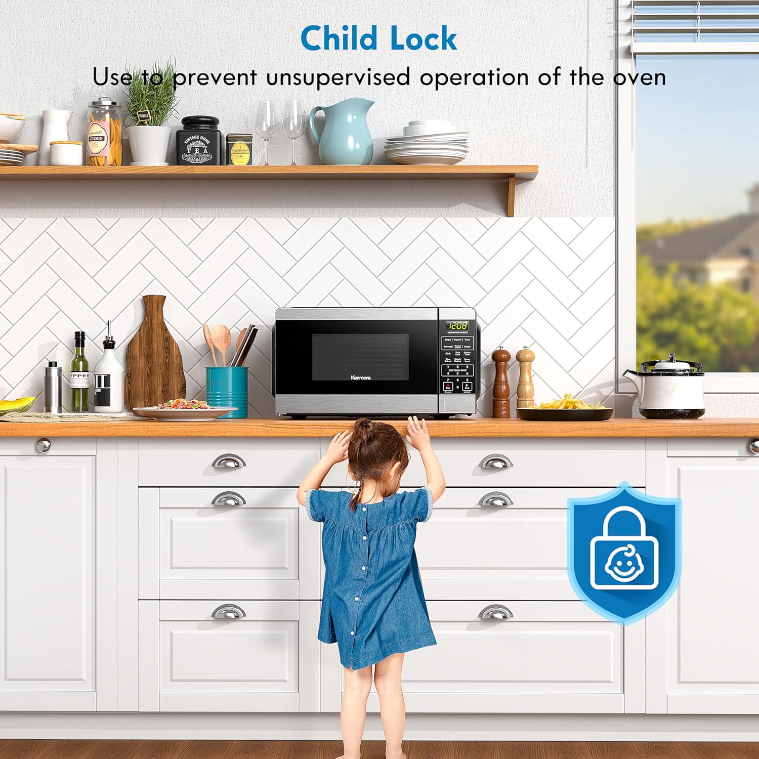Kenmore Countertop Microwave, 6 Auto-Preset Menus, Child Lock, Defrost & Express Cooking Features, 900 Watt, .9 Cu Ft, Stainless Steel