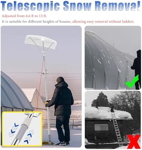Ergonomic 30-Inch Rolling Snow Shovel, Adjustable Height/Angle, Heavy-Duty Carbon Steel Blade