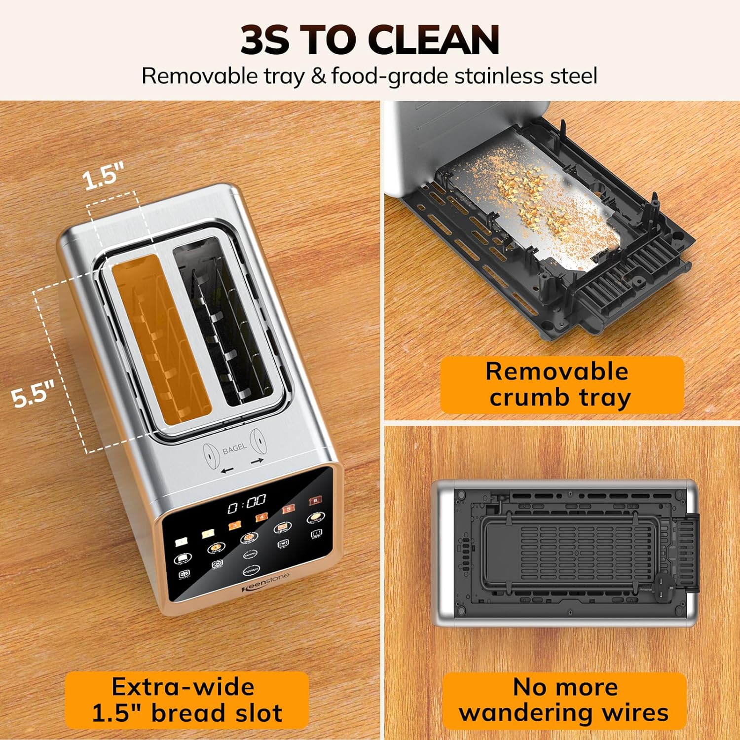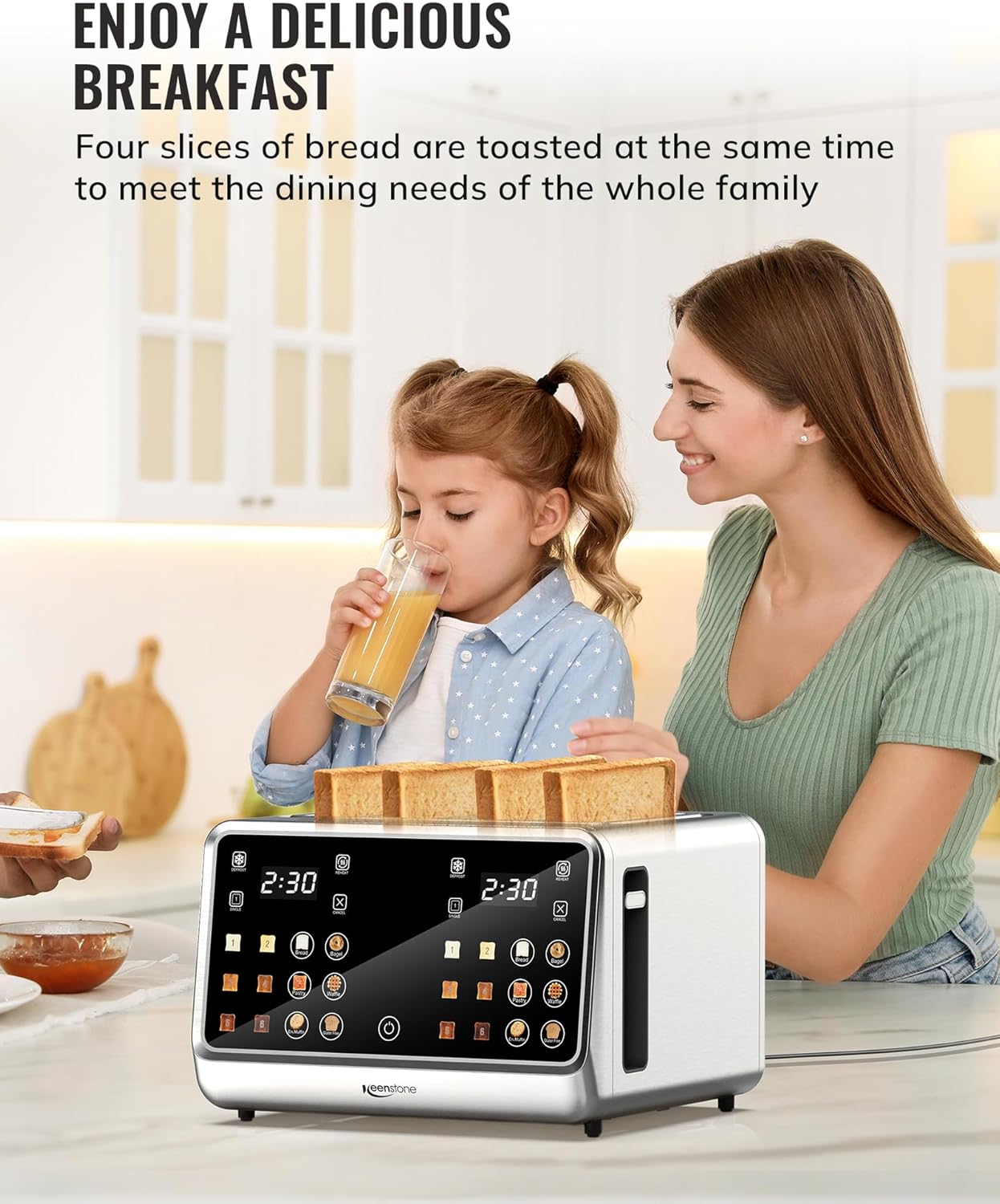 Keenstone Toaster 4 Slice, Digital Smart Toaster with TouchScreen, Dual Control Panel, Single Slot Toasting, Timer, Reheat & Defrost for Bagels, Bread, Waffles, Stainless Steel Kitchen Essentials