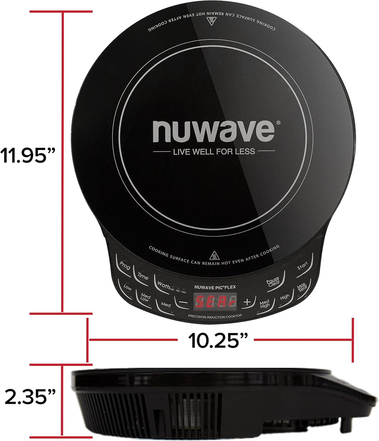 Nuwave Flex Precision Induction Cooktop, 10.25” Shatter-Proof Ceramic Glass, 6.5” Heating Coil, 45 Temps from 100°F to 500°F, 3 Wattage Settings 600, 900 & 1300 Watts, Black