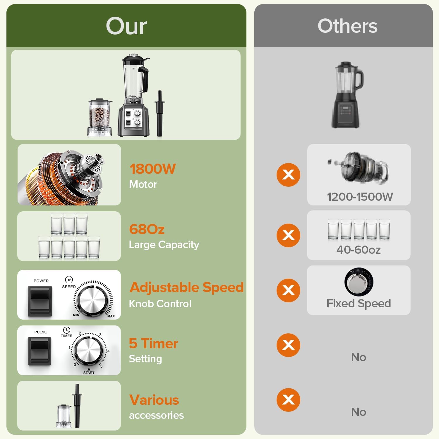 Blenders for Kitchen, Smoothie Blender with Timer - Countertop Blenders with 68oz Dishwasher-Safe Pitcher, Ice Crushing & Frozen Fruit, BPA Free