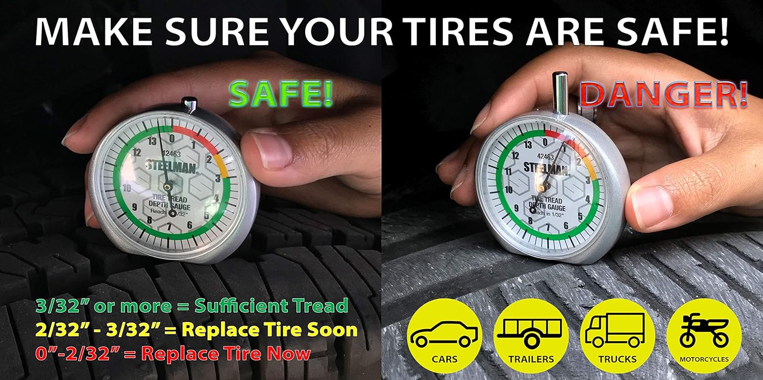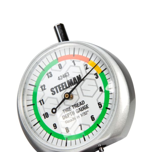 Steelman Dial-Type Color-Coded Tread Depth Gauge, Identifies Tire Wear, Durable Powder-Coated Zinc Alloy Casing for Professional or Home Auto Mechanics (Case of 10)