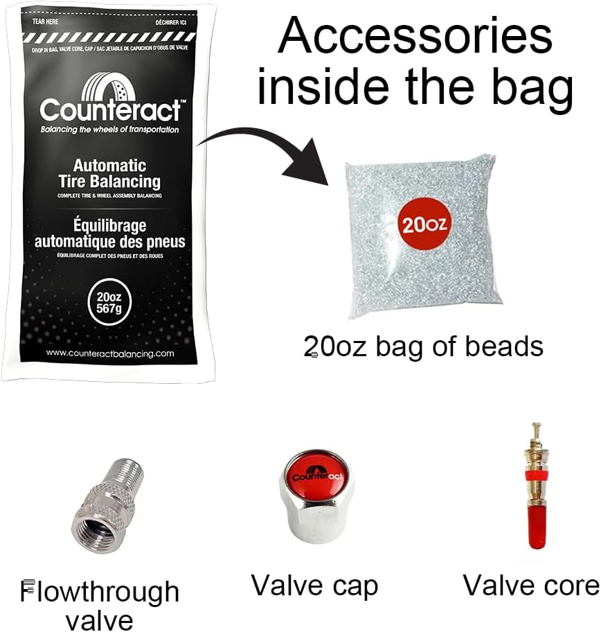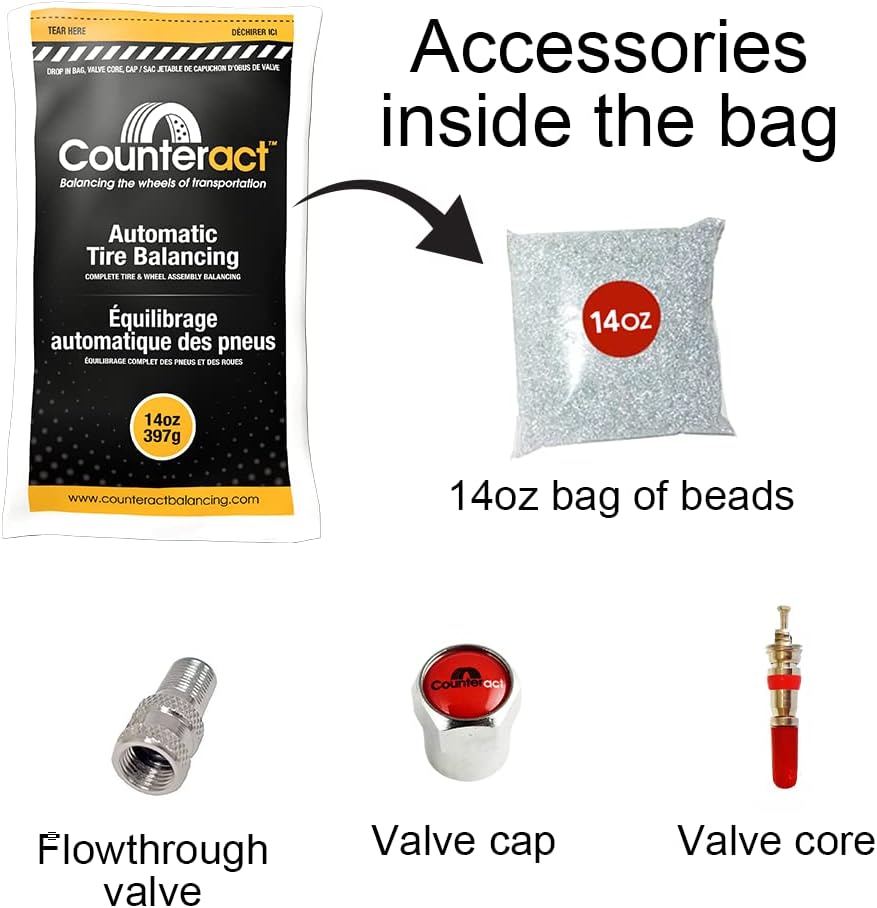 Counteract DIYK-20 Do It Yourself Tire/Wheel Balancing Beads Kit - Off -Road, Medium/Heavy Duty Truck Tires, (4) 20oz DIY Bead Bags, (4) Valve Caps and Cores, (1) Core Remover, Injector Bottle