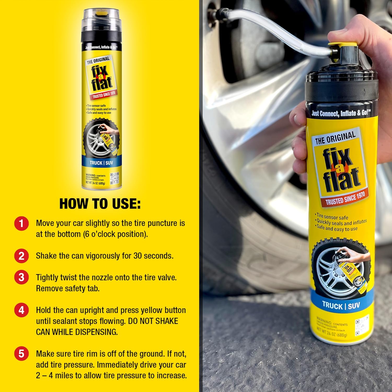 Fix-A-Flat S60369-6PK Aerosol Emergency Flat Tire Repair and Inflator, for X-Large Tires, Eco-Friendly Formula, Universal Fit for All Cars, Trucks and SUVs, 24 oz. (Pack of 6)