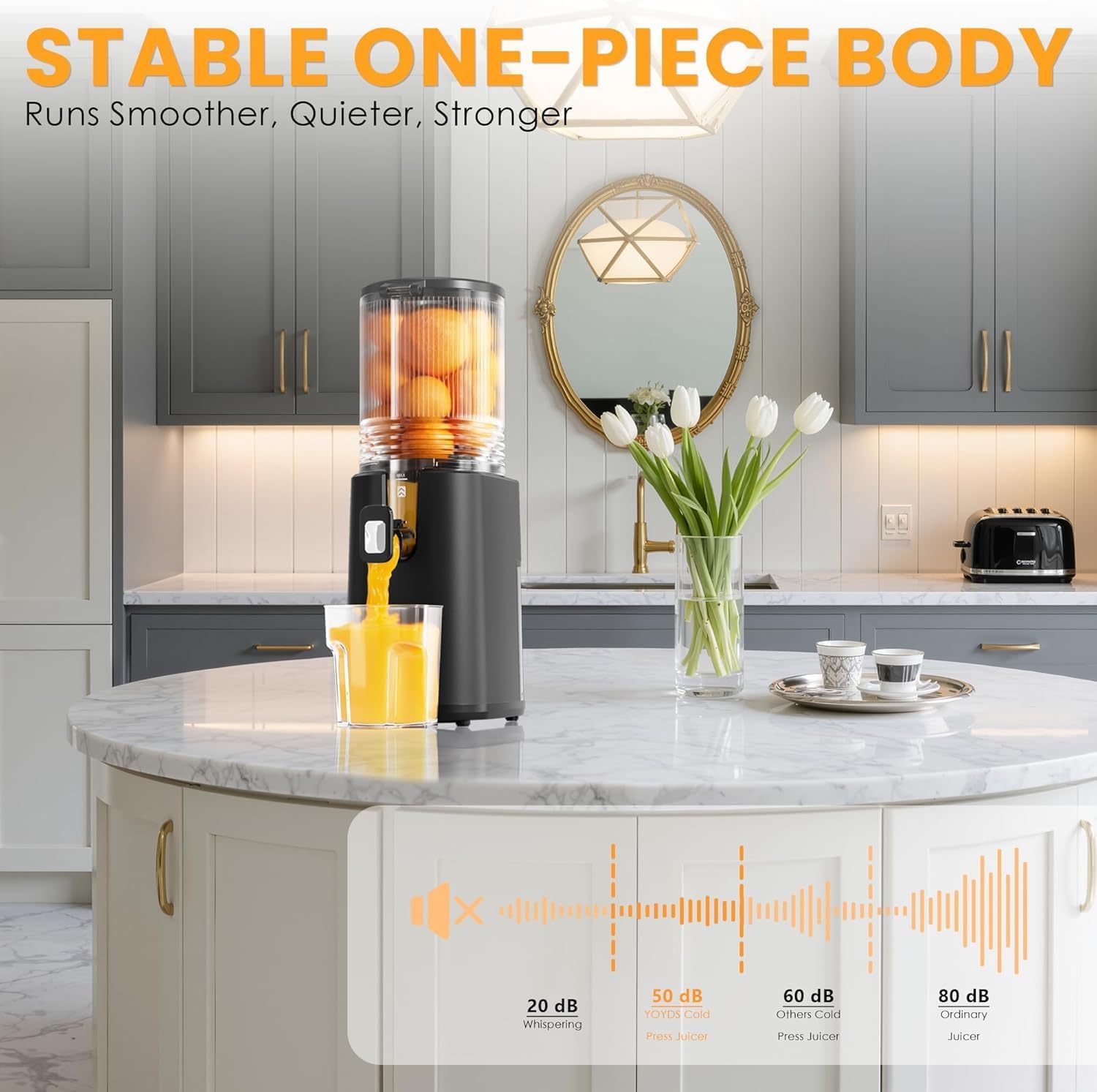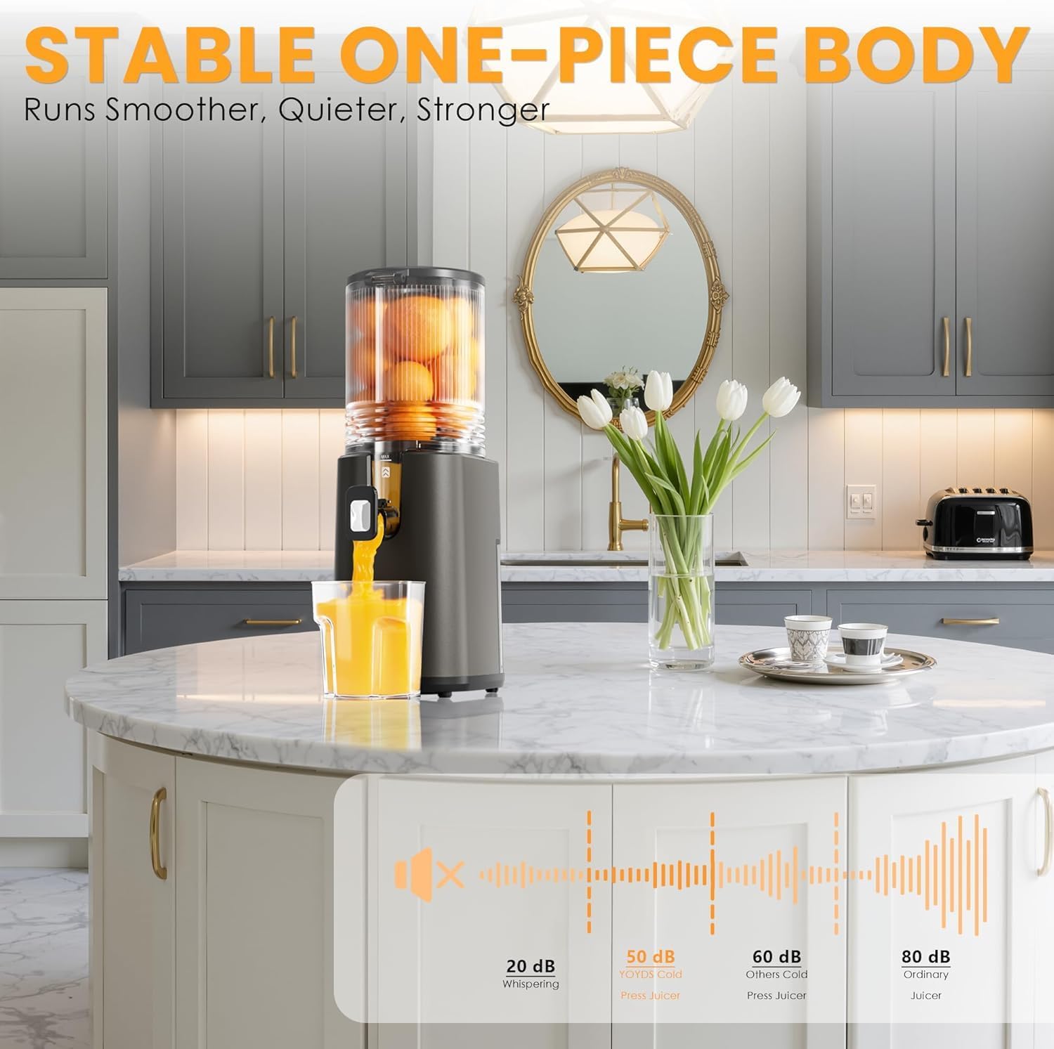 Cold Press Juicer, 5.5inch Wide Feed Chute Juicer Machine, Slow Masticating Juicer for Whole Vegetables & Fruits, Gray