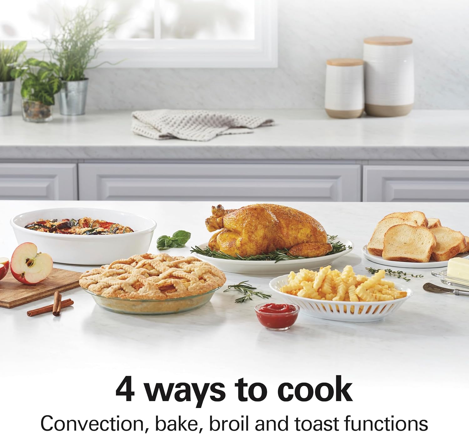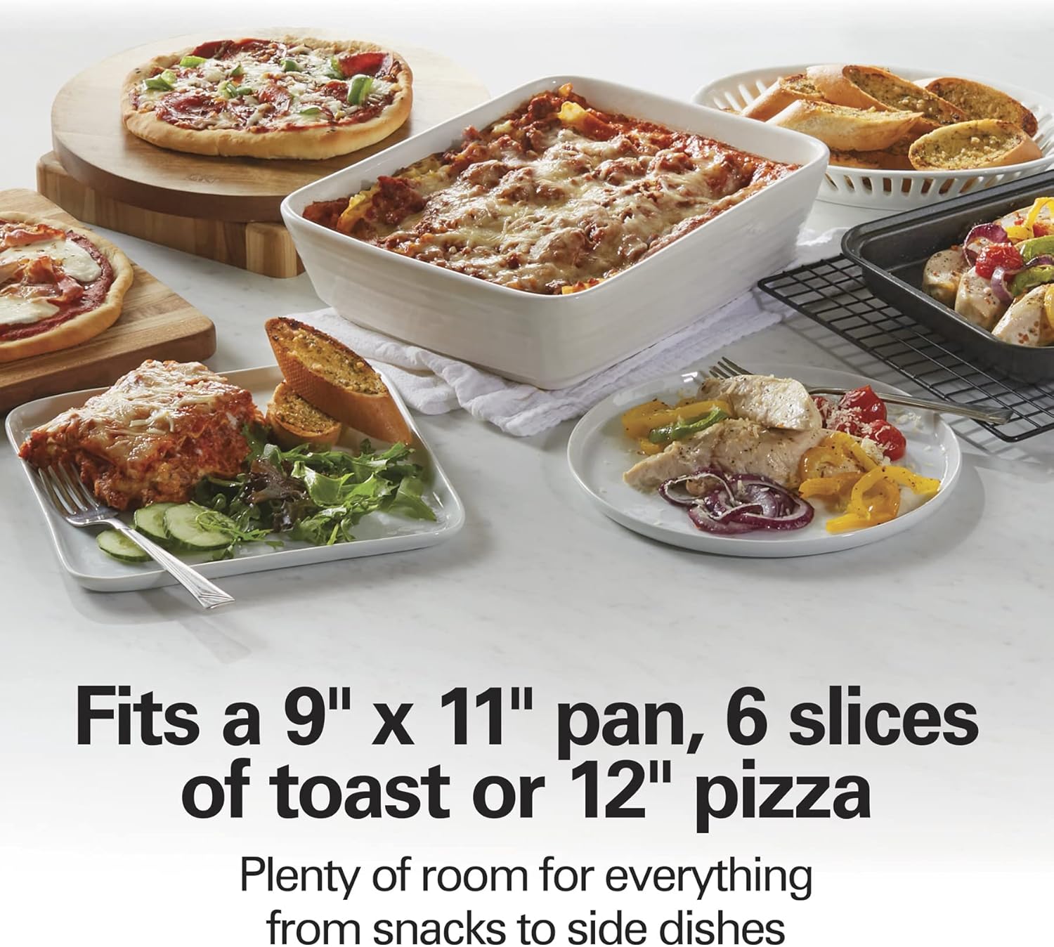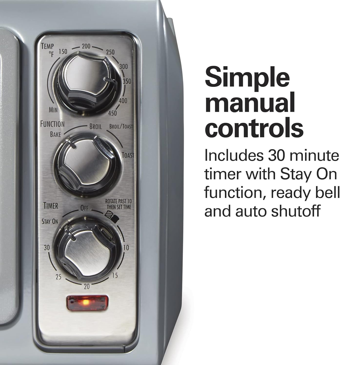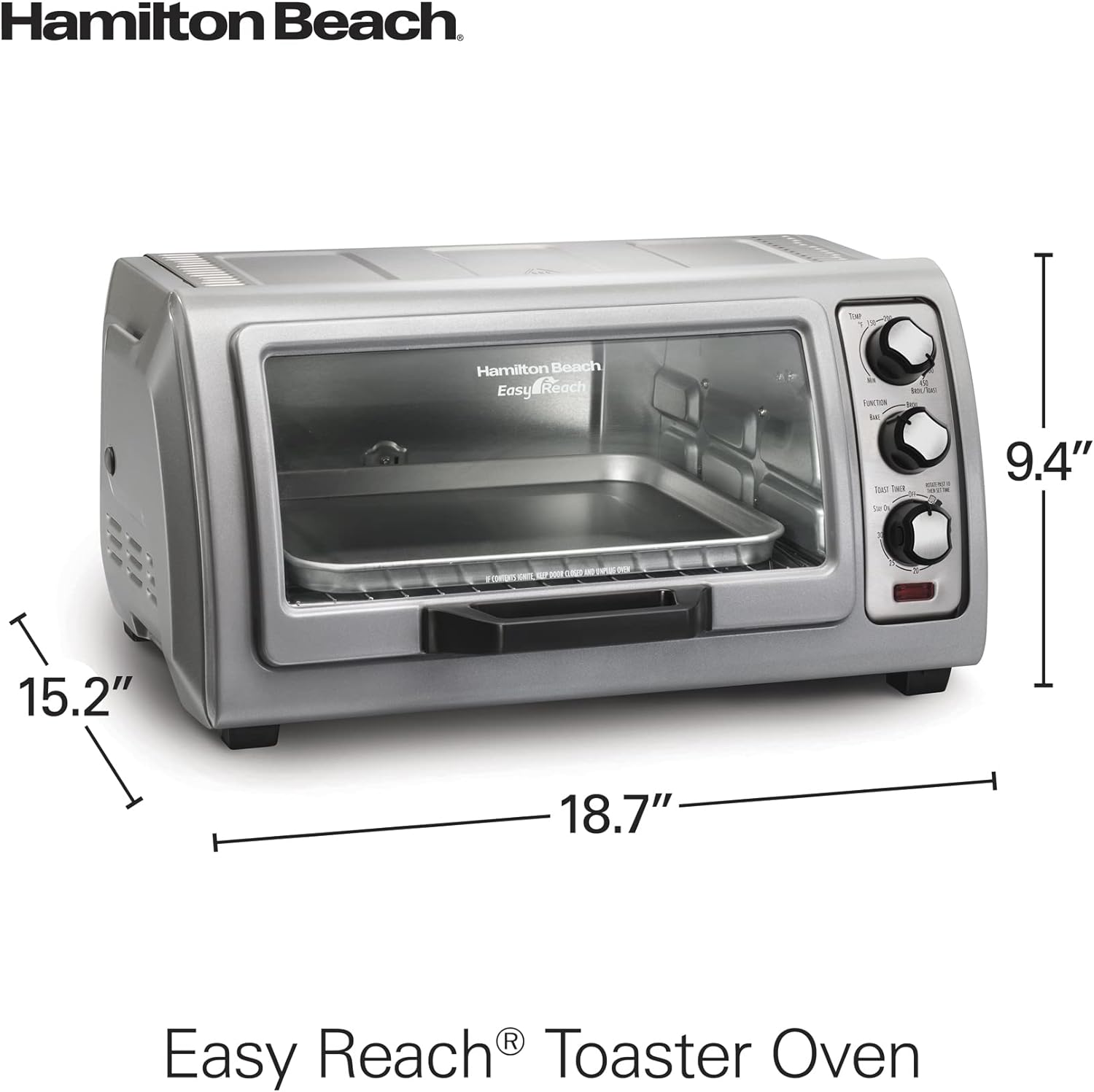Hamilton Beach 6 Slice Countertop Toaster Oven With Easy Reach Roll-Top Door, Bake, Broil & Toast Functions, Auto Shutoff, Silver (31127D)