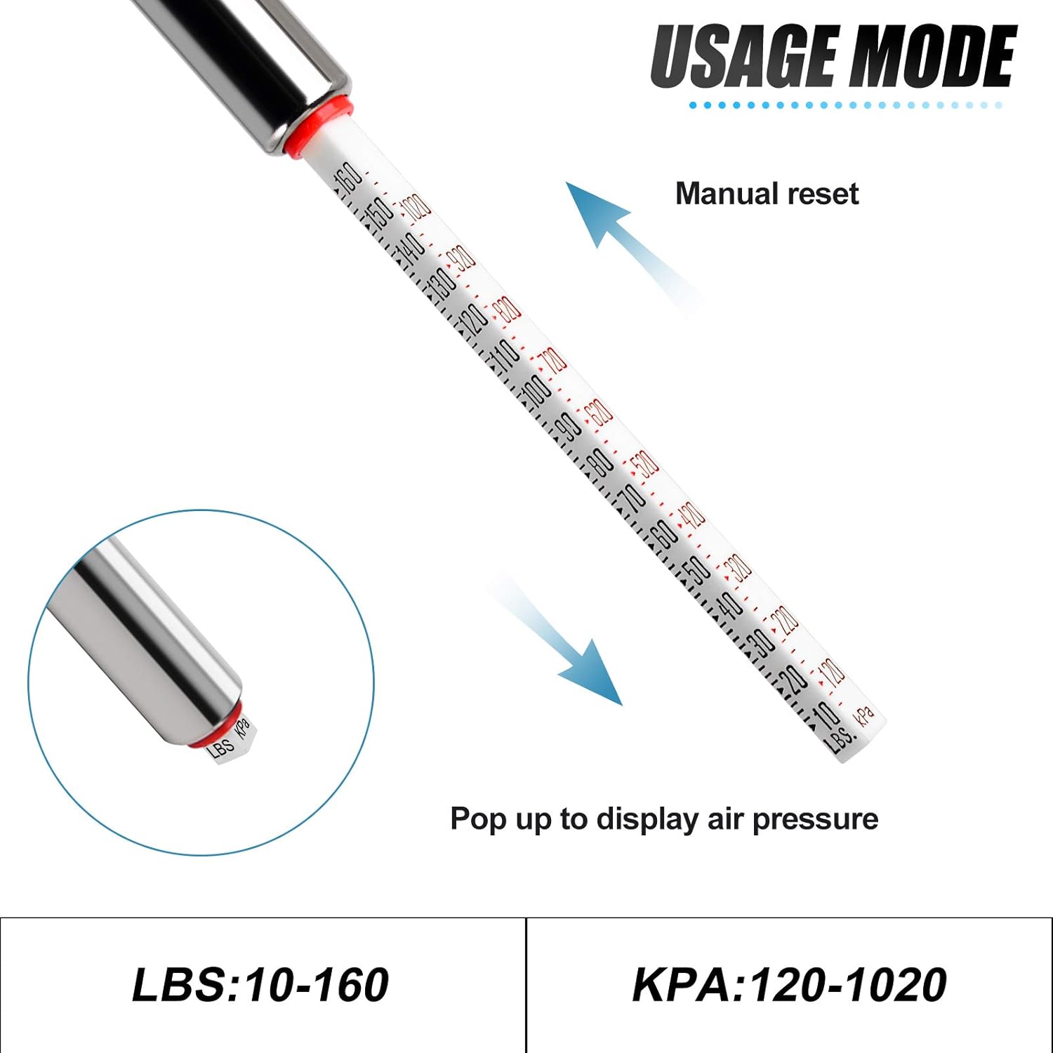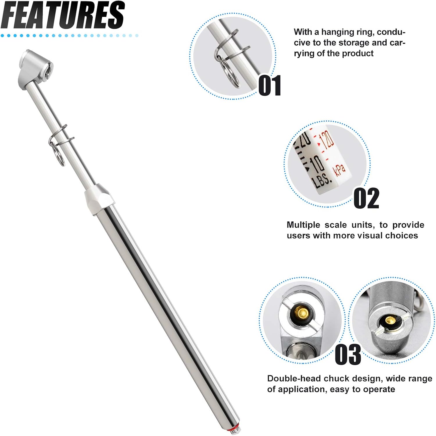 MEANLIN MEASURE 10Pcs Silver Double Straight Type Tire Pressure Gauge,Dual Head Air Pressure Gauge,Pressure Range 10-160 Psi(Suitable for Trucks, etc.