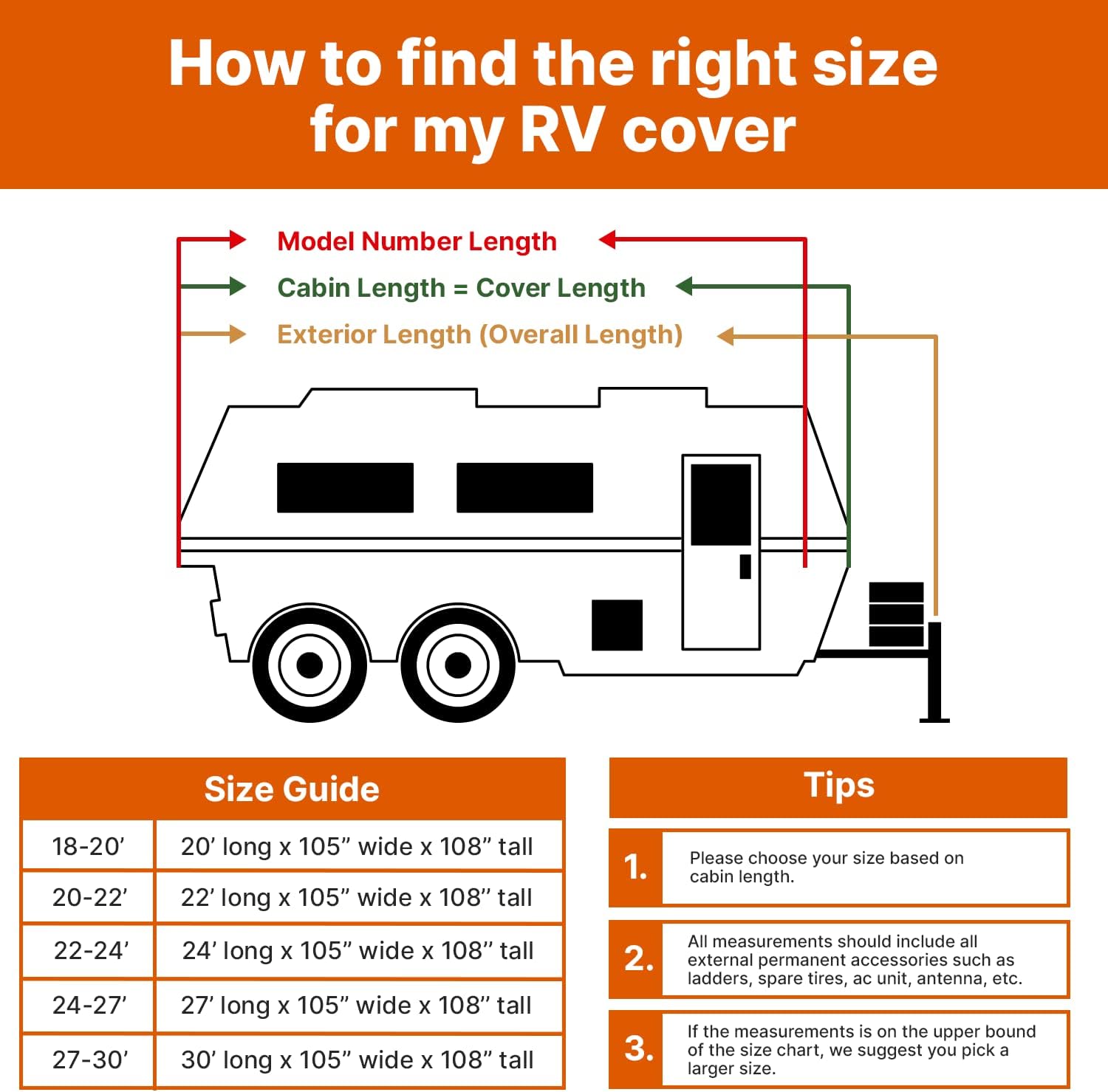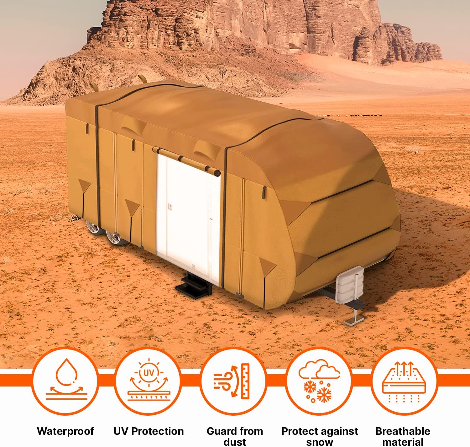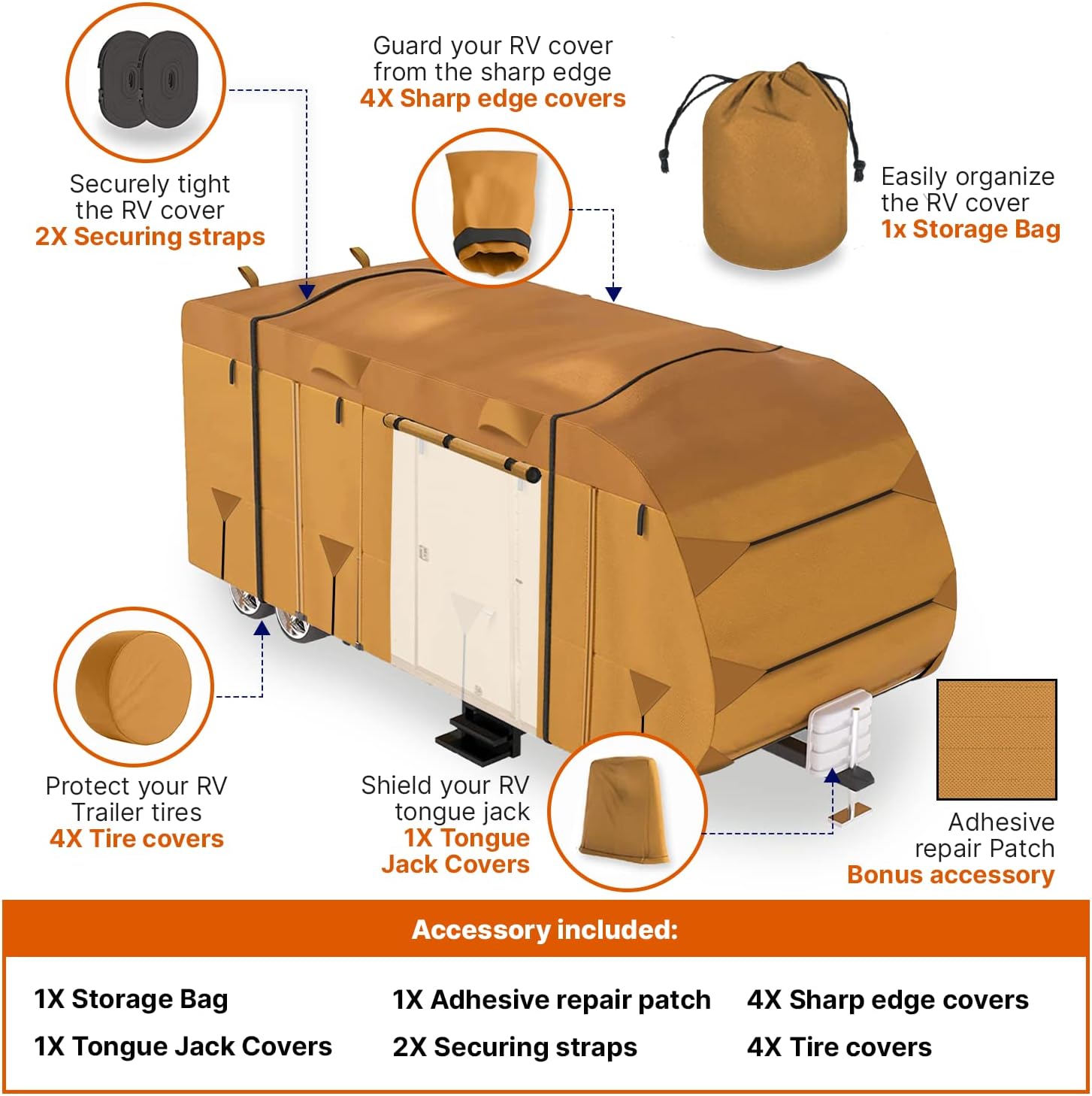 22-24ft Travel Trailer Camper RV Cover Package Premium Heavy-Duty Waterproof Anti-UV Breathable Fabric Including Jack Cover 4 Tire Covers and 2 Secure Straps