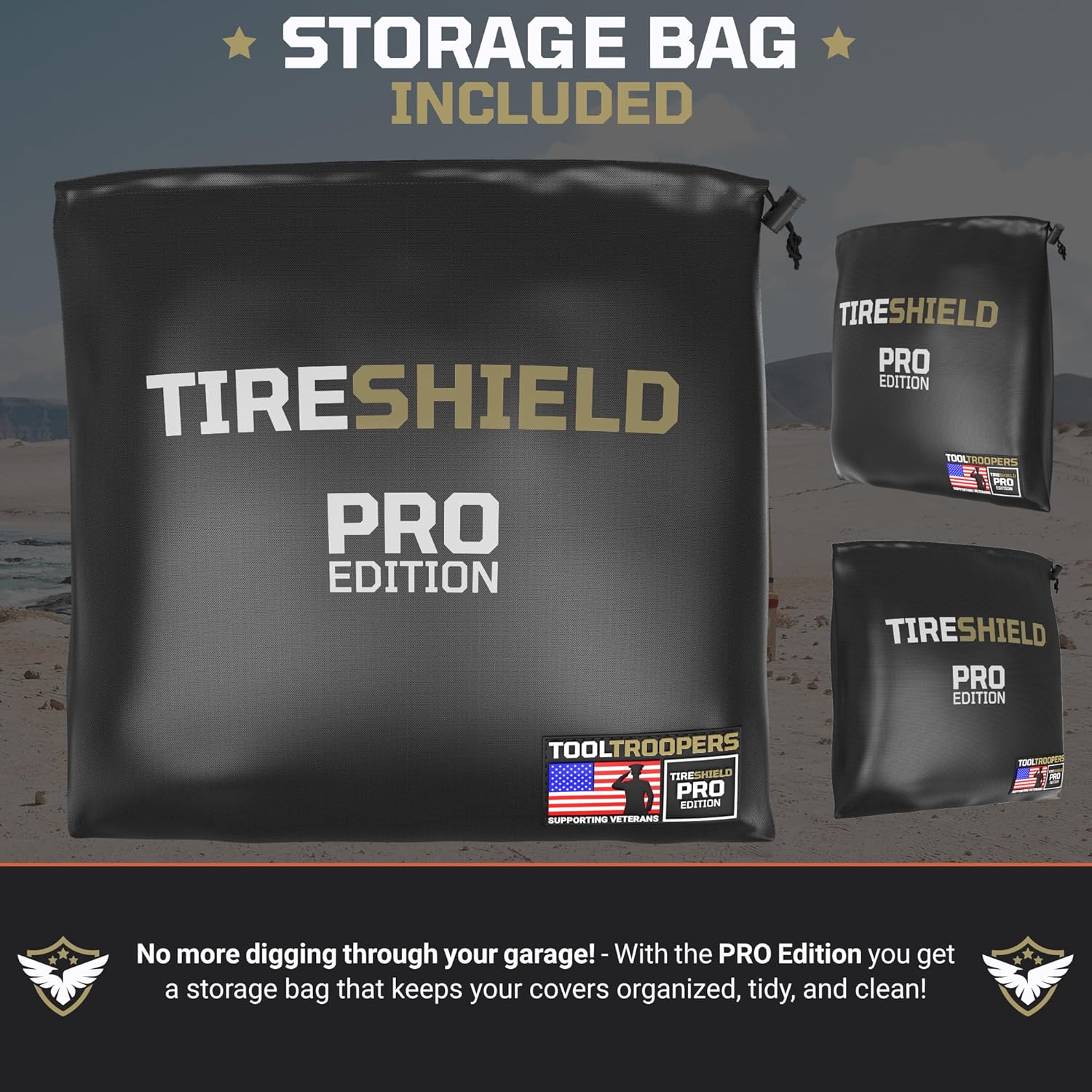 TIRESHIELD PRO Tire Covers Set of 4 - Heavy Duty All-Weather UV-Resistant Wheel Covers w/StormLock-System - Year-Round Protection for Your RV, Camper, Truck, Car & Trailer Tires w/ 39-42" Diameter