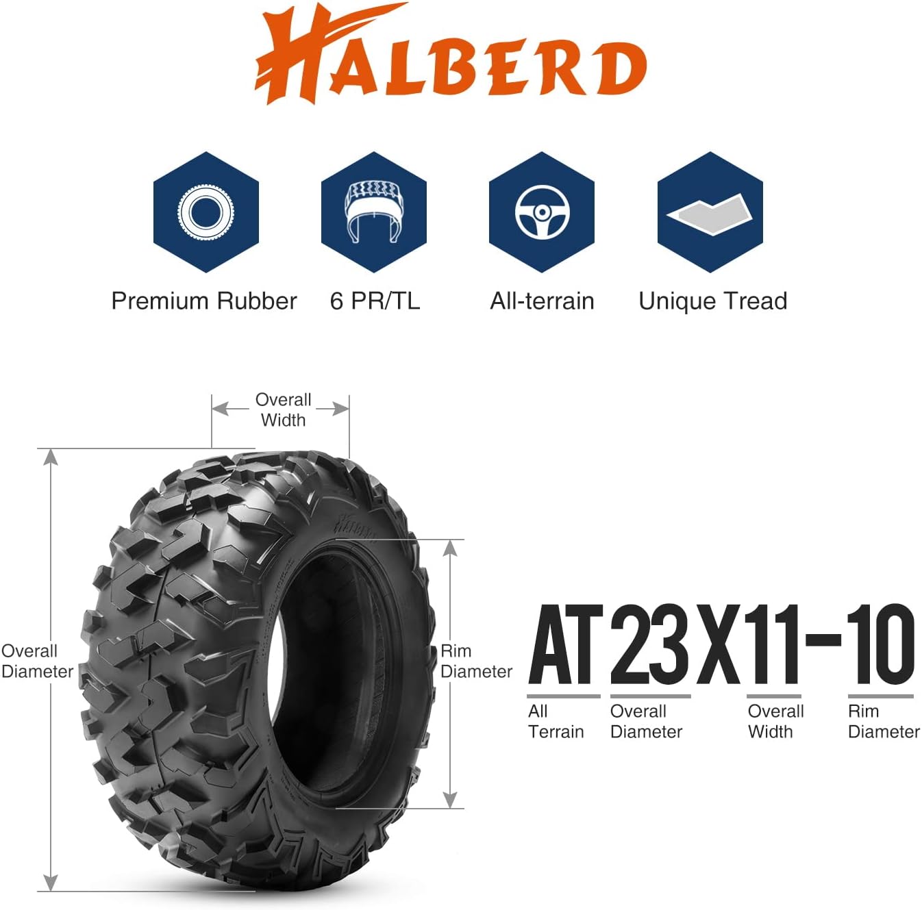HALBERD 6PLY 23x11-10 ATV Tires, 6PR All Terrain 23x11x10 Trail Sand ATV UTV Off-Road Tires | 15mm Tread Depth(Pack of 1, Tubeless)
