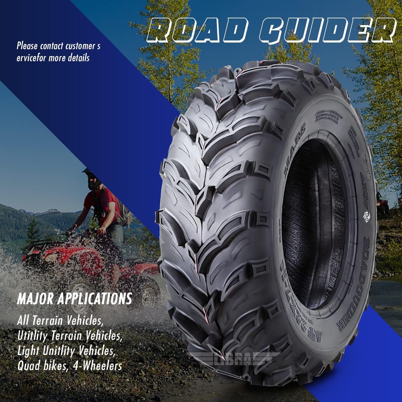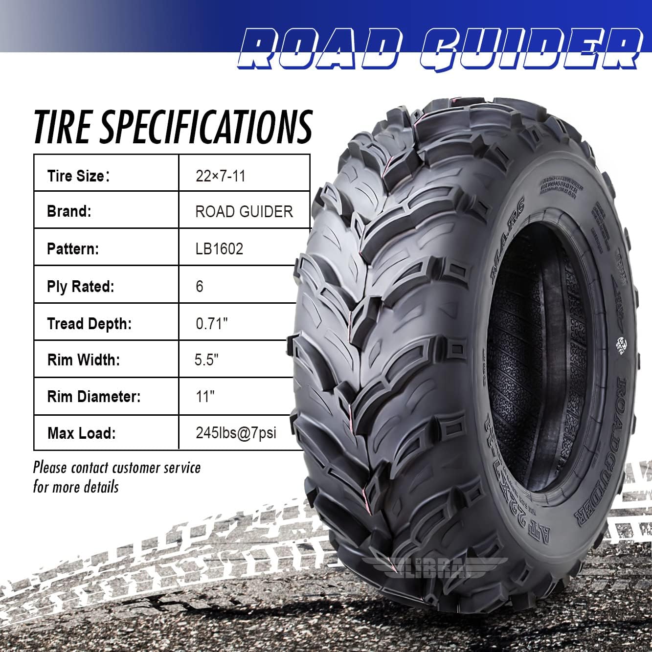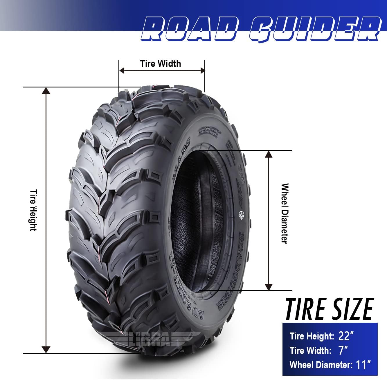 ROADGUIDER Set 2 Road Guider ATV Mud Tires 22x7-11 22X7X11 6PR 20mm deep tread compatible for Honda Recon 250 Suzuki Ozark 250