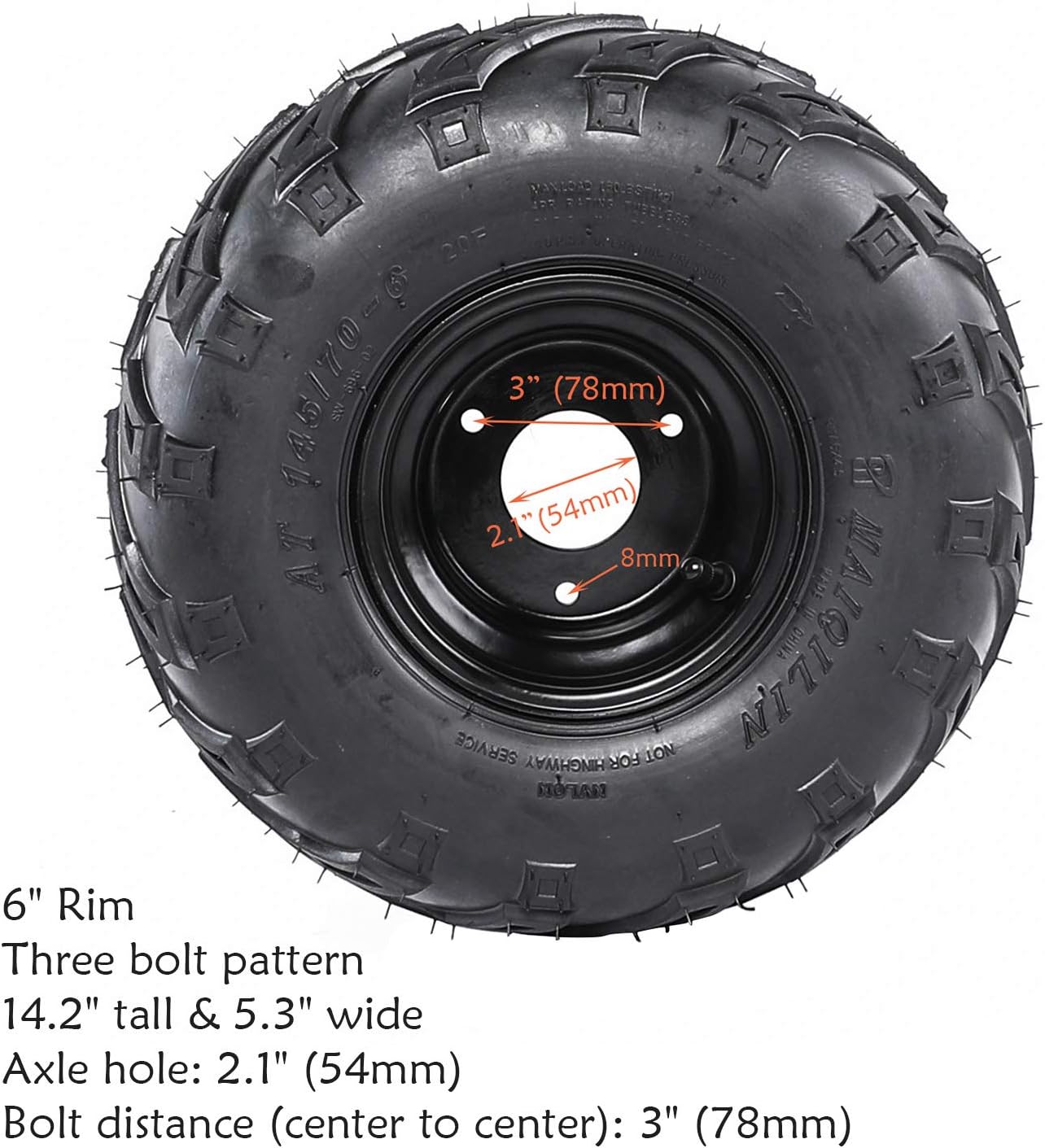 ATV Tires 145/70-6 Wheels with Rims | Tubeless tire for Go Kart UTV Quad Bike