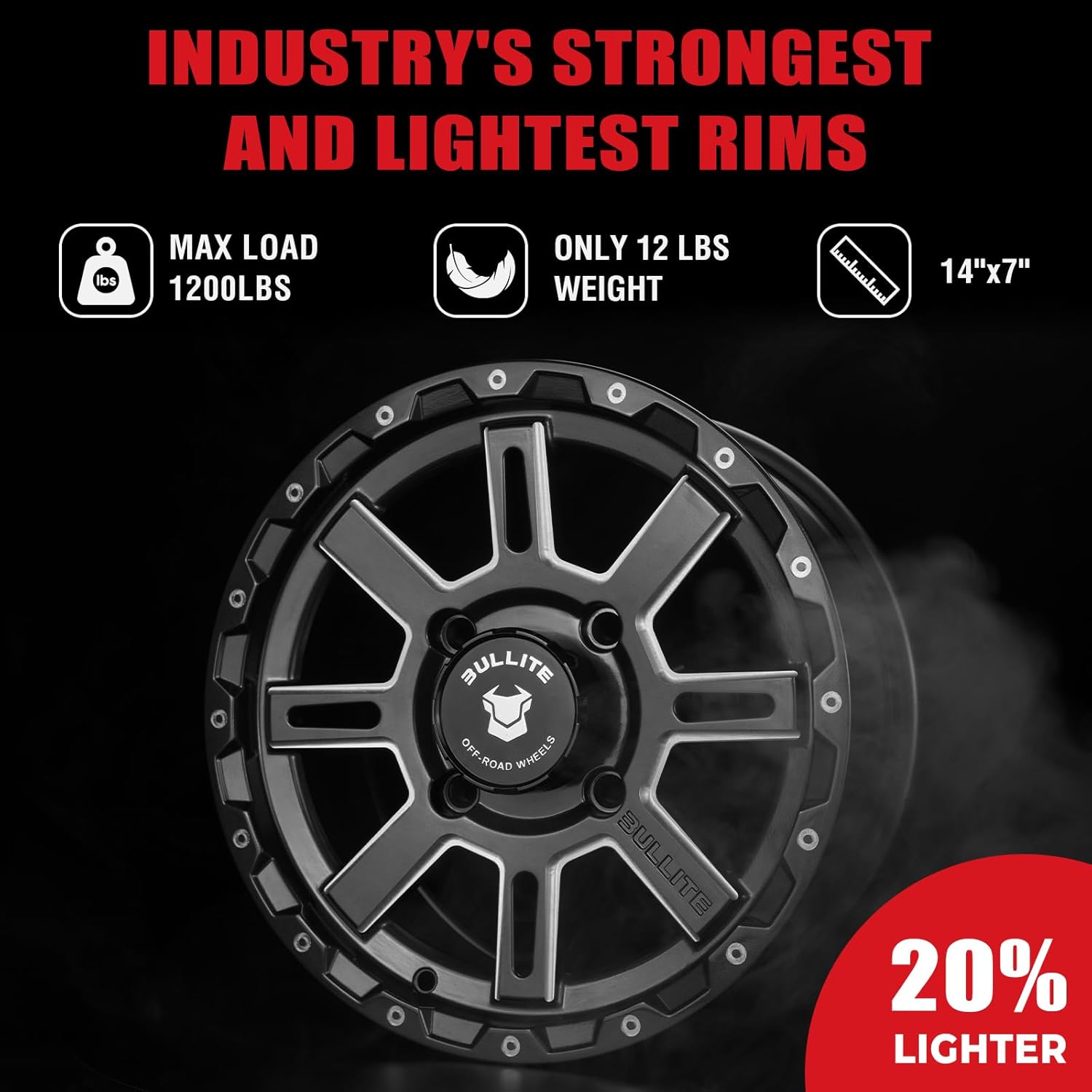 Bullite BT-02 Lancer UTV Wheels Gunmetal Gray Rims 14x7, 4x137/ 5+2 Offset, Can-Am Maverick X3 Commander Renegade Outlander Defender