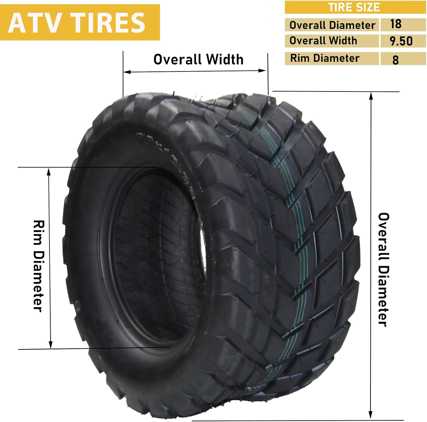 Set of 2 Amenitlif 18x9.50-8 All Terrain ATV UTV Tire 18x9.50x8 Tubeless Sport Tires 4-Ply Rated, Perfect for Sand, Mud, Snow, QD-118