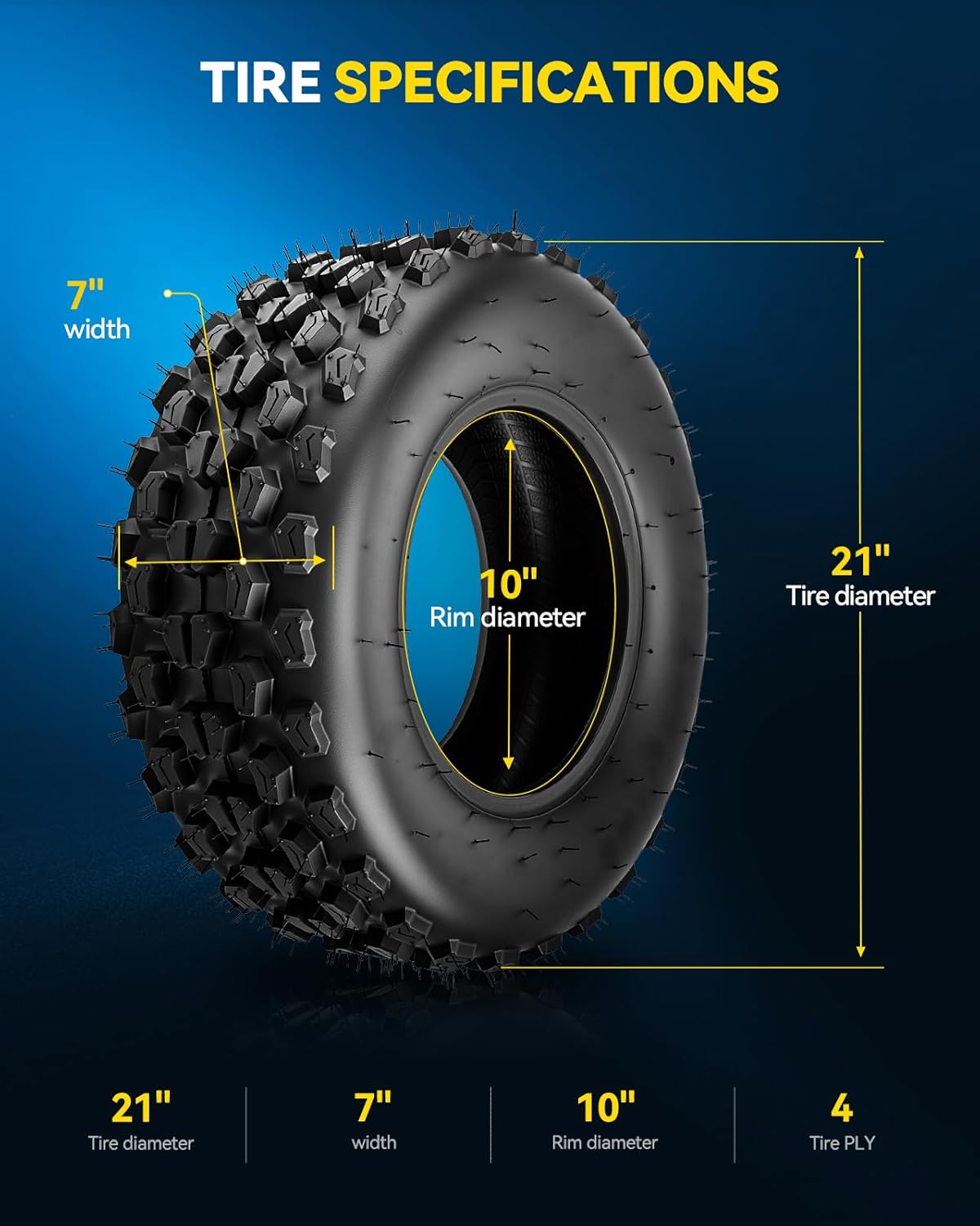 PHILTOP ATV/UTV Tire All Terrain, 21x7-10 Tires 4 Ply, 2x ATV Tires Trail Mud Muddy Sand Off-Road Tubeless Tire
