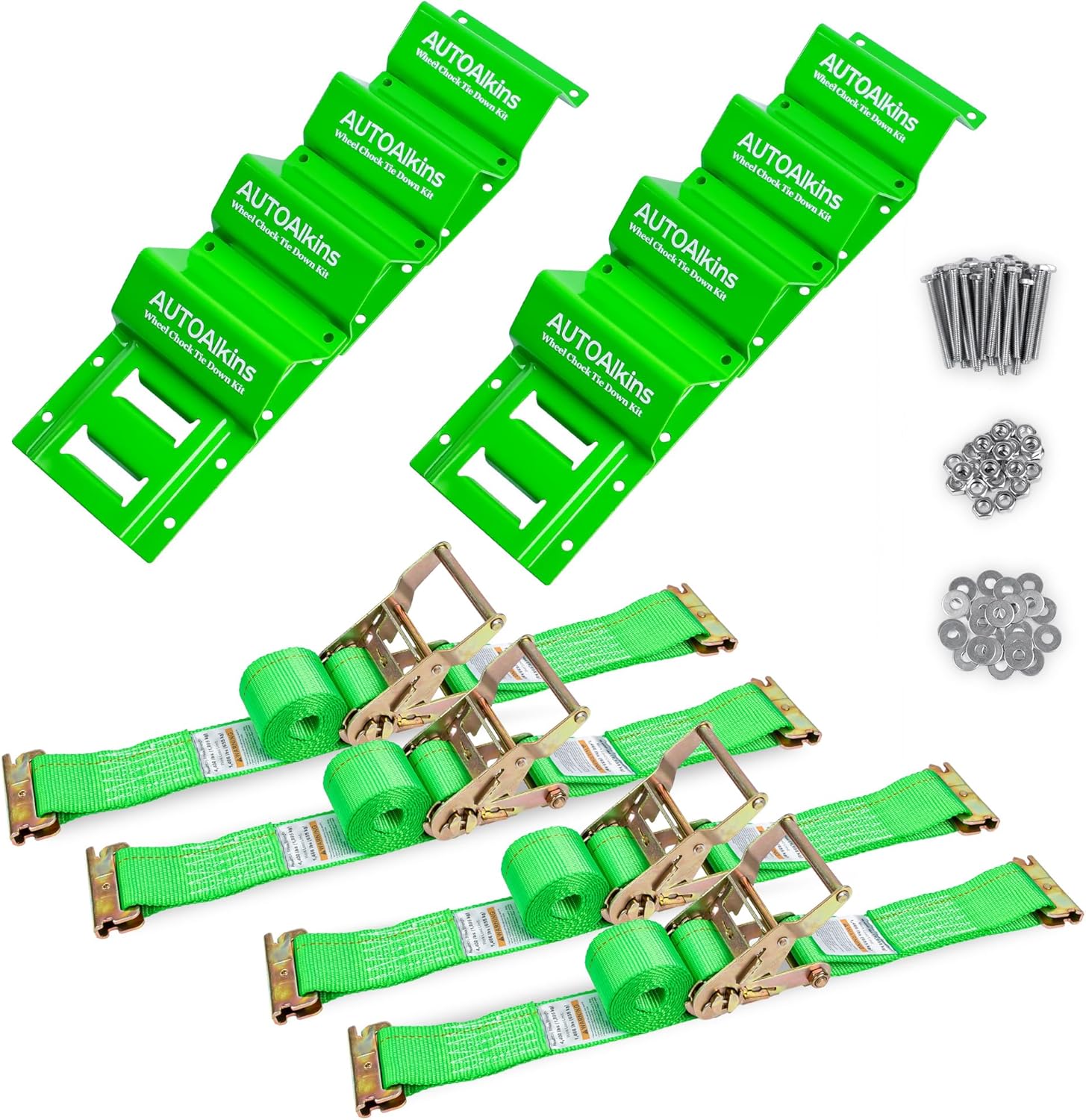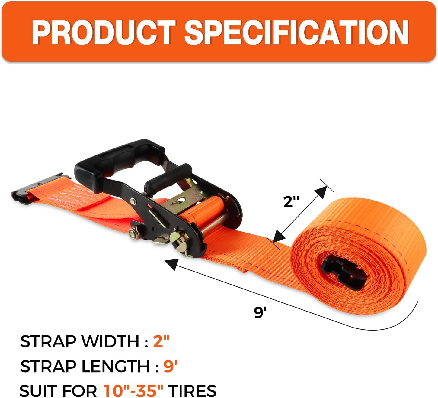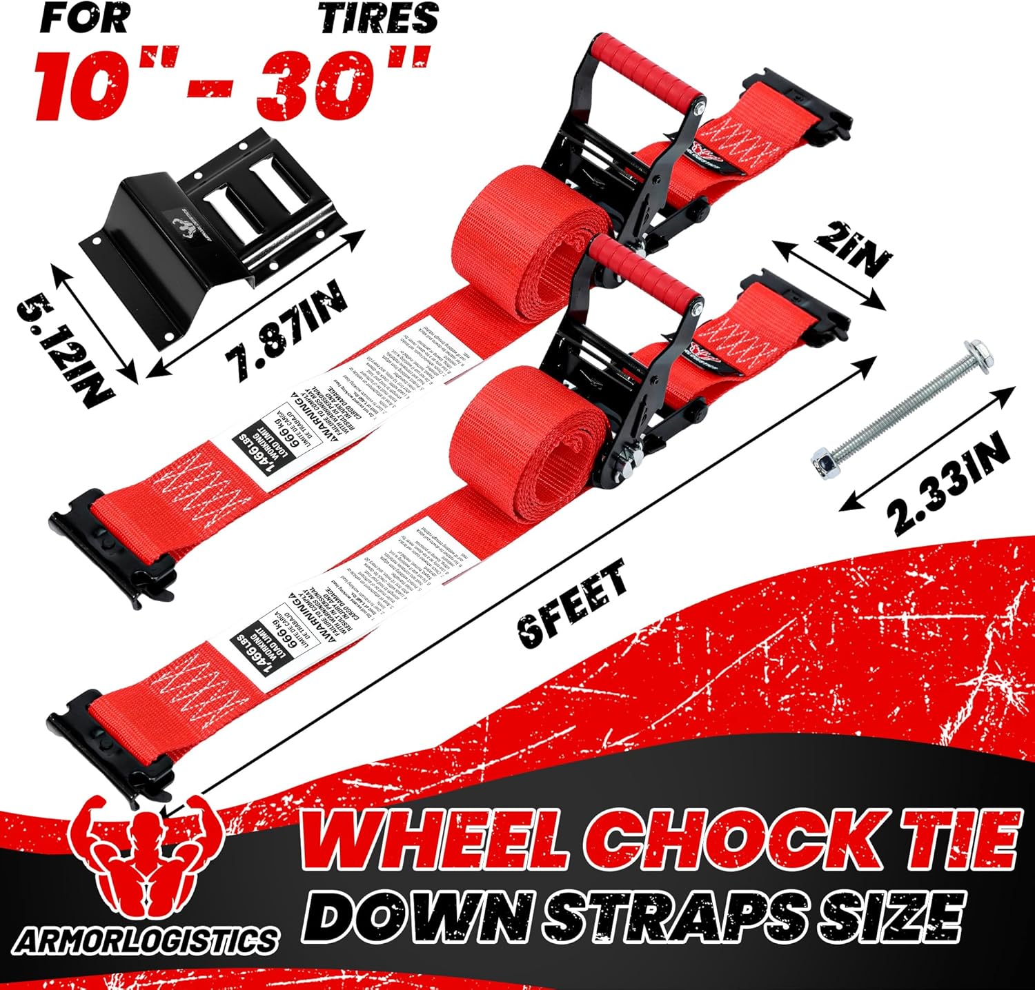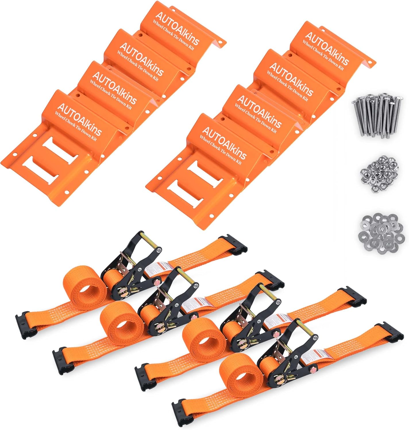 Wheel Chock Tie Down Kit, 4 Pack Heavy Duty Trailer Tire Straps Kit for ATV, UTV, Lawn Mower, 4,400lb Max Break Strength