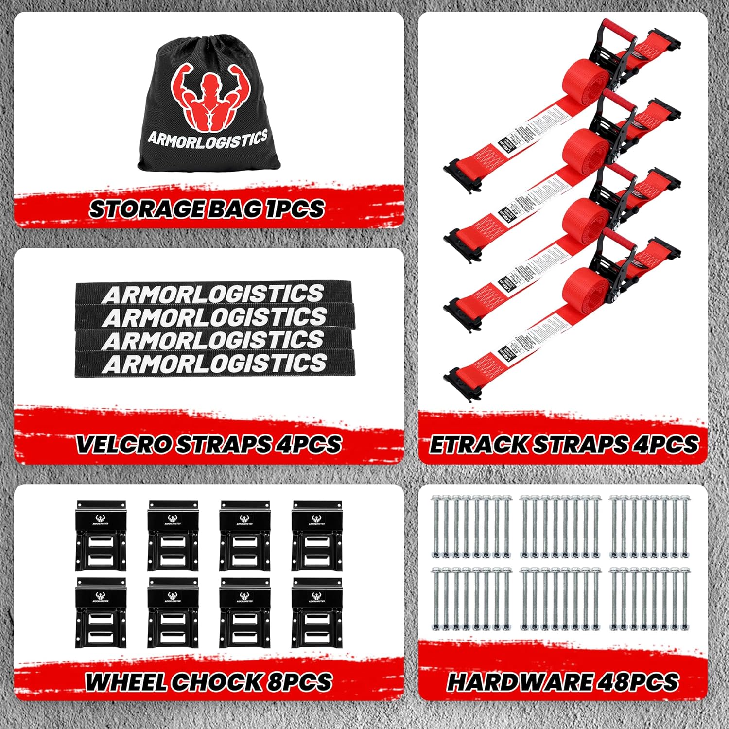 Wheel Chock Tie Down Kit, Trailer Tie Down Strap Kit, Heavy Duty Trailer Tie Down System for UTV, ATV, Mower, etc, 4-Tire Kit(Blue)