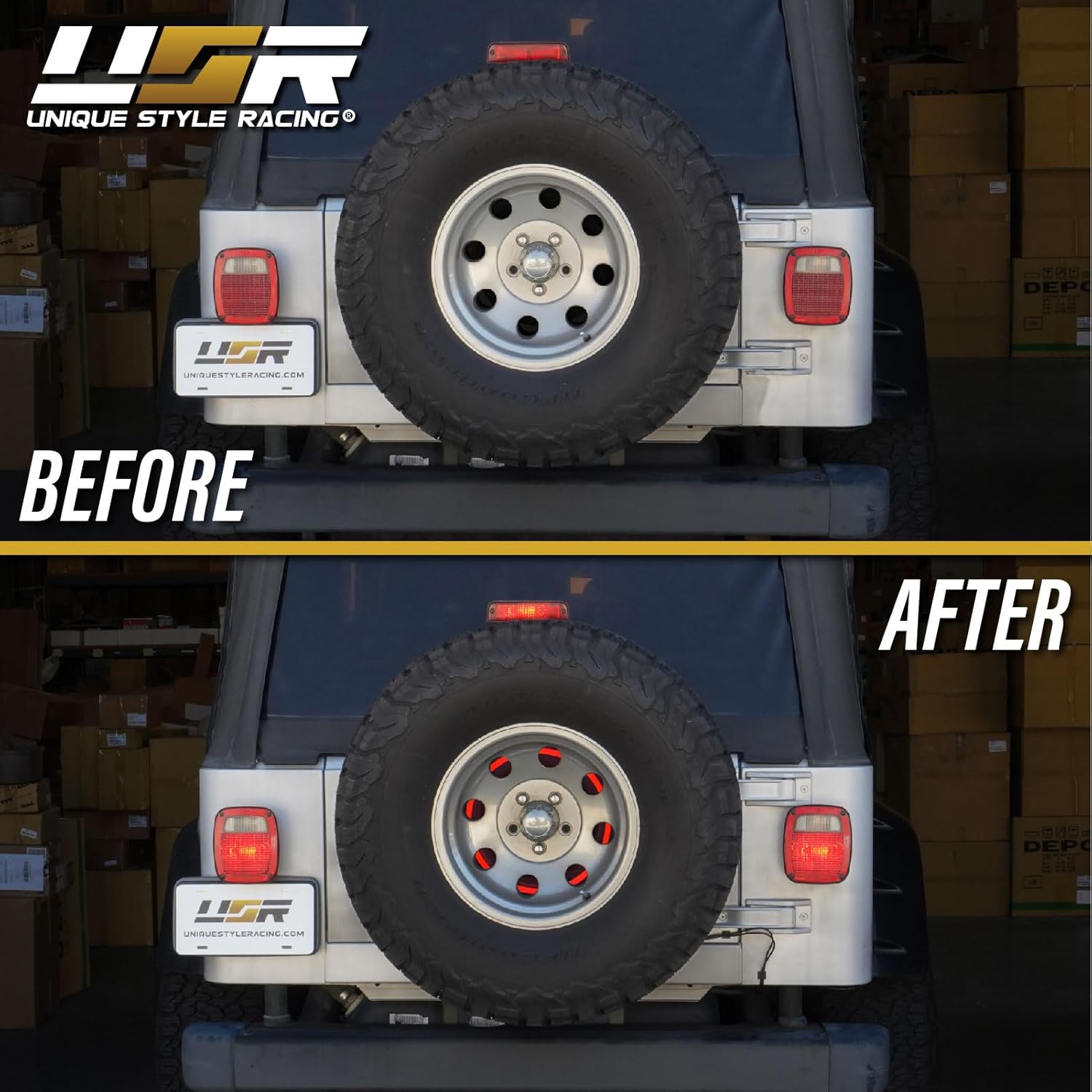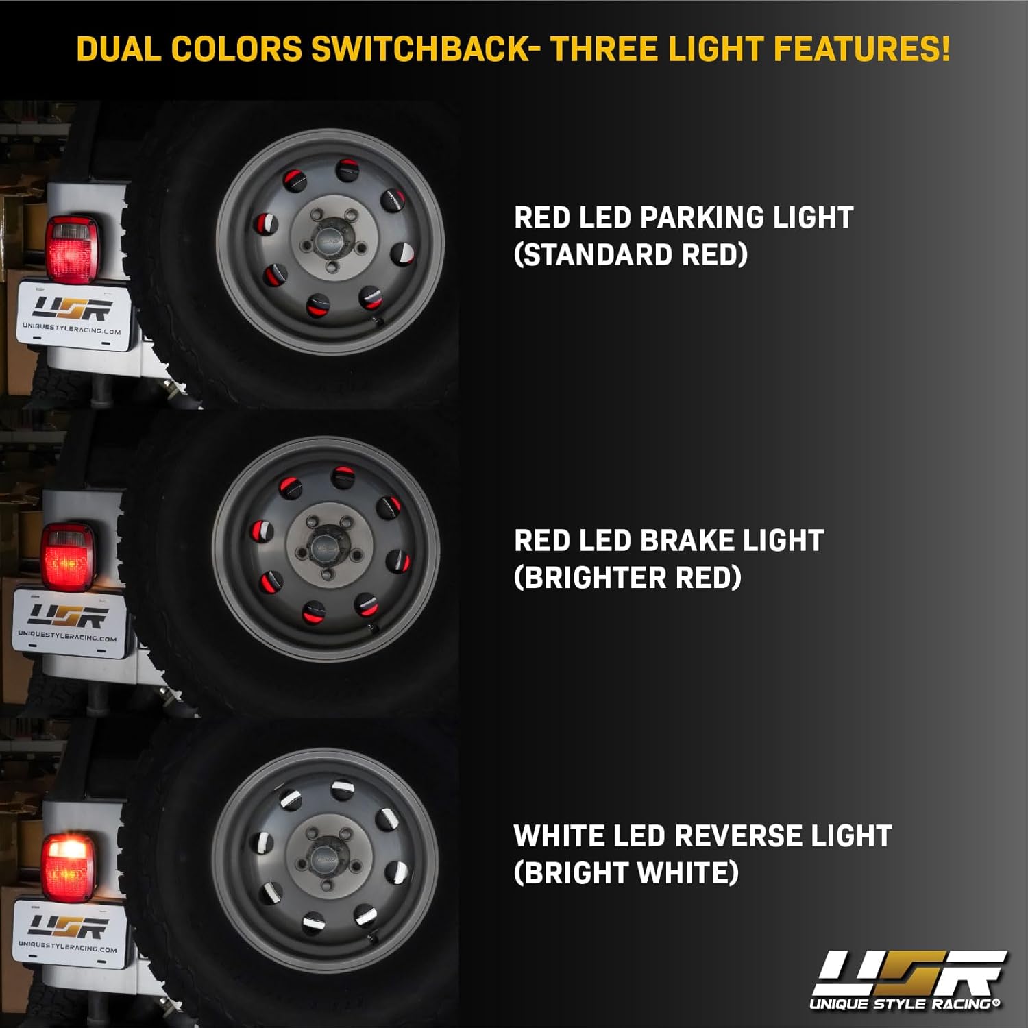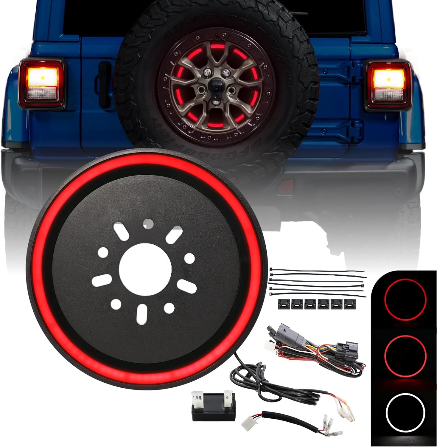 USR 2018+ JL WRANGLER Spare Tire 3rd Third Brake SWITCHBACK Red/White LED HALO Wheel Light Compatible with 2018-2024 Jeep Wrangler JL w/OEM LED Tail Models (Plug & Play, Running+Brake+Reverse)