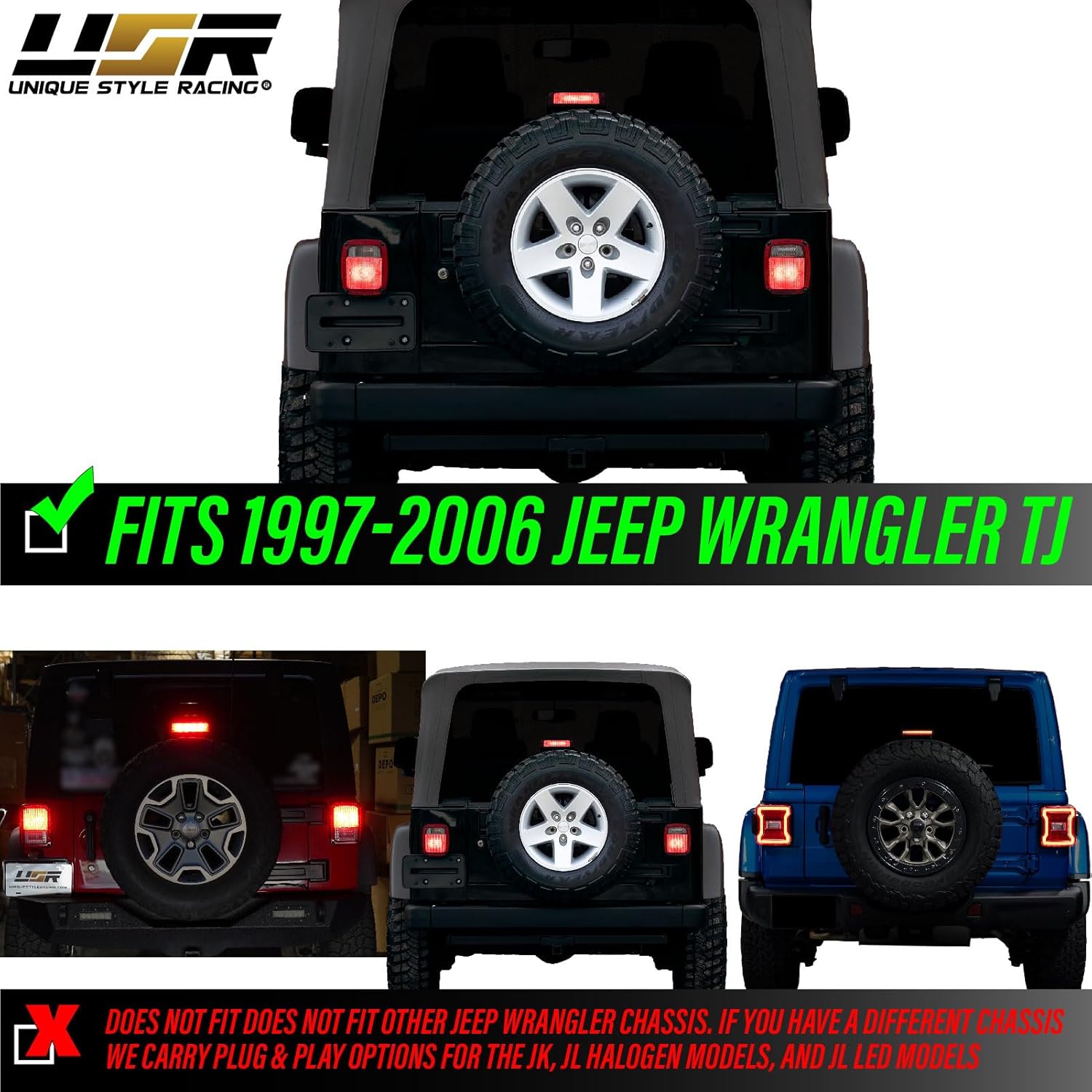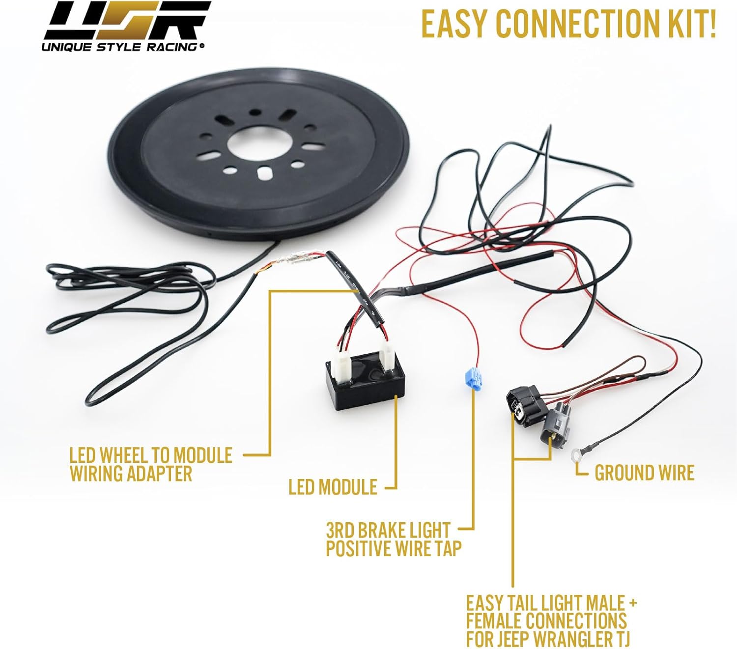 USR 97-06 TJ WRANGLER Spare Tire 3rd Third Brake Light SWITCHBACK Red/White LED HALO Ring Bar Tail Wheel Light Compatible with 1997-2006 Jeep Wrangler TJ (Module + Connectors, Running+Brake+Reverse)
