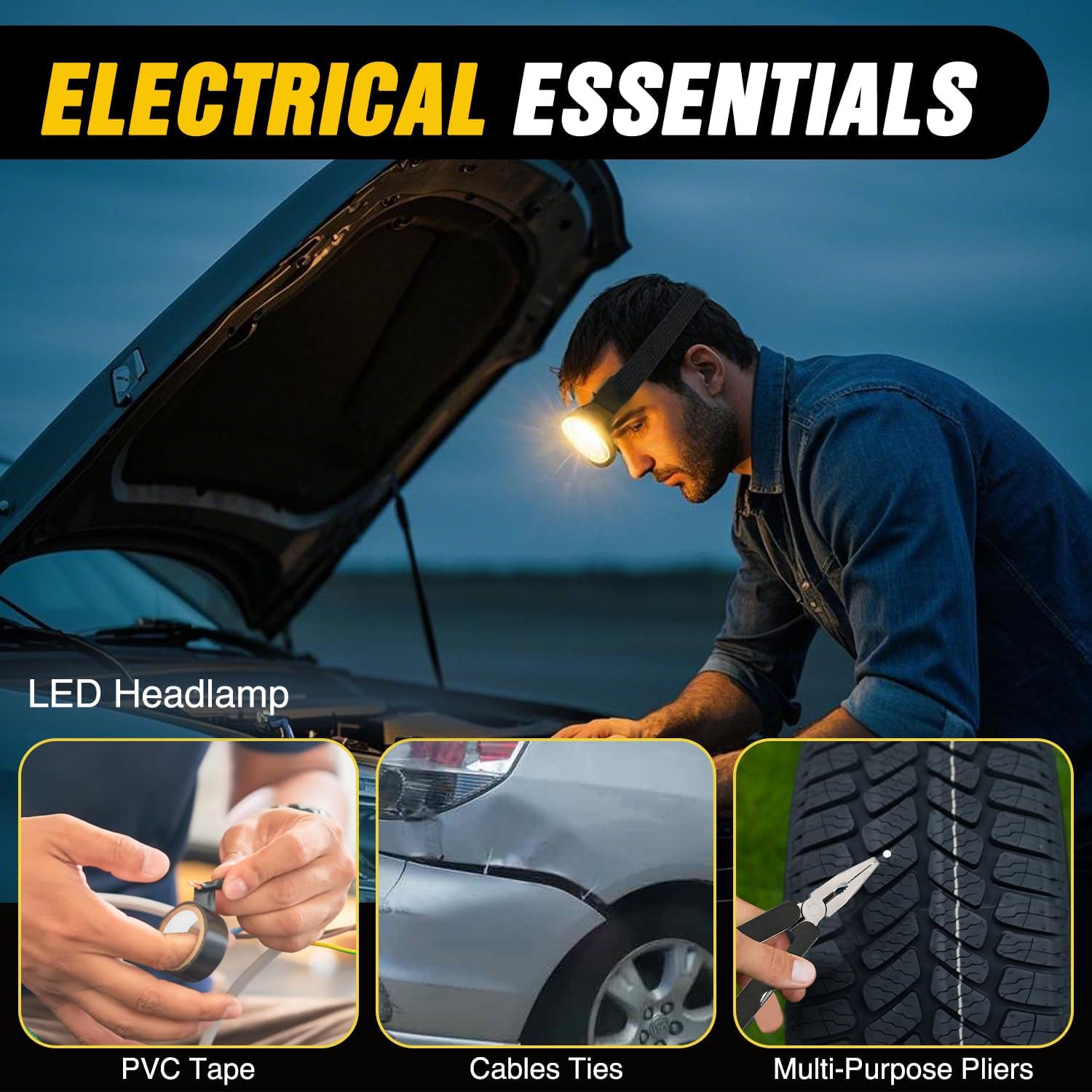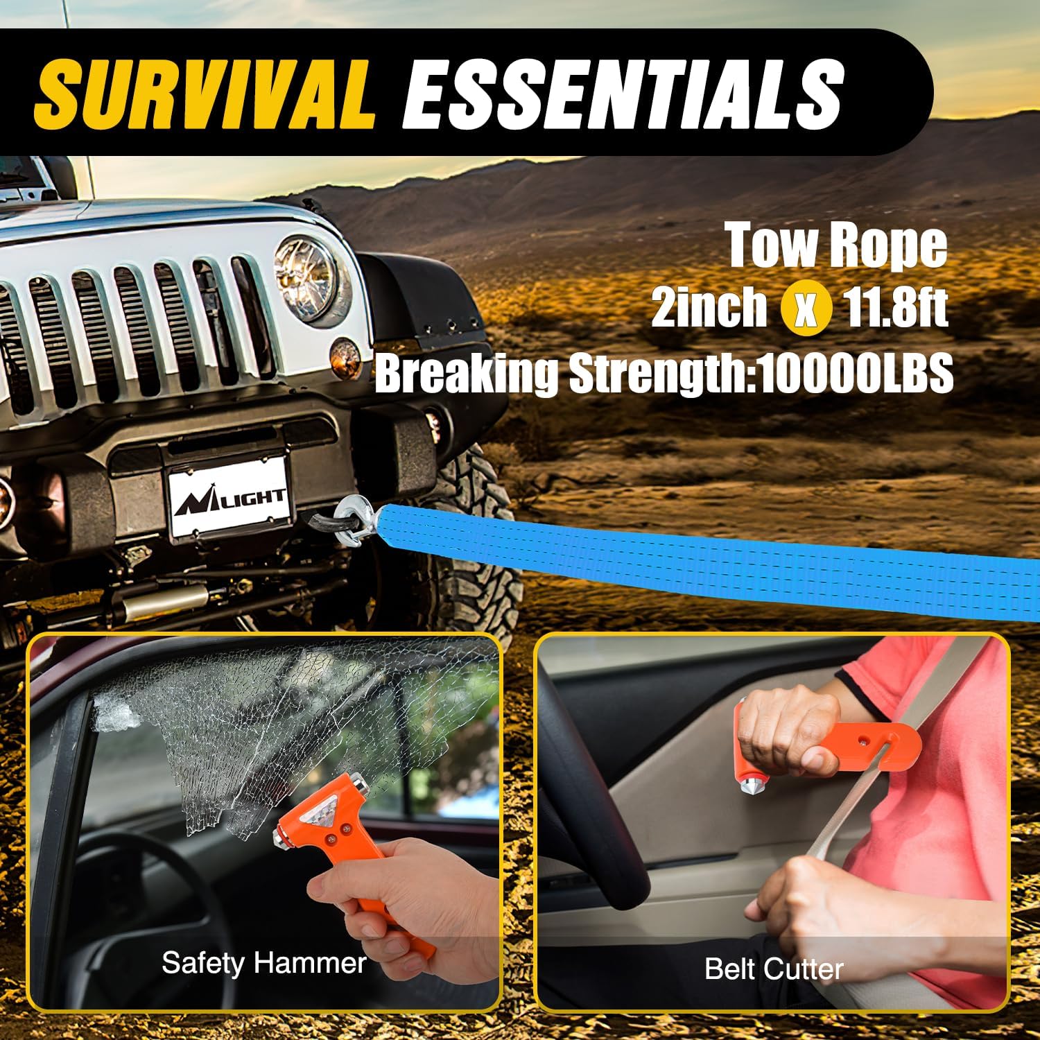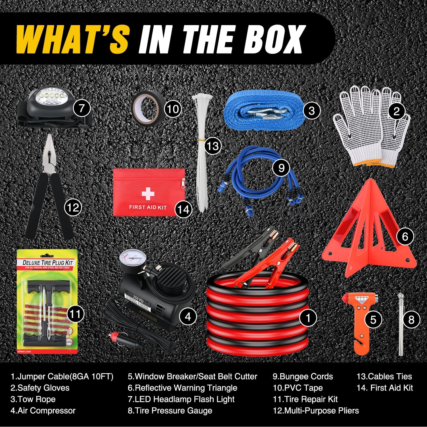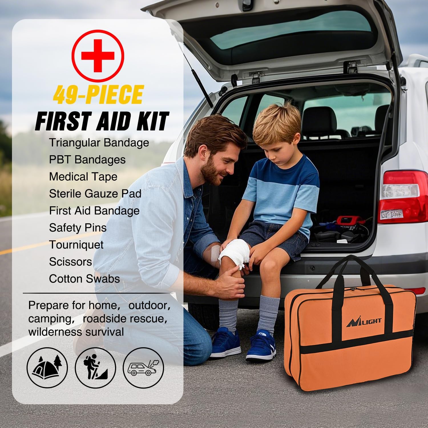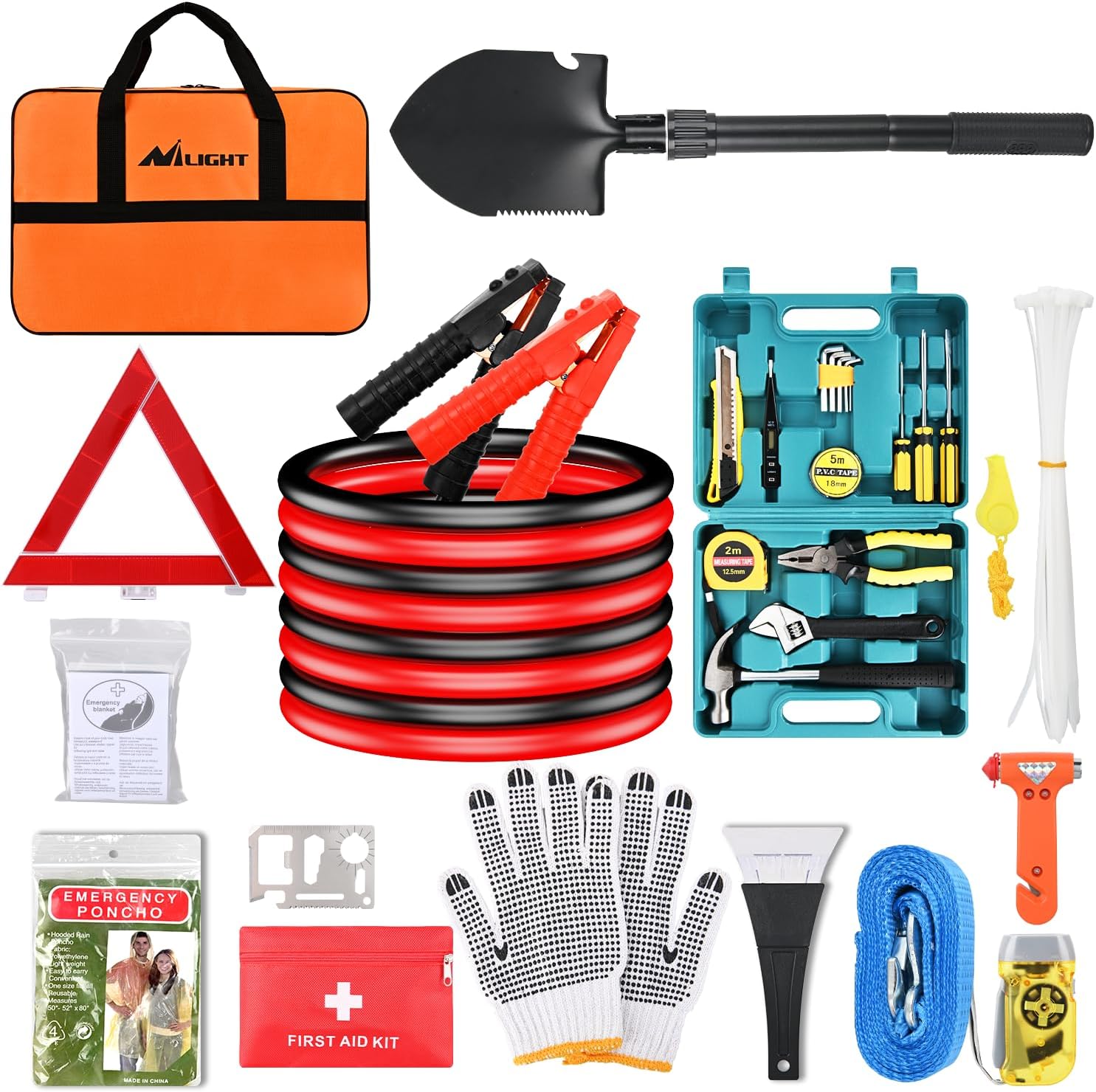 Nilight Car Emergency Kit with Jumper Cable First Aid Kit Tire Pressure Gauge,Roadside Safety Assistance Essential Tools Battery Clamp Alligator for Travel Camping Outdoor Cars Truck SUV RV
