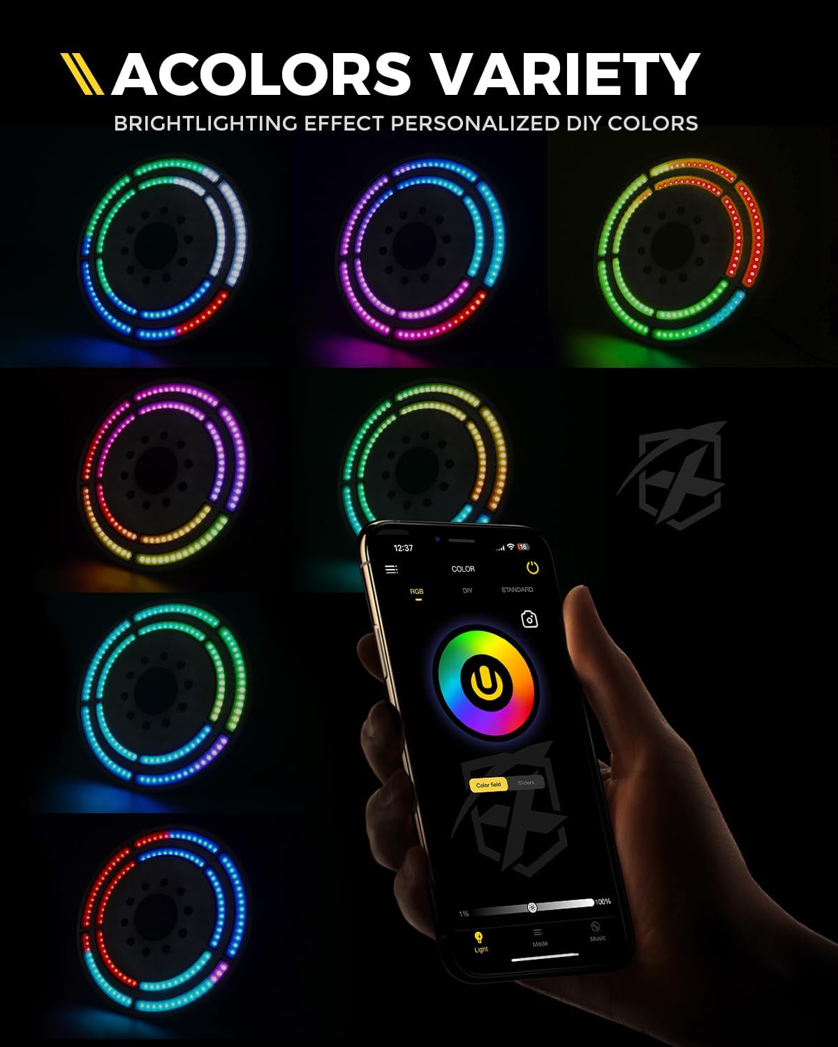 Xprite RGB Spare Tire Brake Light - Dual Ring Rear Wheel Light Compatible with 2007-2018 Jeep Wrangler JK JKU, Color-Changing Third Tail Lamp with Dual Control (RF & Bluetooth)