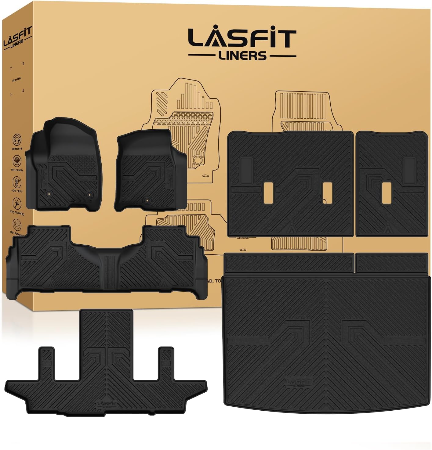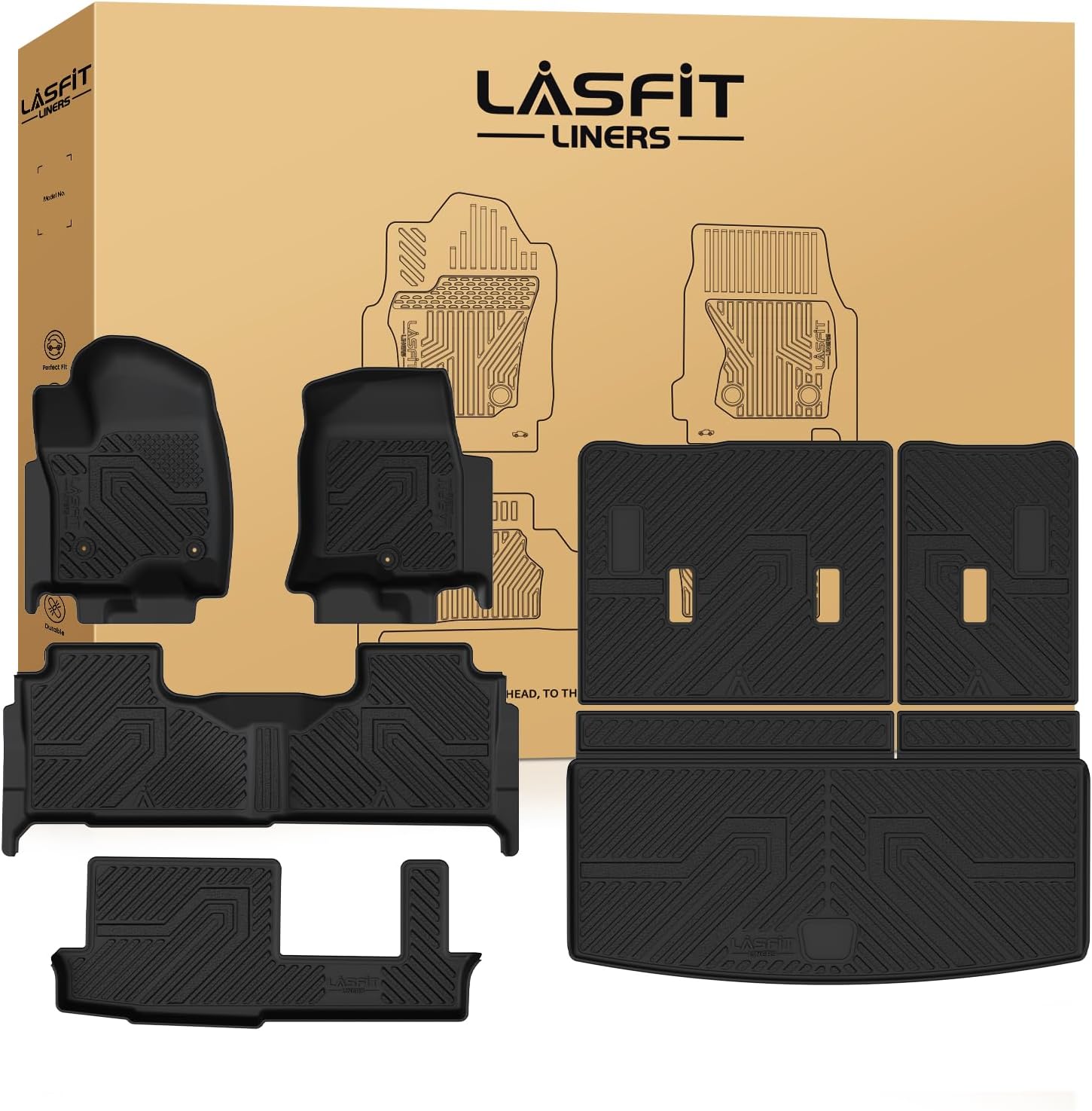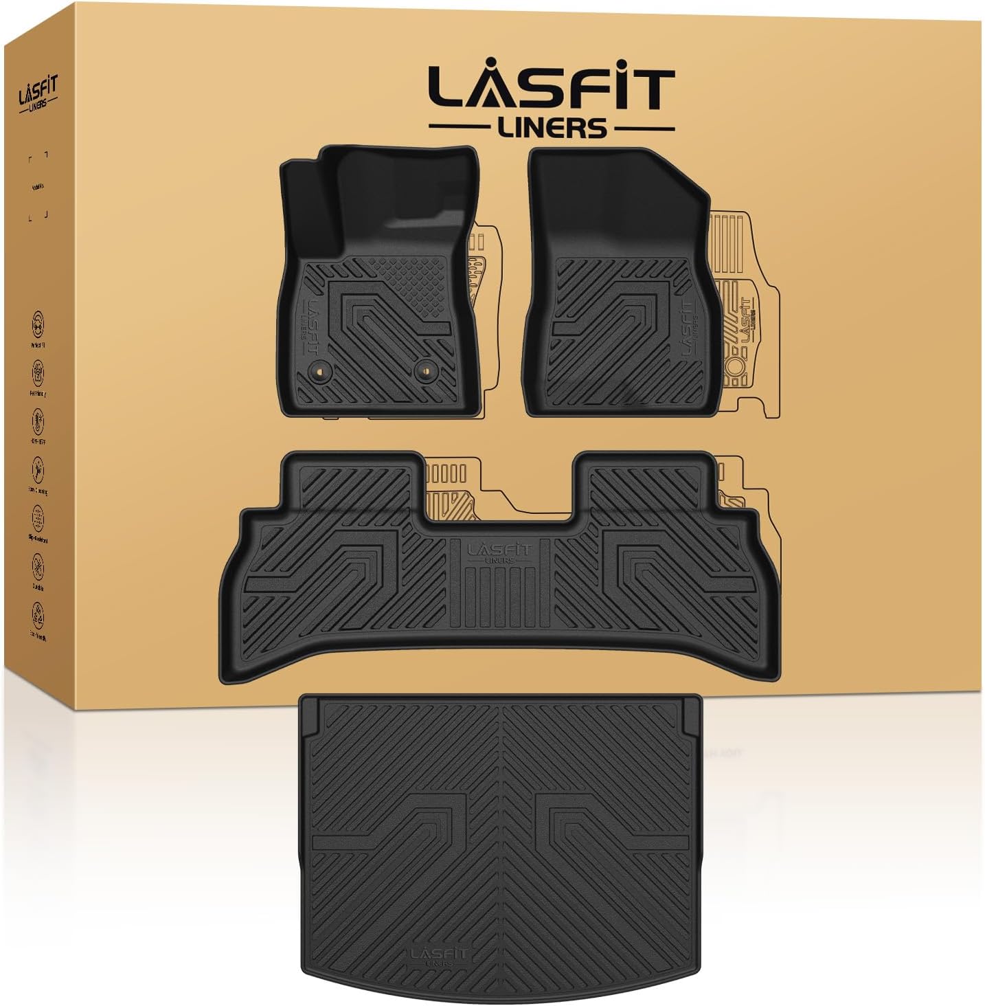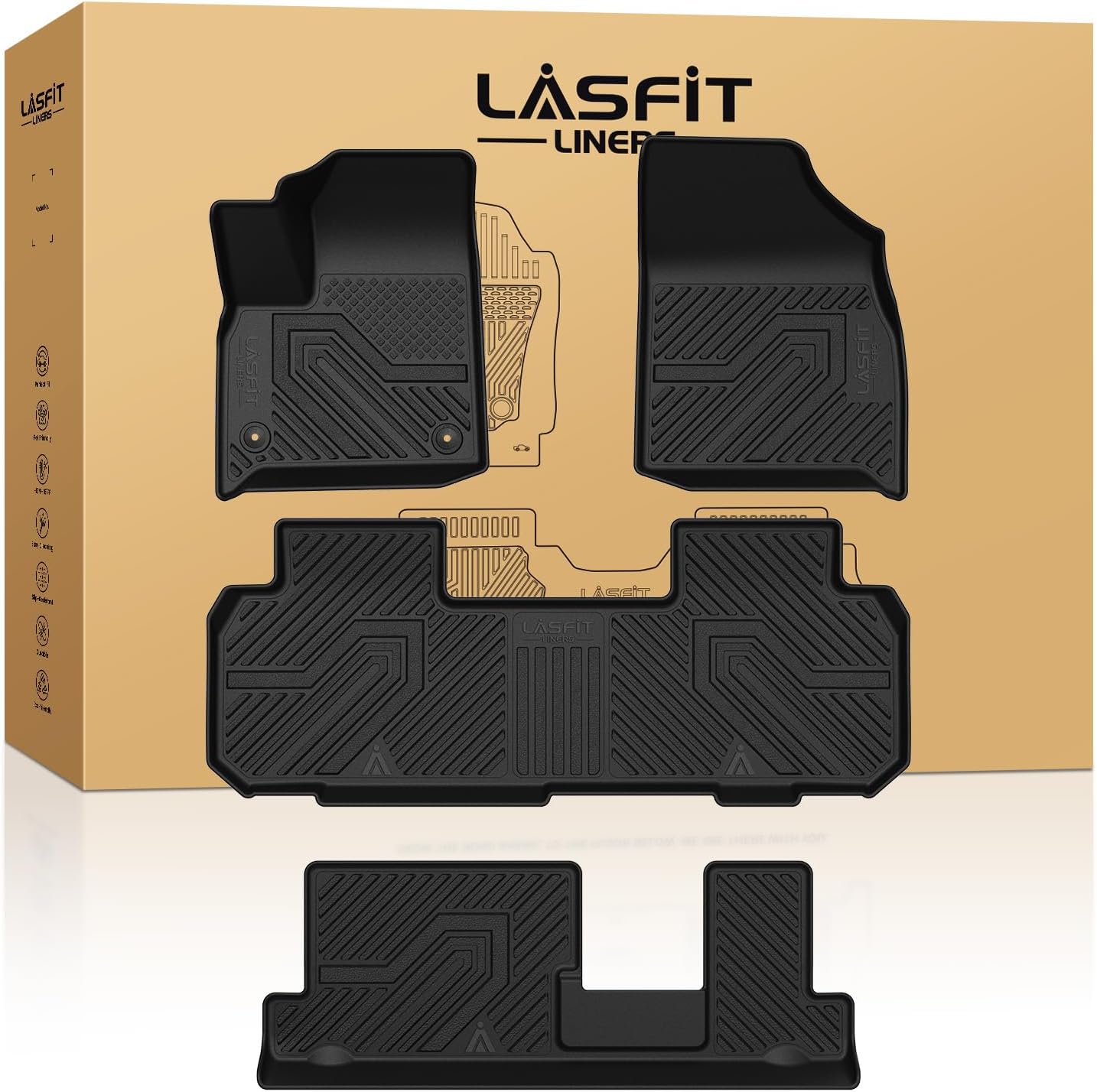 LASFIT Floor Mats for Chevrolet Traverse 2024-2026 (Only 7 Seats) & GMC Acadia 2024-2026 (Only 7 Seats) & Buick Enclave 2025-2026, All Weather TPE Custom Fit Car Floor Mat, 3 Row Floor Liners, Black