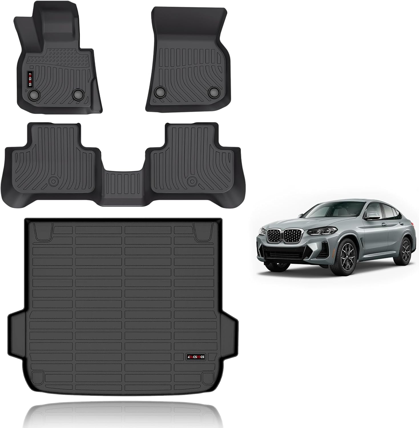 KELCSEECS Floor Mats & Cargo Liner Custom for BMW X3 2018-2024 (Only Fit Models with X3 Spare Tire) Car Mats Automotive Cargo Mat Floor Liners Trunk Mat X3 All Weather Floor Mats Trunk Liner Black