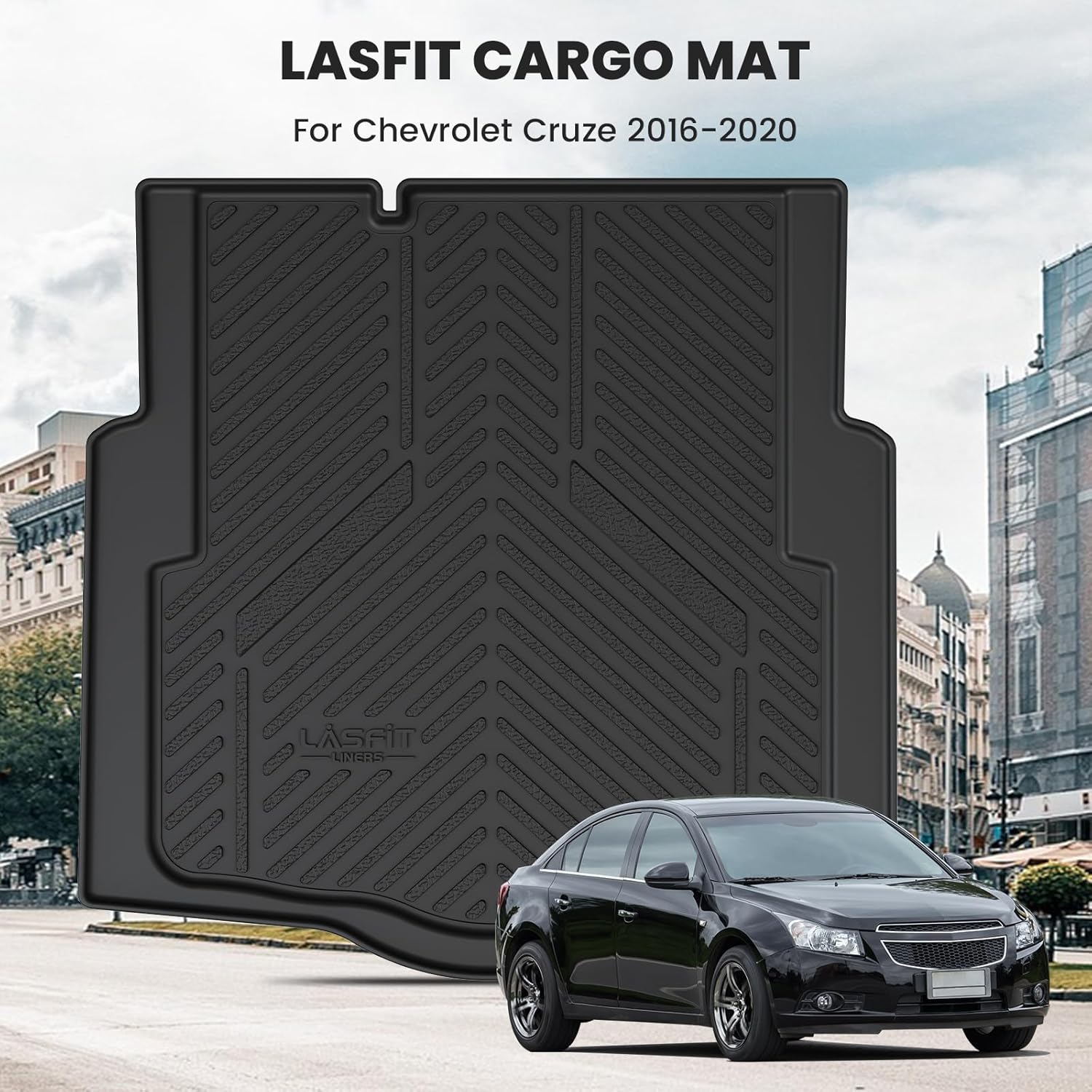 LASFIT Trunk Mat for Chevrolet Chevy Cruze 2016-2020 (Not for 2016 Cruze Limited), Only Fit Cargo with Spare Tire, All Weather TPE Custom Fit Cargo Mat Trunk Liner (Fit Sedan, Not for Hatchback)