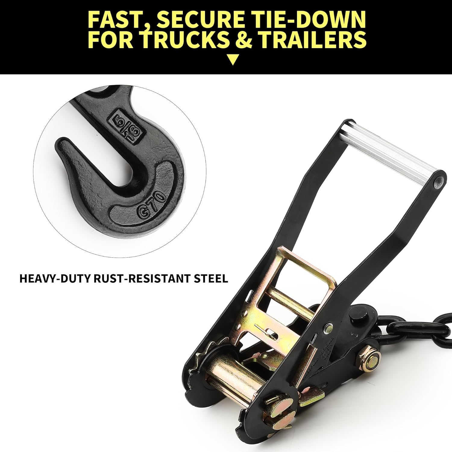 4 Pack Car Tie Down Straps for Trailers - 2" x 96" - 9900LBS Break Strength - Tire Ratchet Straps with Heavy Duty Chain Anchors for Hauling UTV, SUV, Truck, Any Cars