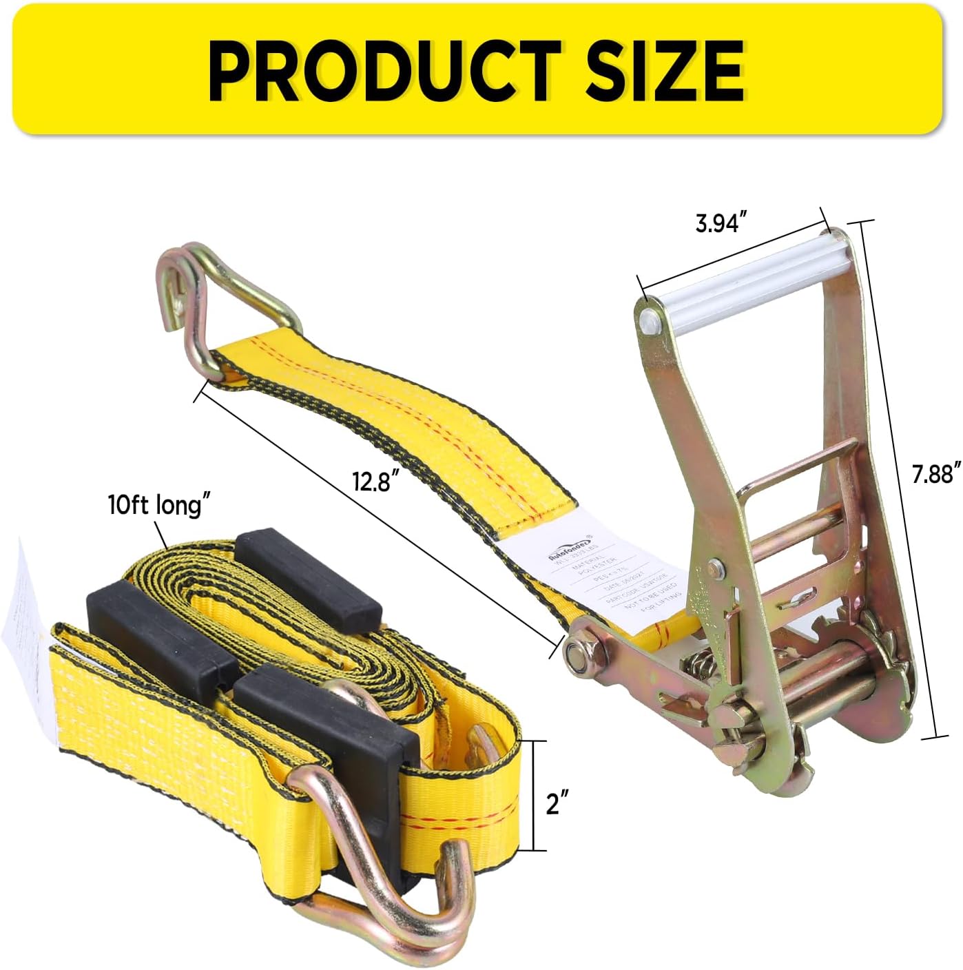 2" x 12' Heavy Duty Car Hauler Straps,4-Pack, Ratchet Tie Down Straps with Swivel J-Hooks & 3 Rubber Blocks,Over The Tire Wheel Straps for Vehicle Transport – Secures Cars, Trucks, Trailers