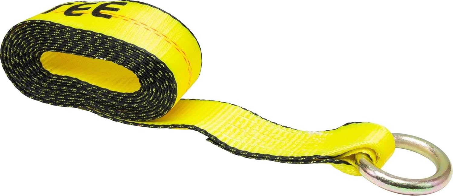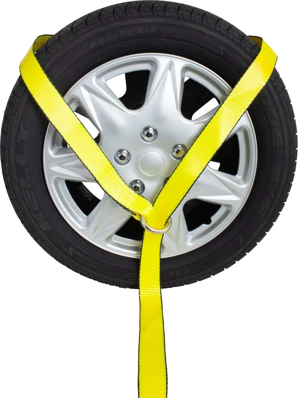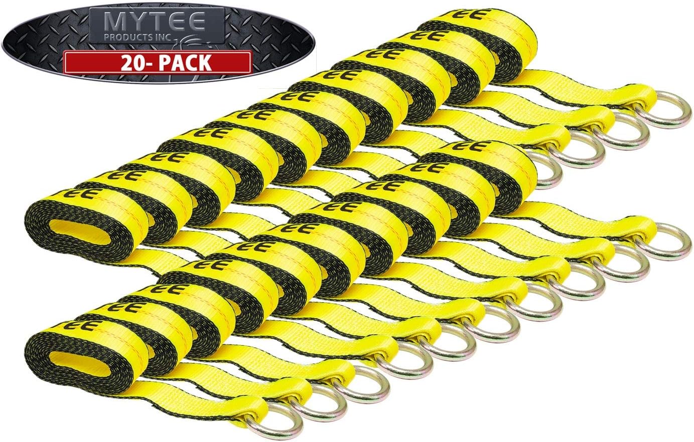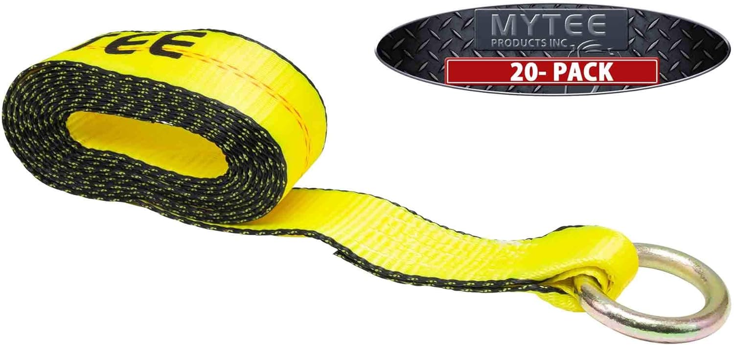 Mytee Products (20 Pack 2" x12' Winch Lasso Strap with O Ring, Yellow - Car Tie Down Tire Straps for Trailers Auto Tow Car Hauler Wheel Net