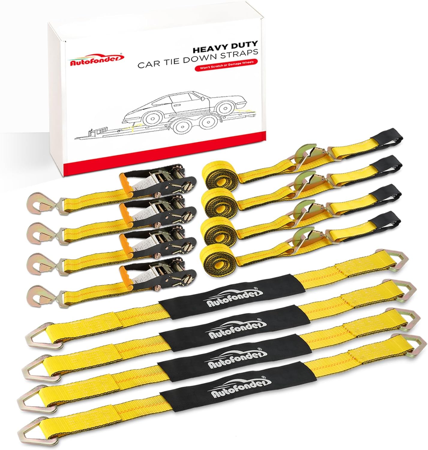 Car Tie Down Straps for Trailers 4 Pack - 2" x 120" Heavy Duty Trailer Straps, 10,000 lb Break Strength, Over The Wheel Tire Straps for Car Hauler, Truck, UTV, and Utility Trailers