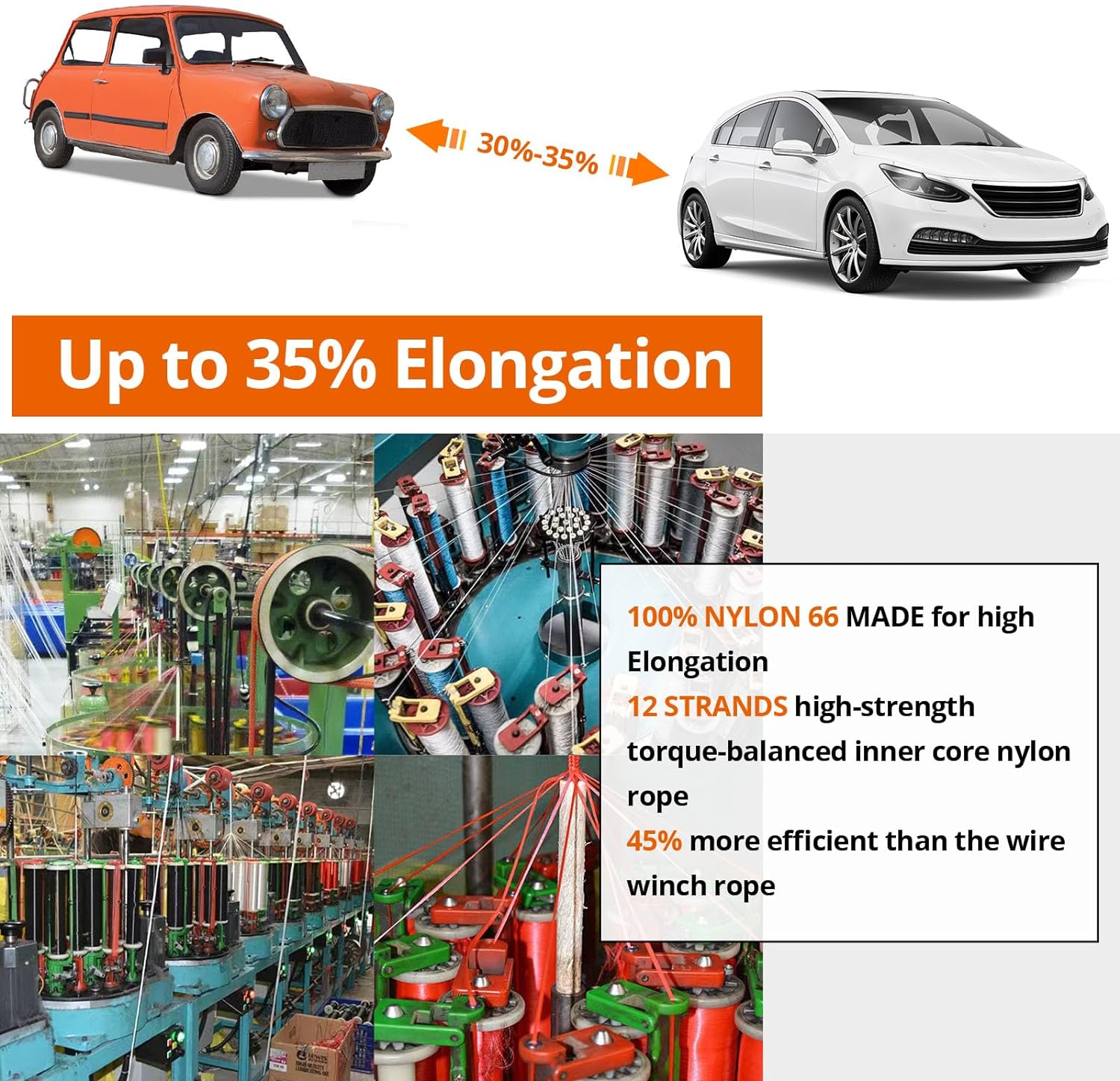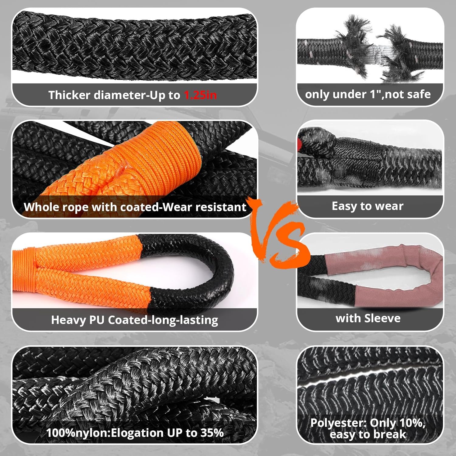 Kinetic Recovery Tow Rope: 1.26" x 30ft 55000LBS Snatch Strap with Soft Shackles Heavy Duty Offroad Towing Straps Kit for Trucks SUV UTV ATV Tractor Car Jeep - Black