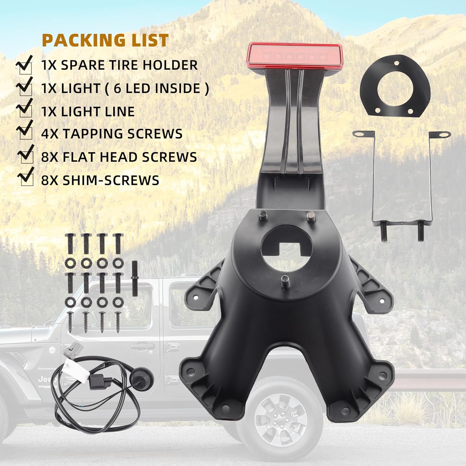 GNG Adjustable Spare Tire Lift Compatible for 2018-2025 Jeep Wrangler JL Heavy Duty Spare Tire Carrier up to 43 inches Spare Wheel Holder Rack Mount Relocation〔Black〕