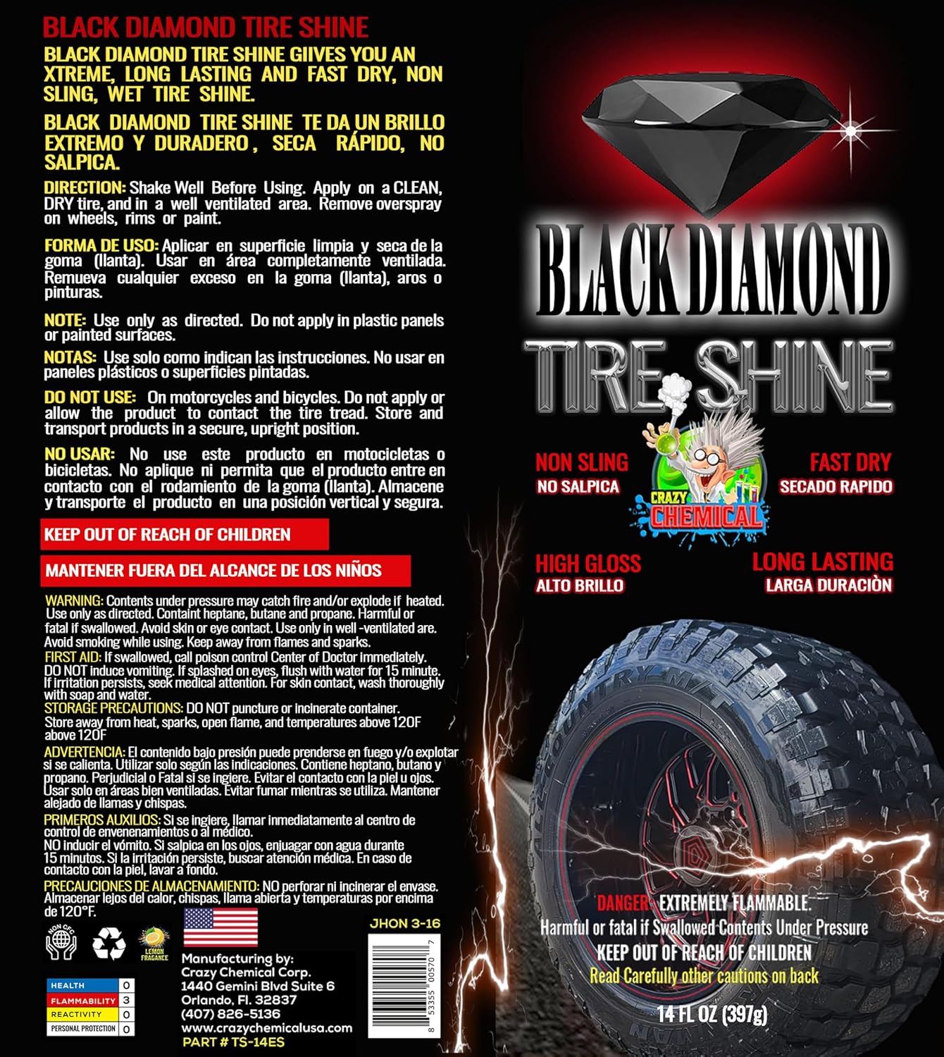 Black Diamond Tire Shine Spray - Extreme Gloss, Long Lasting, No Sling, Wet Look - 14 oz (Pack of 12)