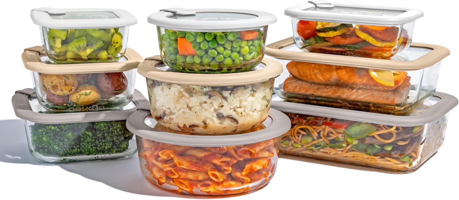 GLASSLOCK Sens 24Pcs Glass Food Storage Set – Airtight & Leakproof, 8 Different Sizes, Anti Slip Lid, Microwave & Oven Safe, Meal prep, Lunch Box, Nestable & Stackable, Pantry Storage