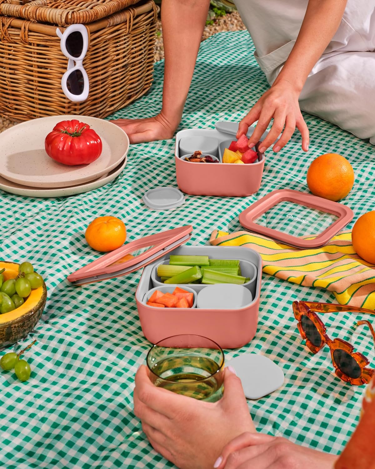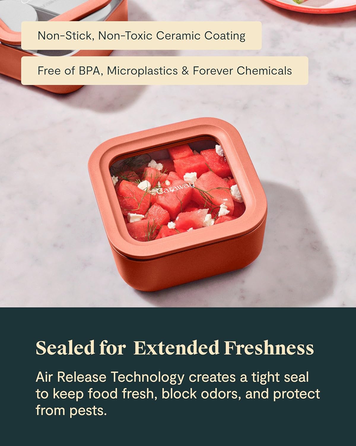 Caraway 2pc Glass Food Storage Set - 4.4 Cup Food Containers (2) - Ceramic Coated - Non Toxic, Non Stick Lunch with Lids - Dishwasher, Oven, & Microwave Safe - Gray
