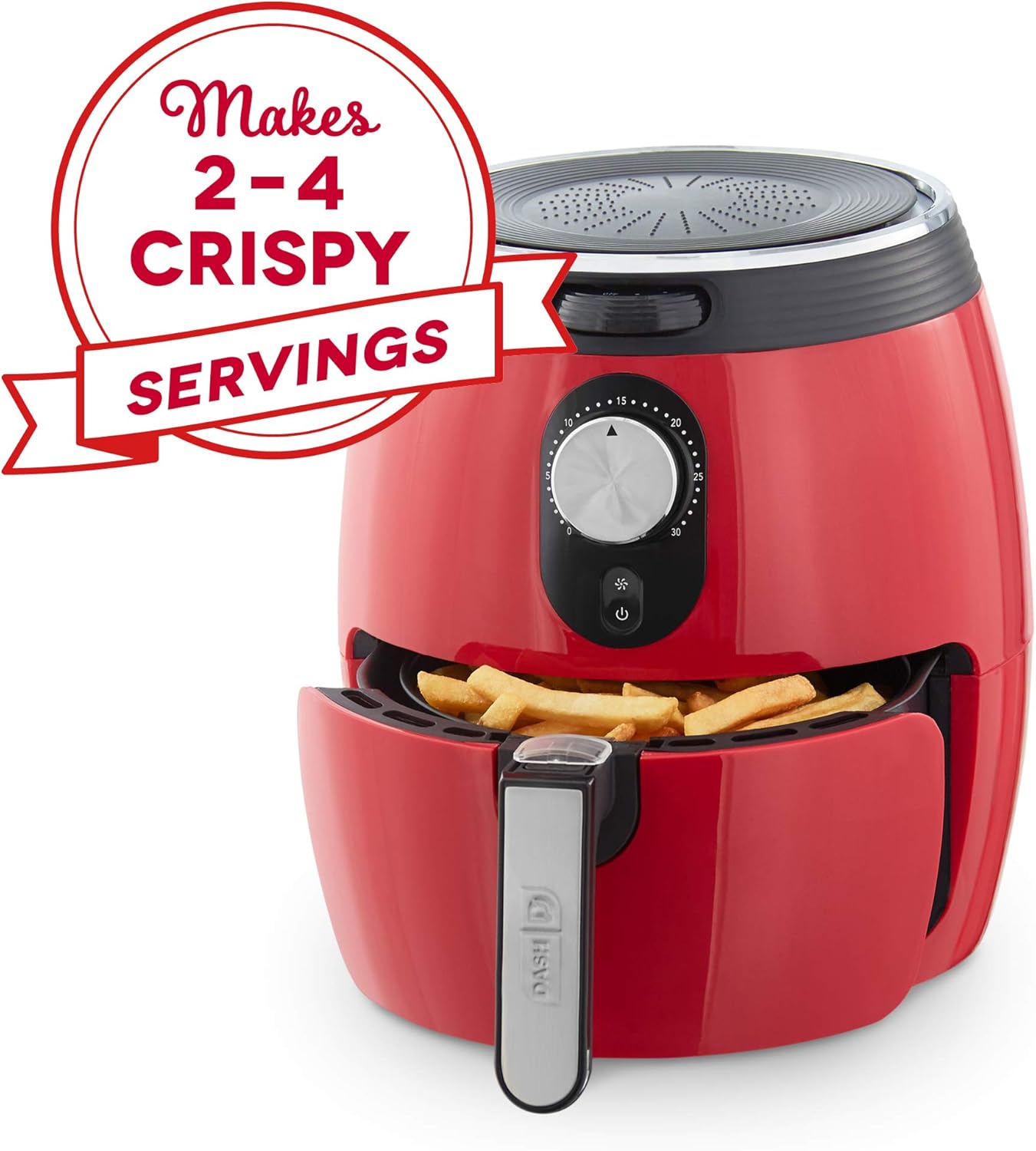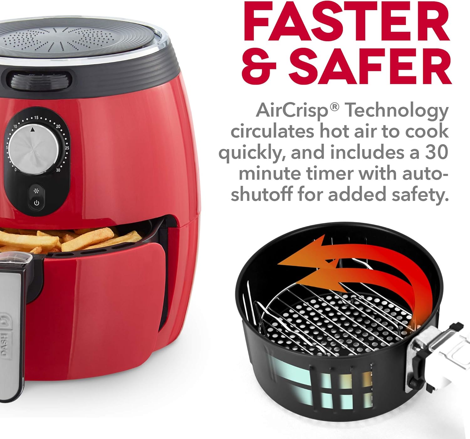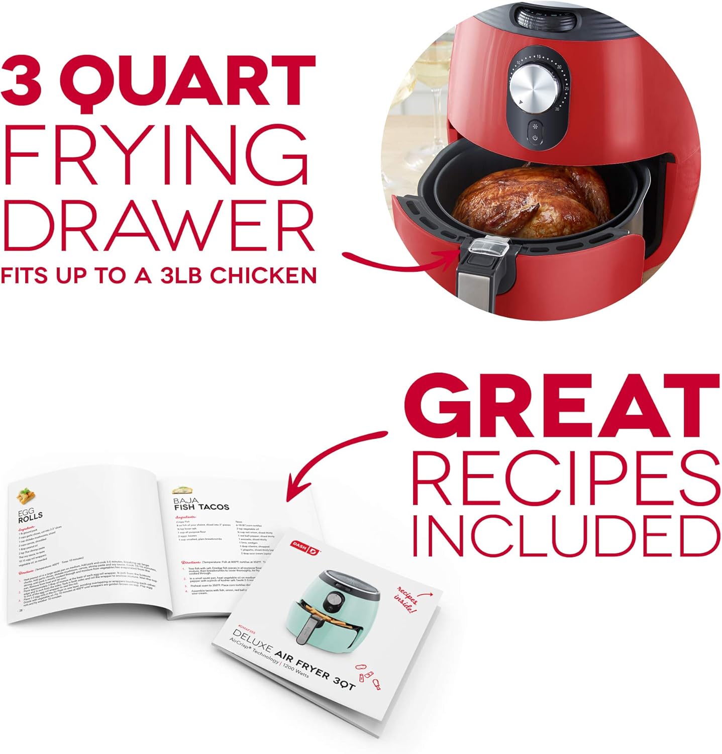 Dash Deluxe Electric Air Fryer + Oven Cooker with Temperature Control, Non-stick Fry Basket, Recipe Guide + Auto Shut off Feature, 1200-Watt, 3 Quart - Red
